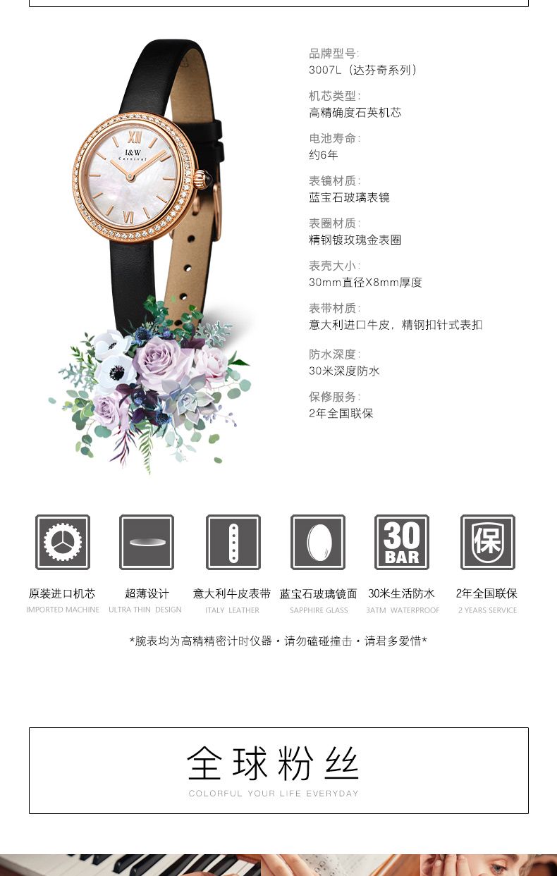 商品名称:IW手表女款石英表简约时尚ins小众设计女表轻奢防水气质品牌新款3007