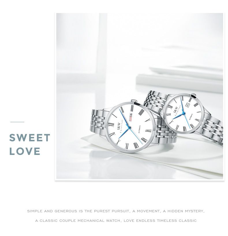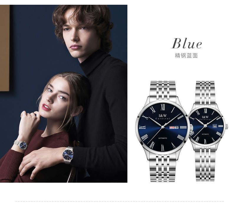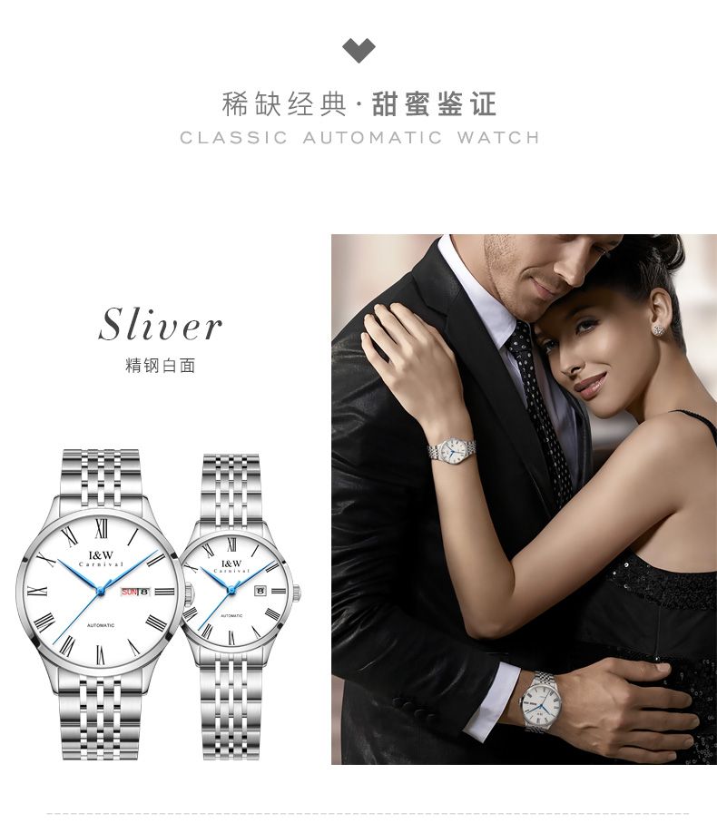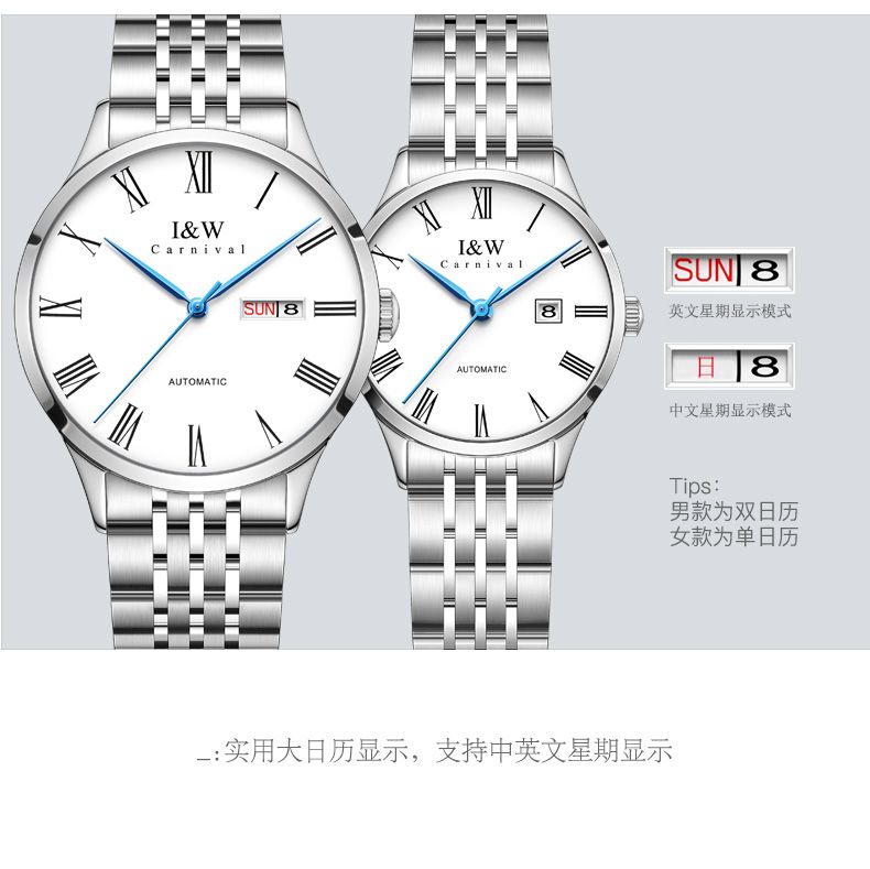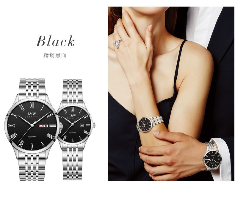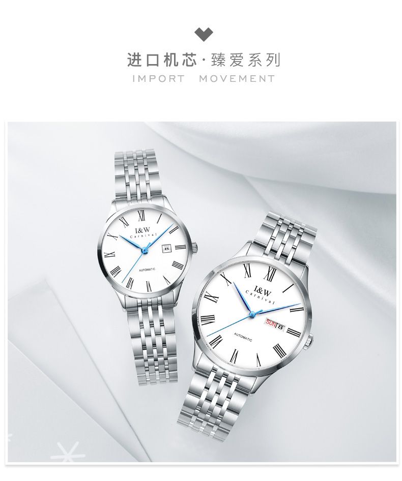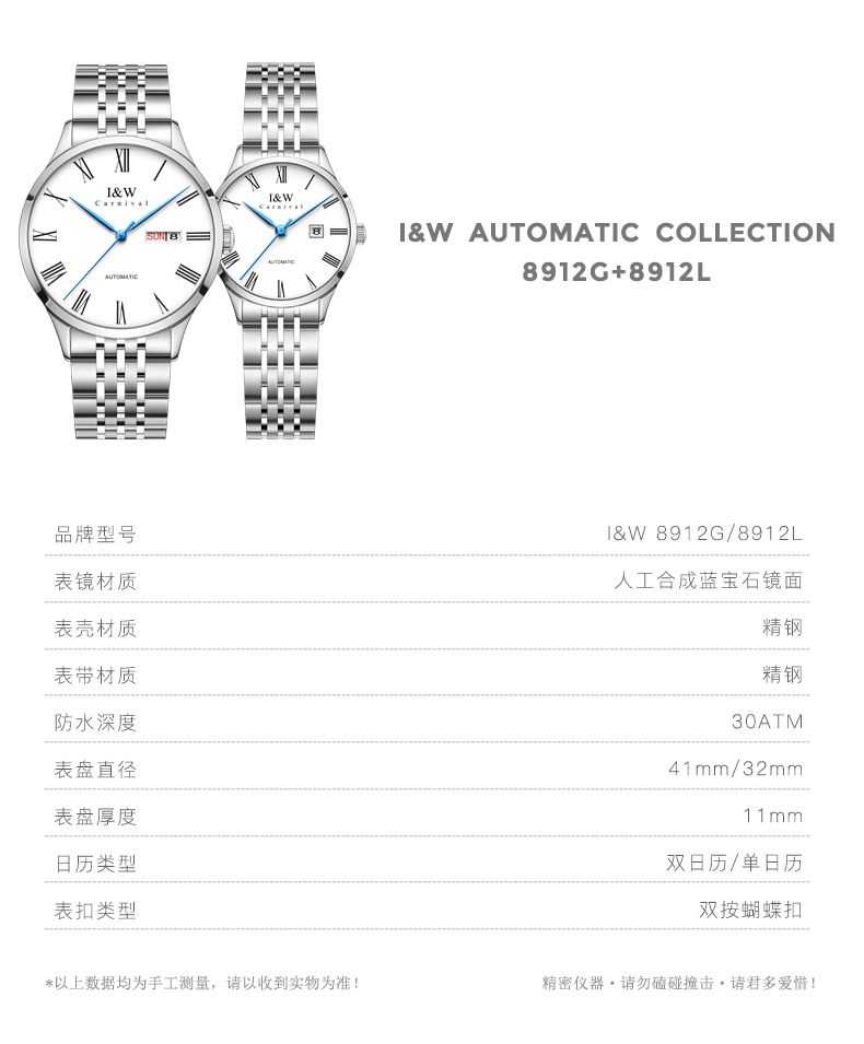 商品名称:IW情侣手表 全自动机械时尚腕表 经典简约镂空防水钢表带钟表 情人节礼物情侣对表 机械机芯8912情侣对表