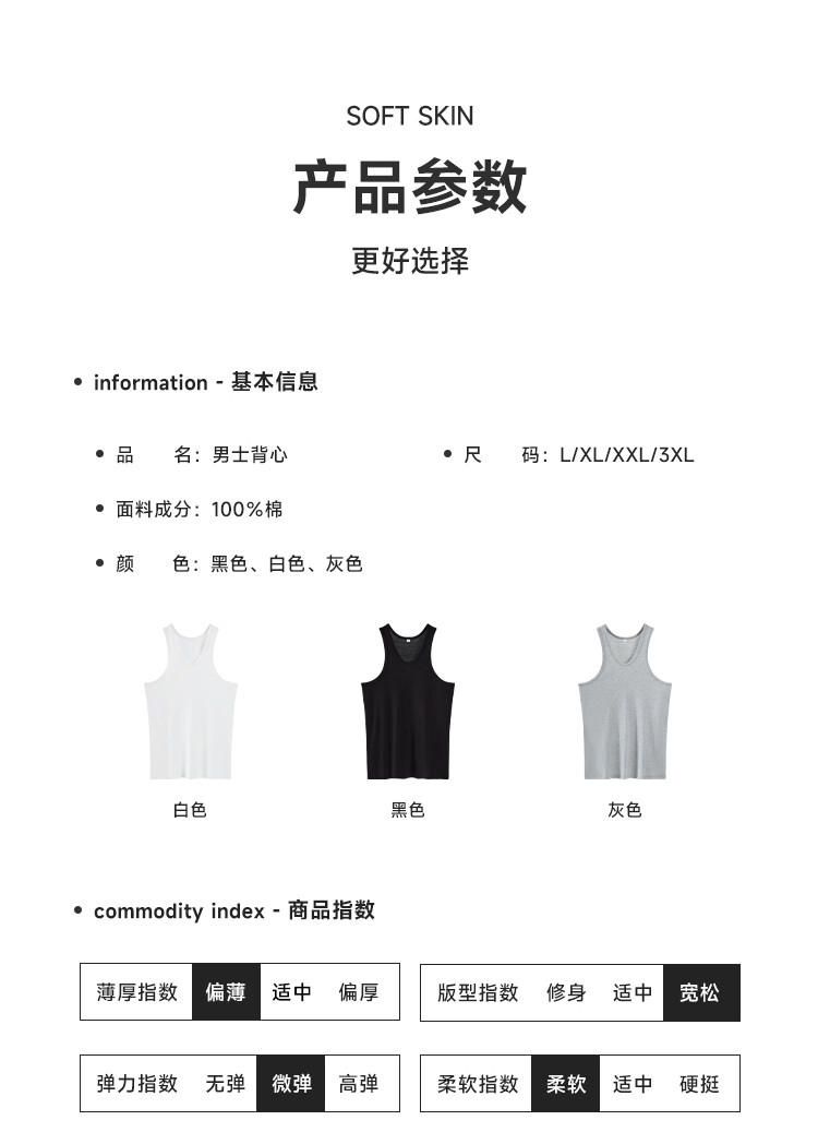 商品名称:【100%纯棉】男士休闲背心居家高弹百搭透气打底外穿休闲内搭 572107