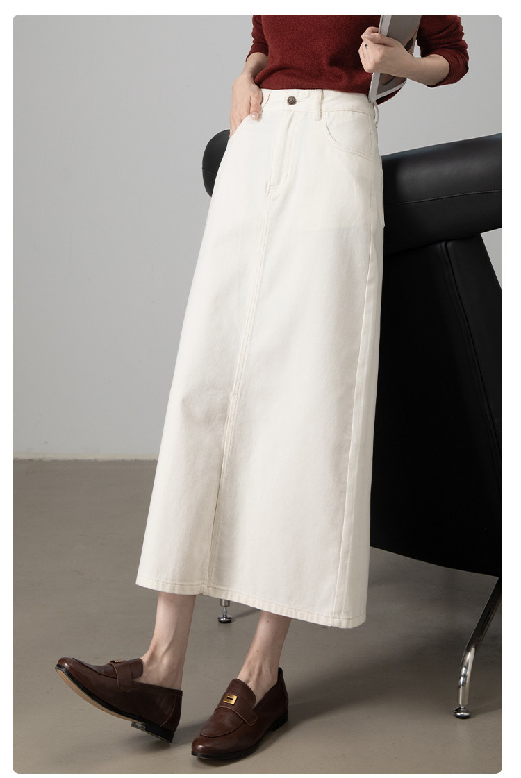 商品名称:【白月光半裙】春夏季热销款前开叉高腰显瘦A字型牛仔半身裙 726593