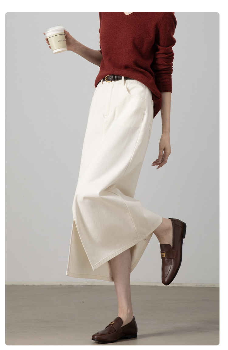 【白月光半裙】春夏季热销款前开叉高腰显瘦A字型牛仔半身裙 726593