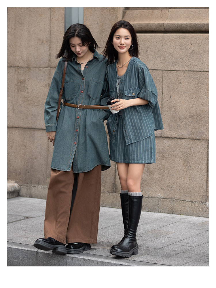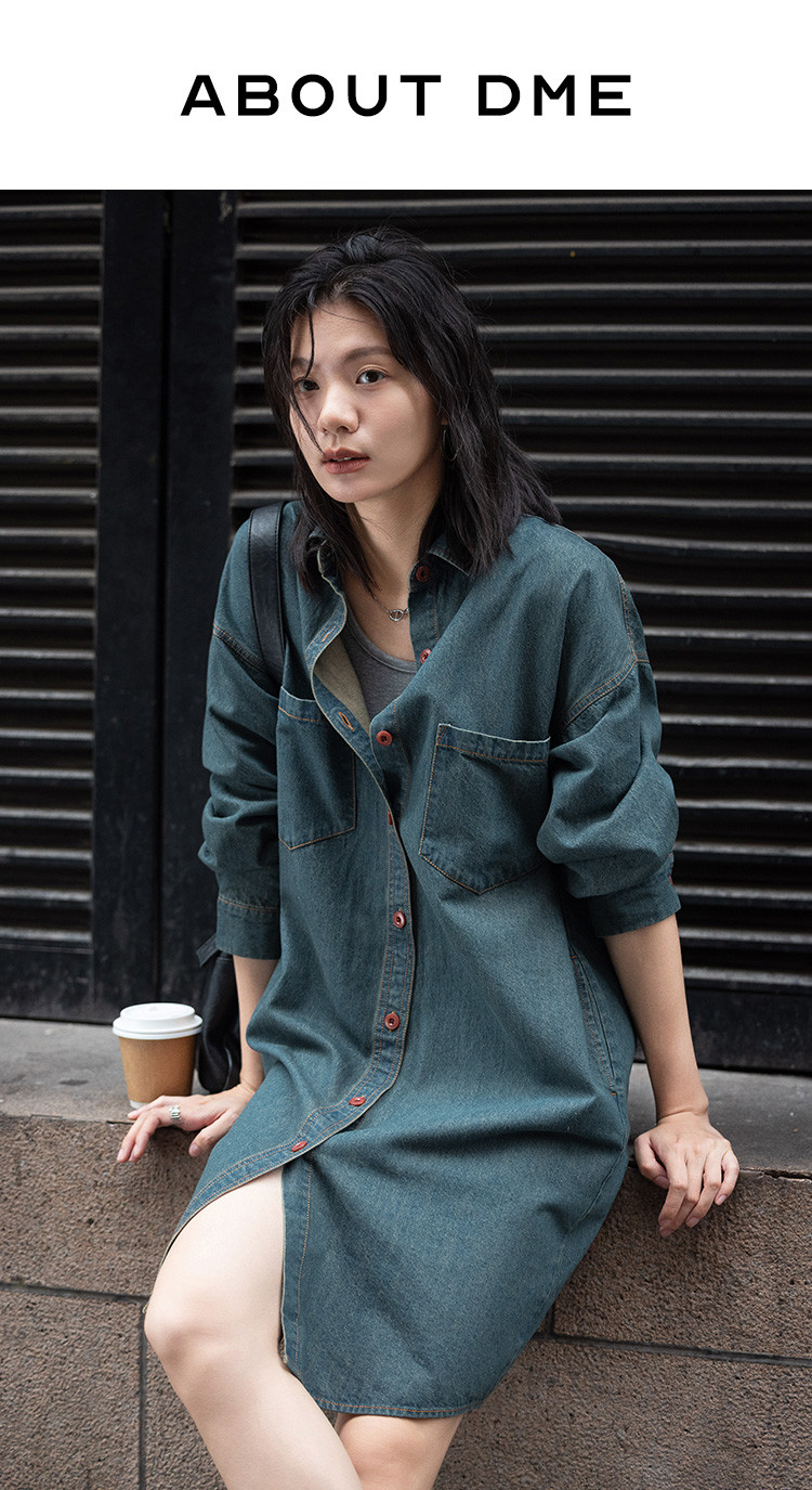 【松弛感牛仔裙】秋时髦街头主义简约宽松牛仔连衣裙 636674