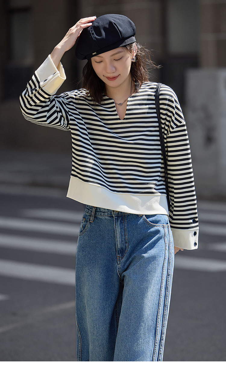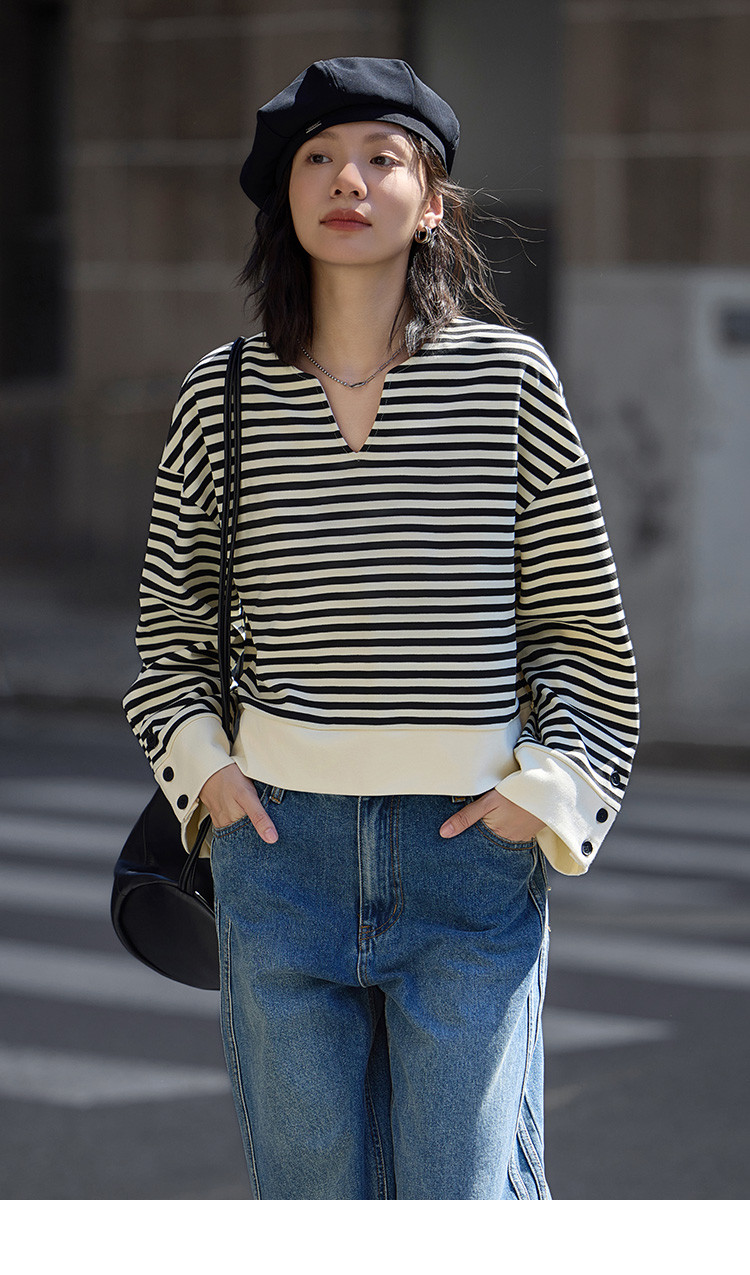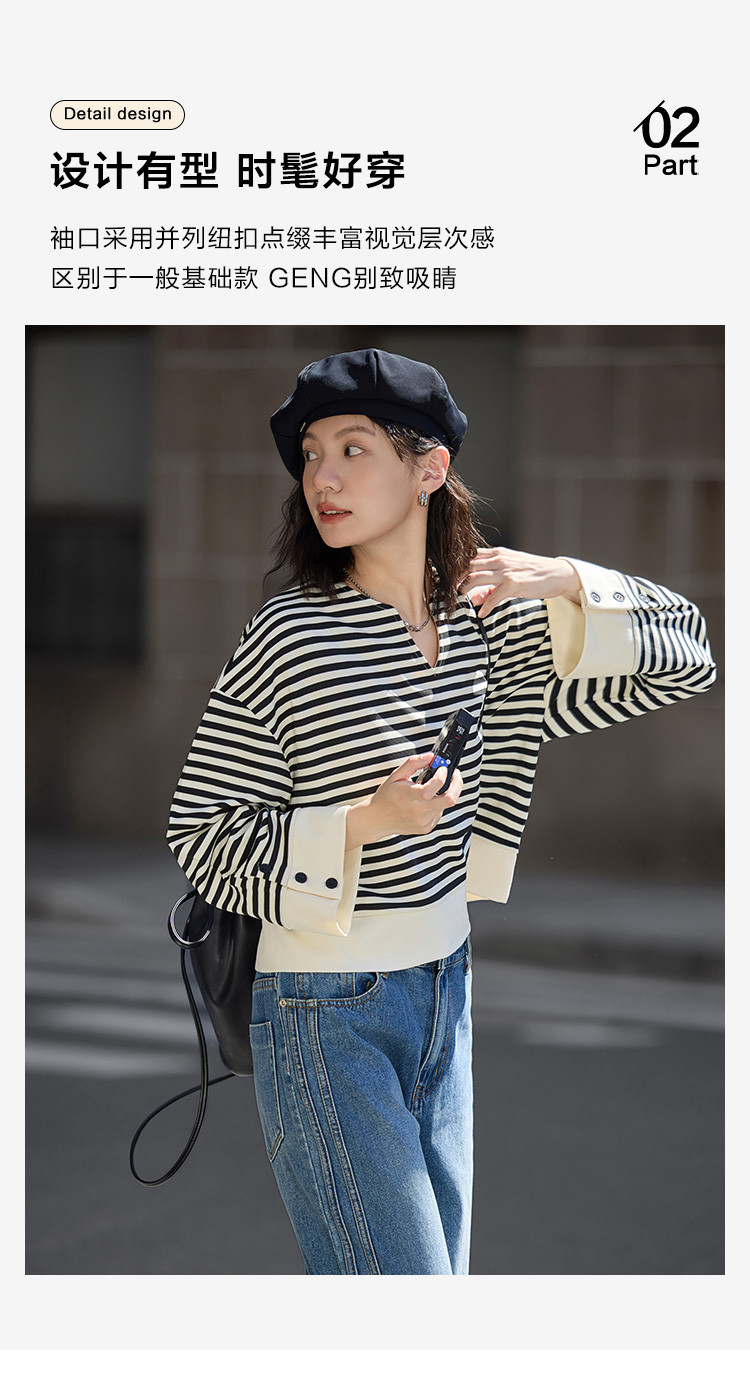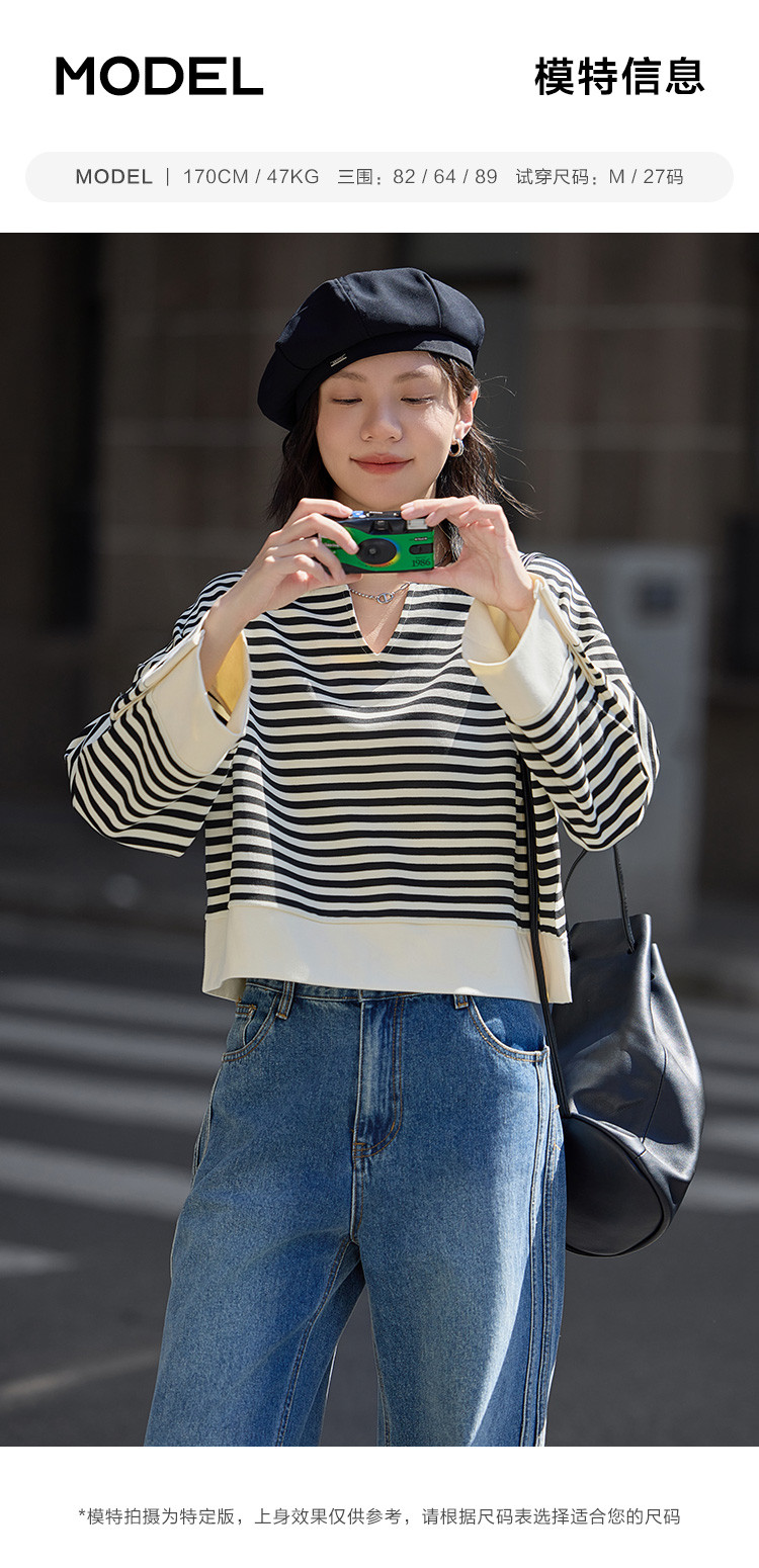 【经典黑白撞色卫衣】秋简约设计感领口小V开衩洋气耐看 398850