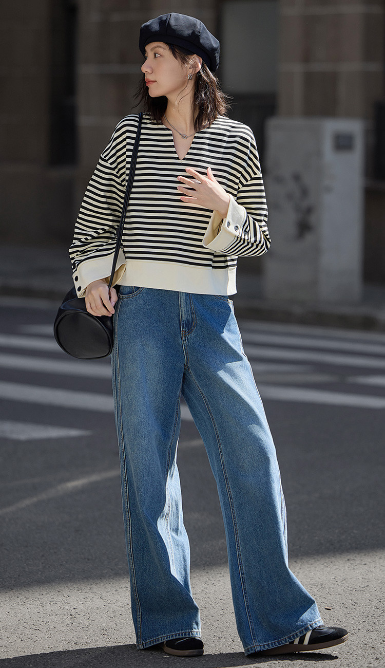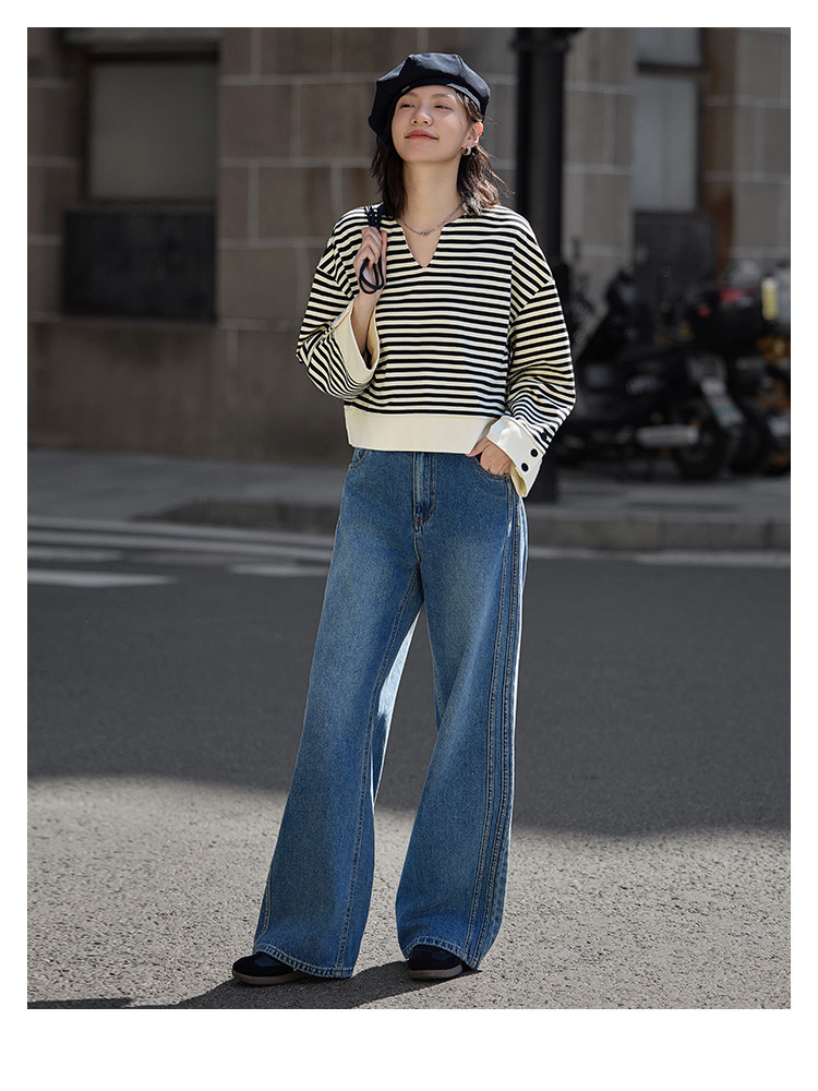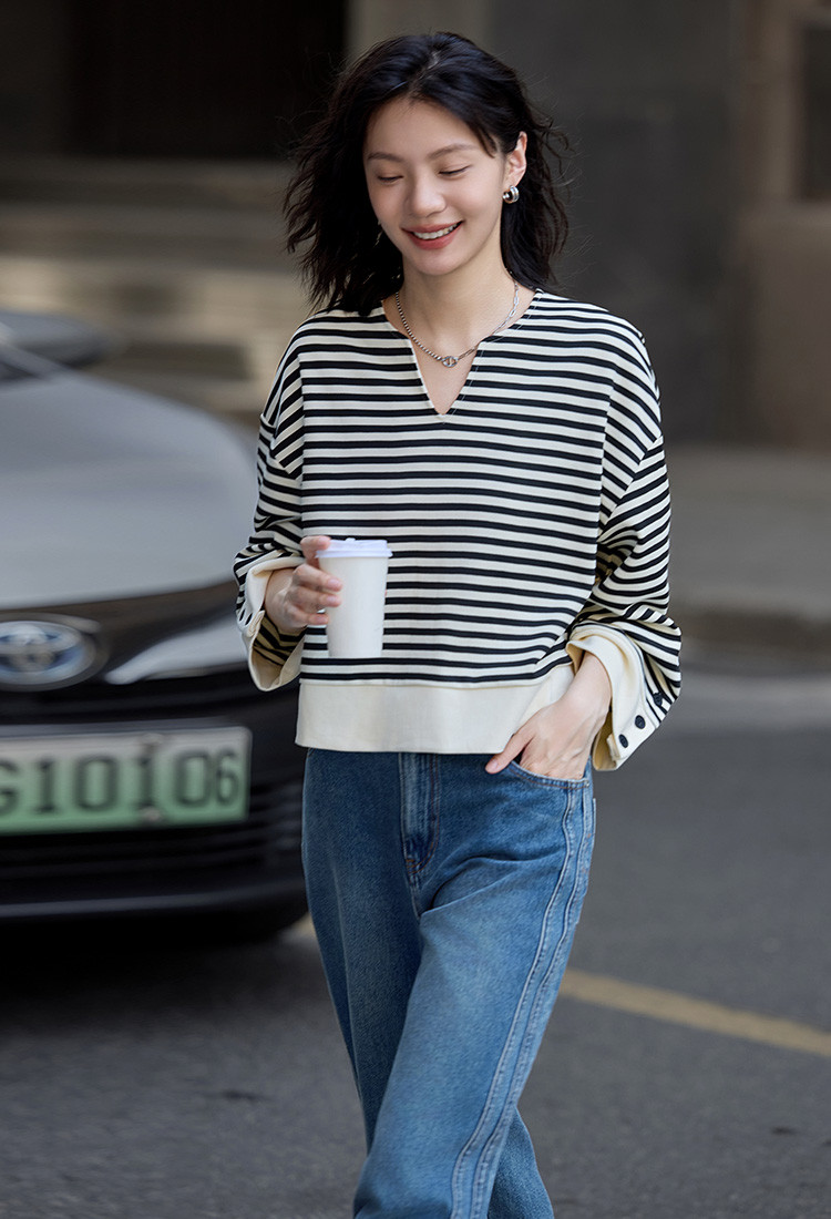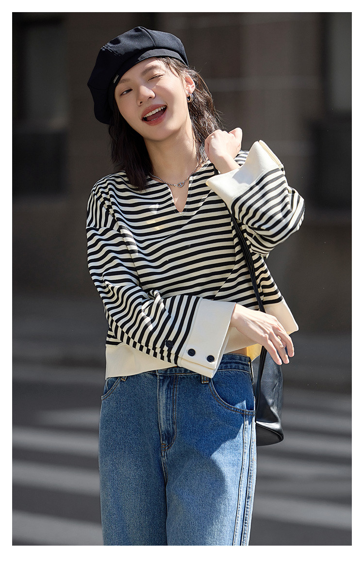【经典黑白撞色卫衣】秋简约设计感领口小V开衩洋气耐看 398850