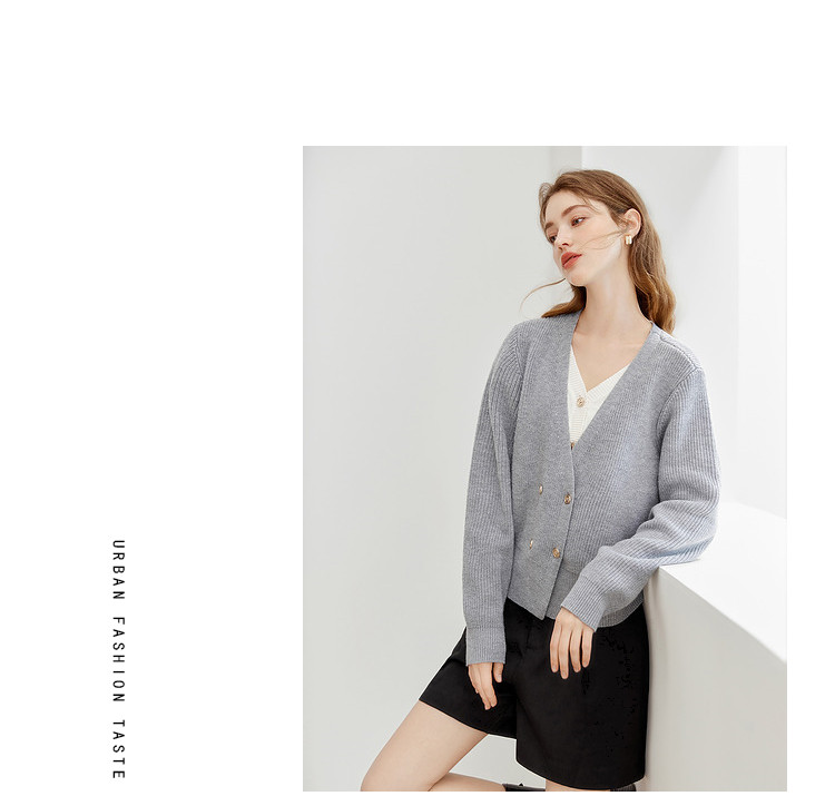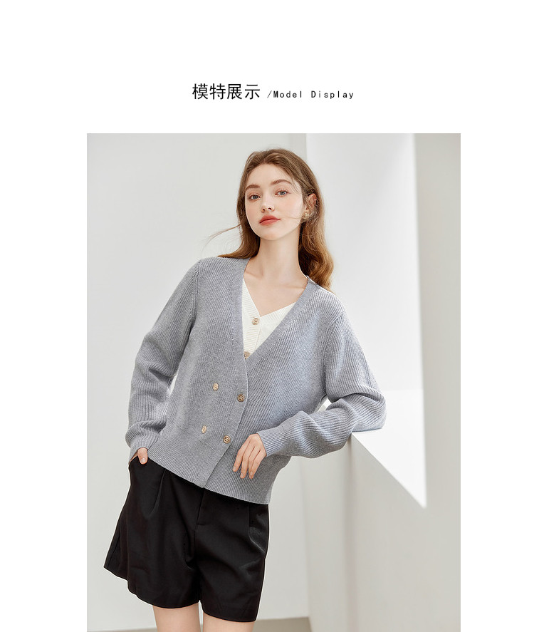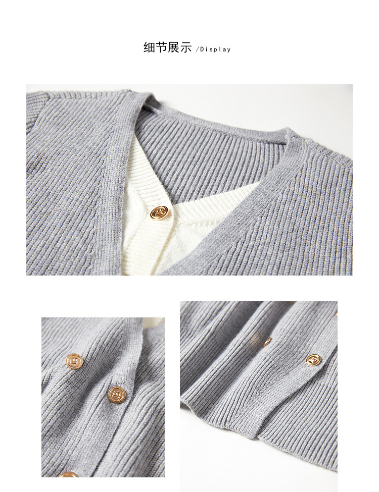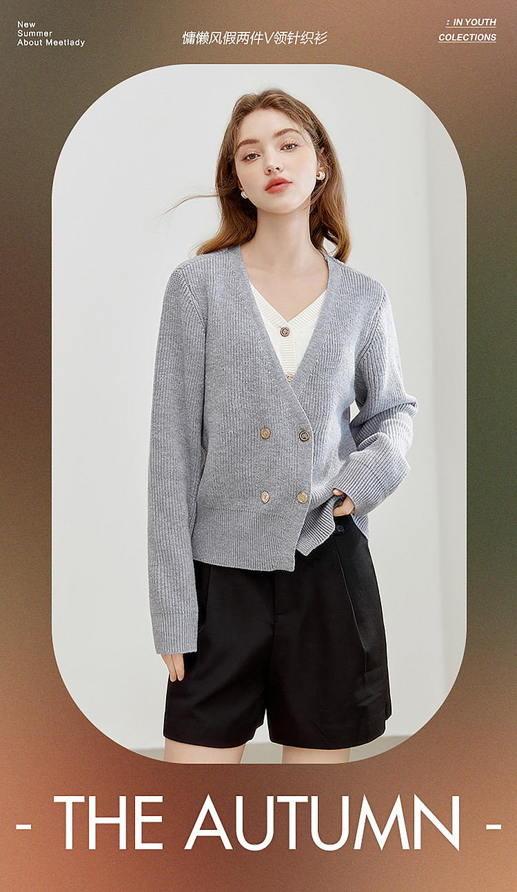 商品名称:【2024秋季】简约假两件撞色套头针织衫女慵懒风V领毛衣上衣 091604