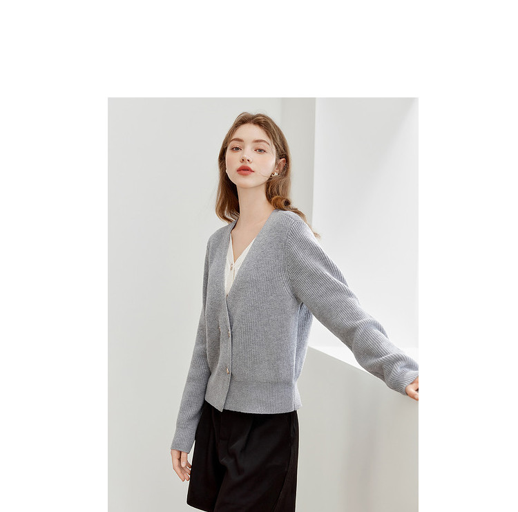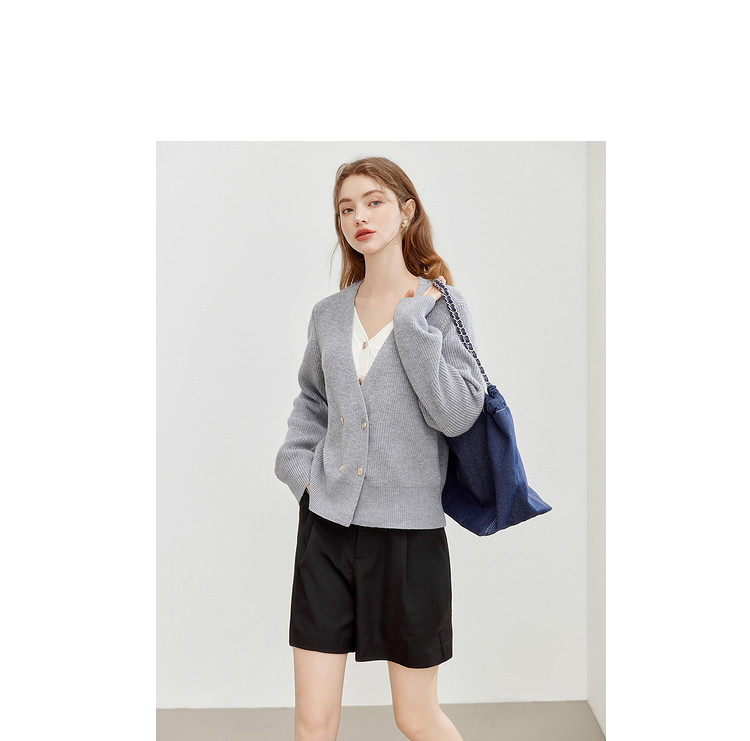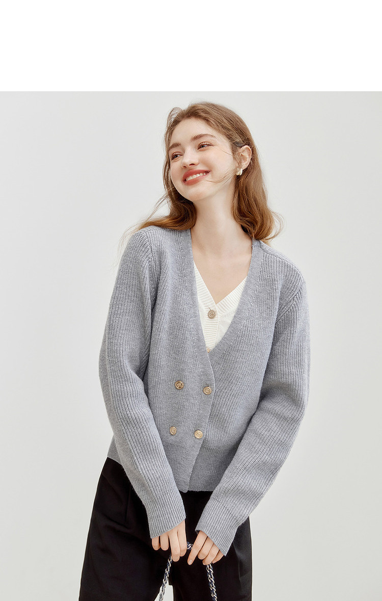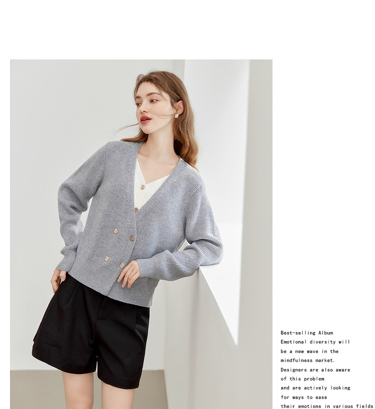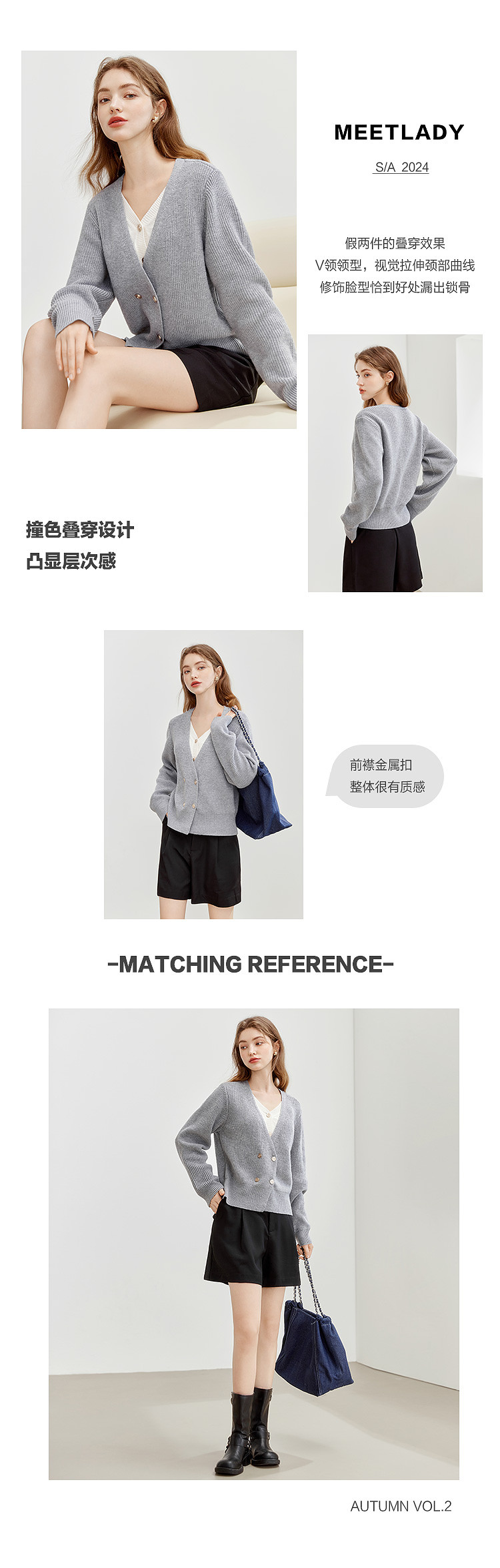 商品名称:【2024秋季】简约假两件撞色套头针织衫女慵懒风V领毛衣上衣 091604