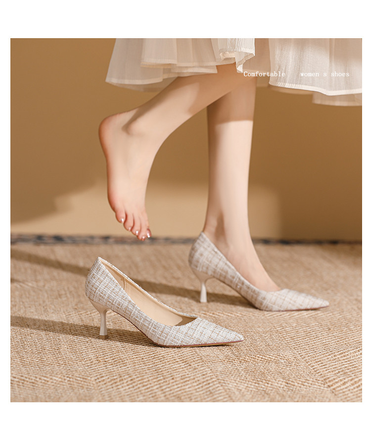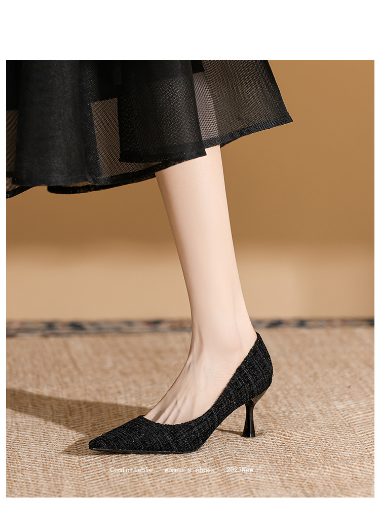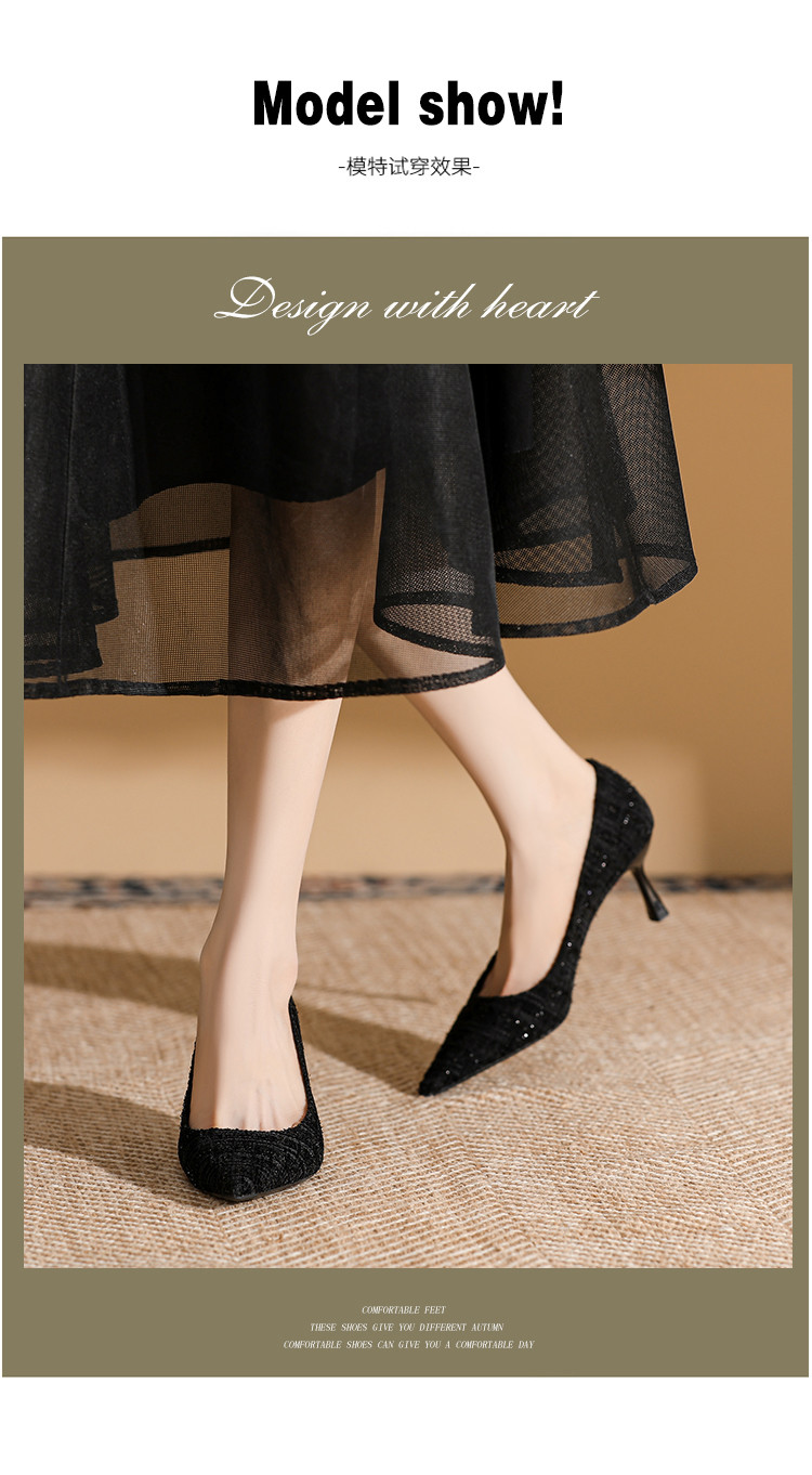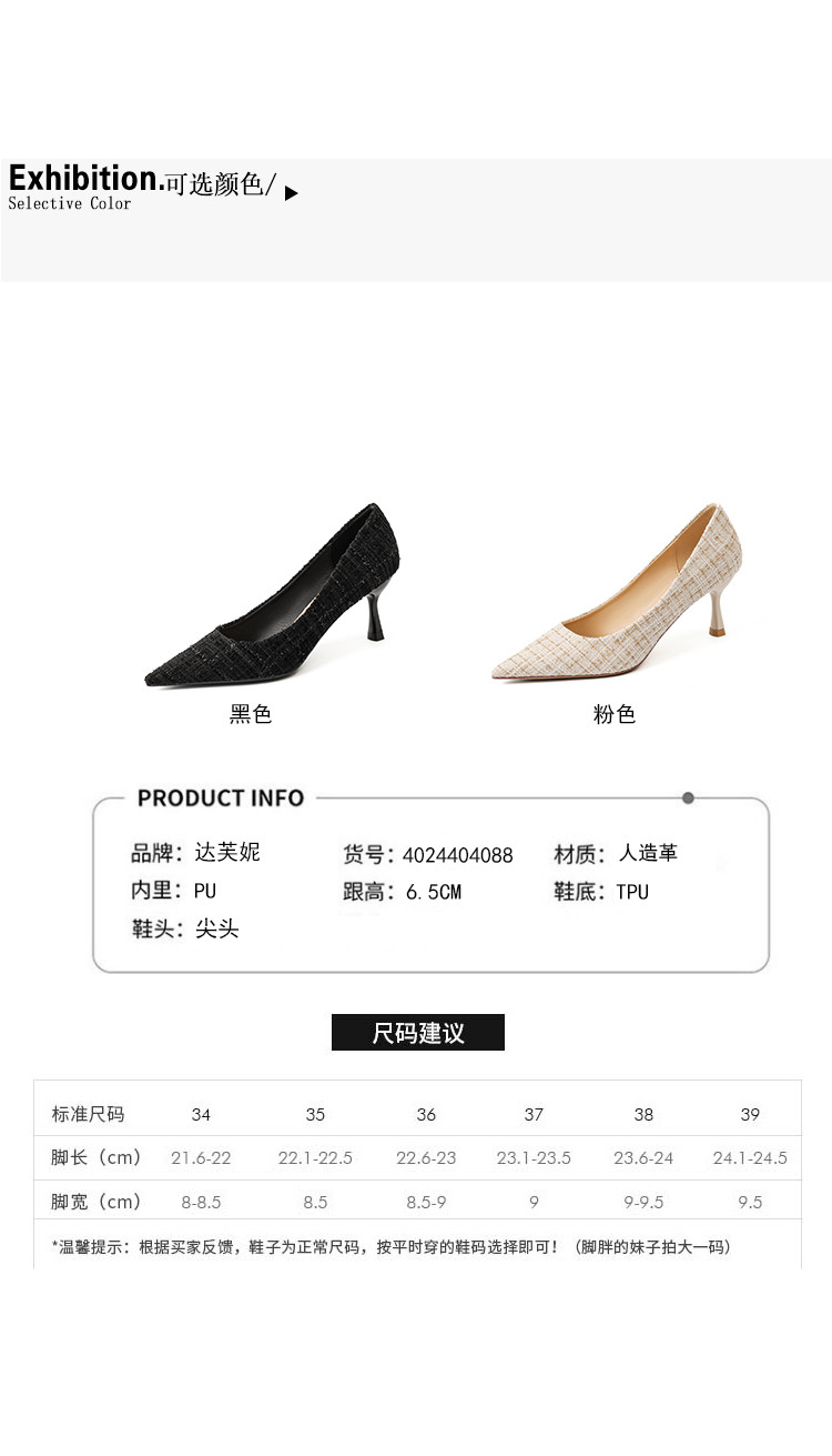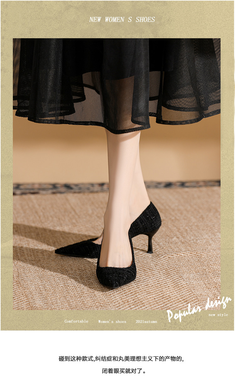 商品名称:春夏尖头细跟高跟鞋女气质时装鞋简约大气一脚蹬通勤鞋时尚女单鞋 585495