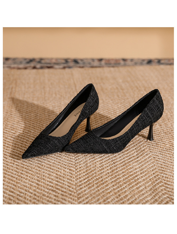 春夏尖头细跟高跟鞋女气质时装鞋简约大气一脚蹬通勤鞋时尚女单鞋 585495