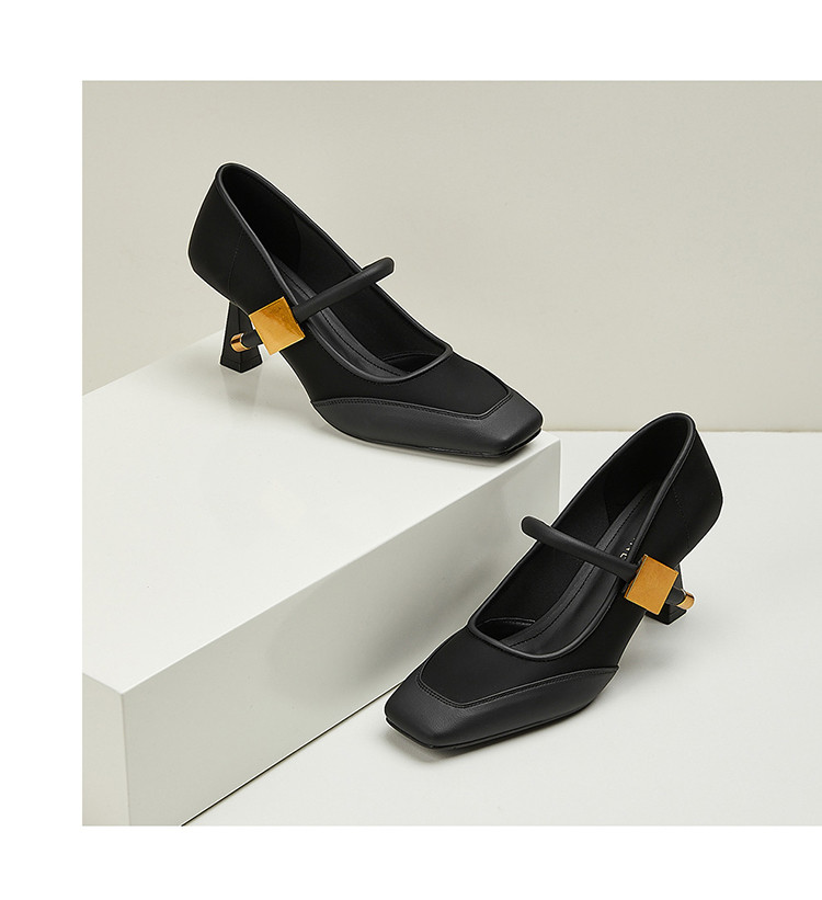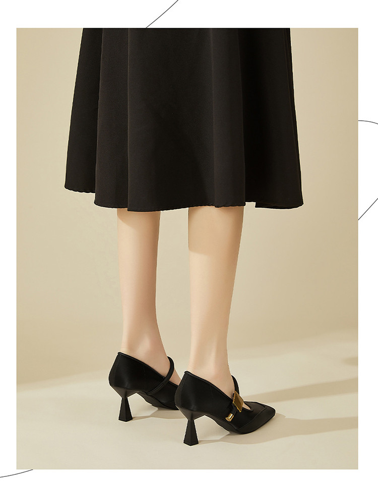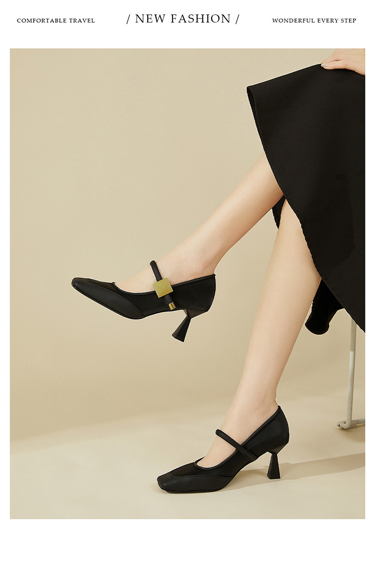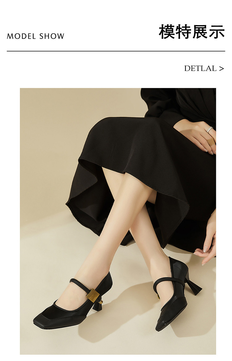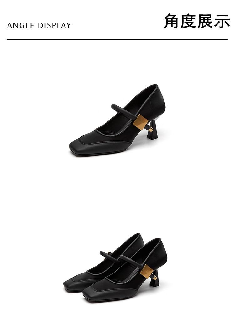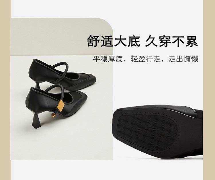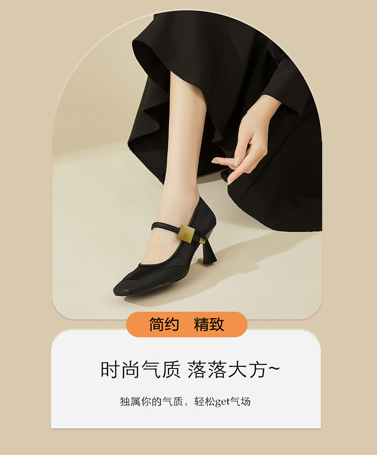 商品名称:【法式气质】25透气玛丽珍鞋女金属扣一字带方头细跟浅口高跟鞋 989399