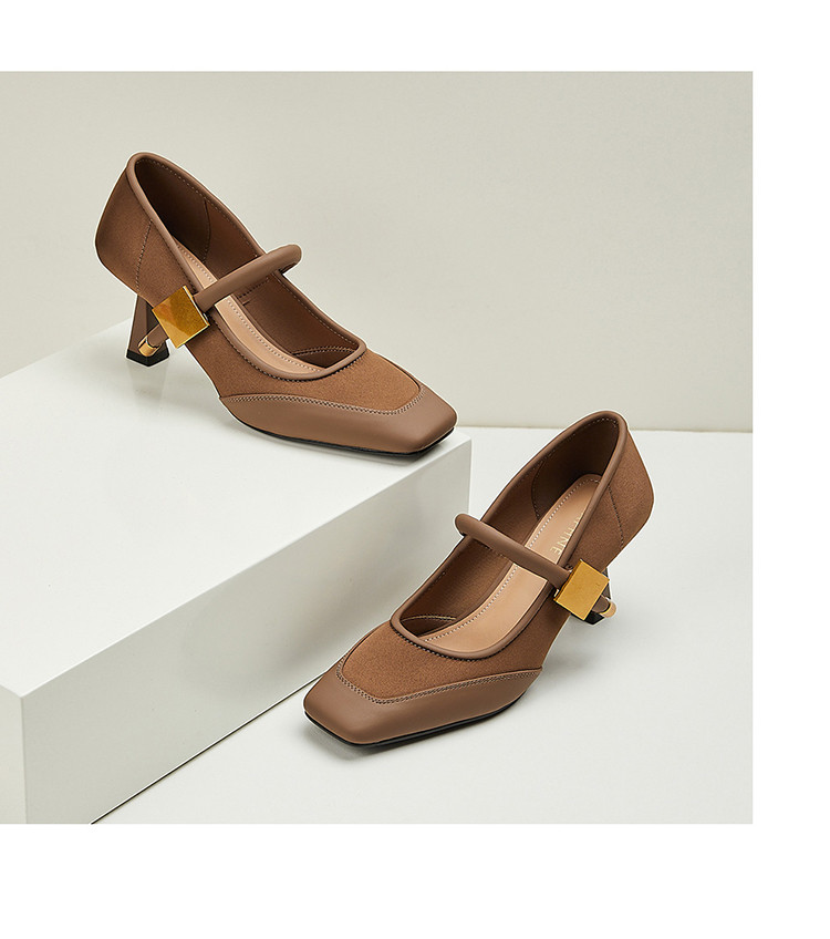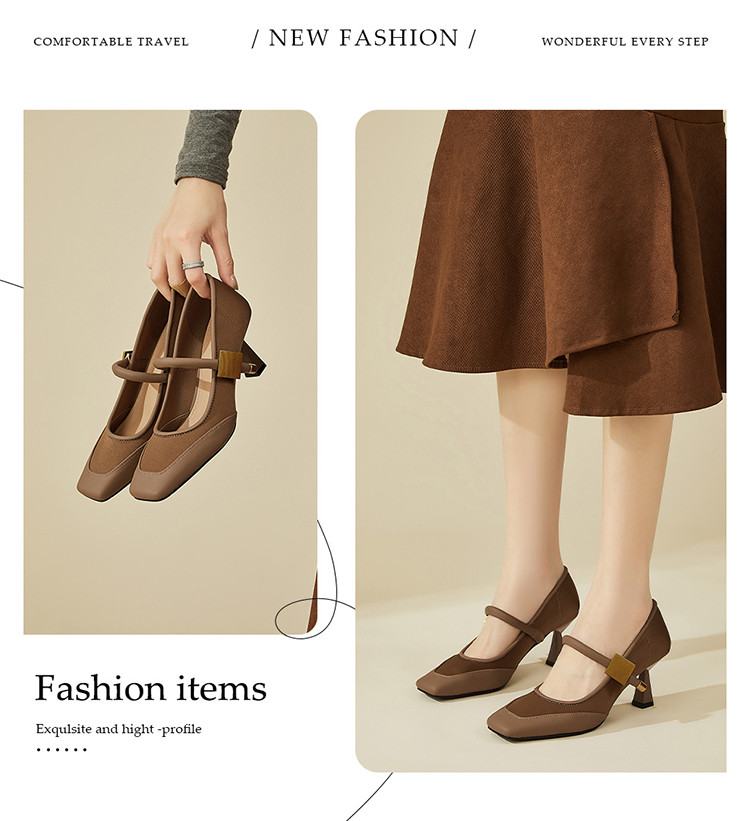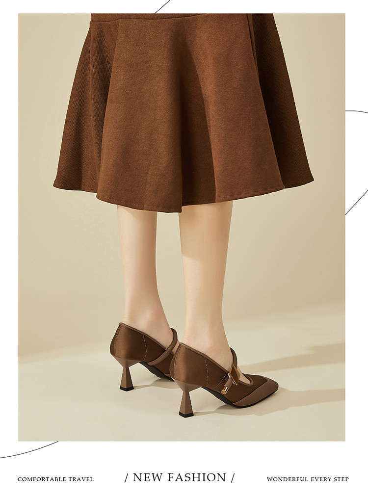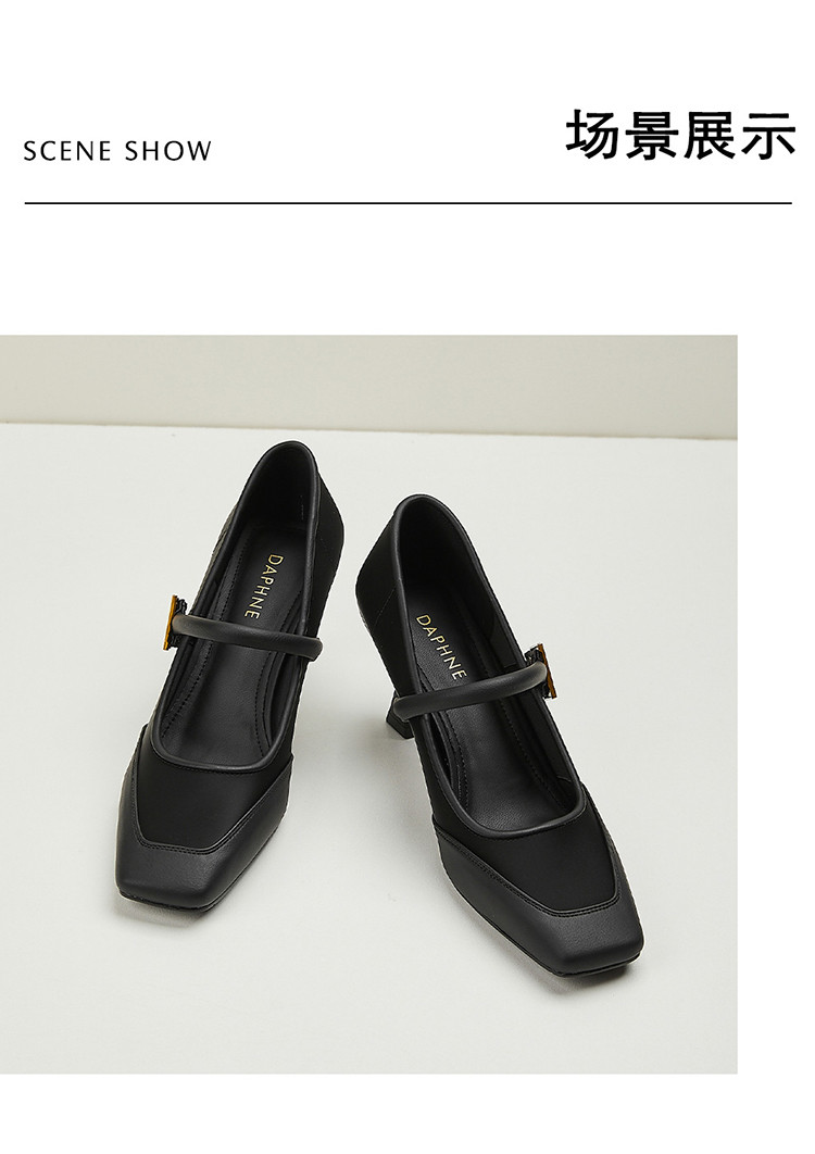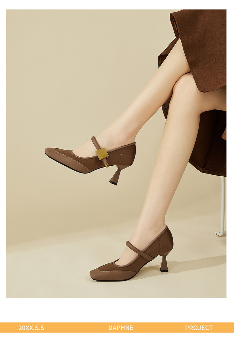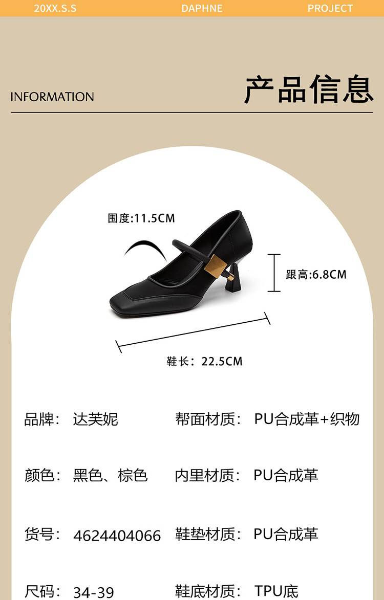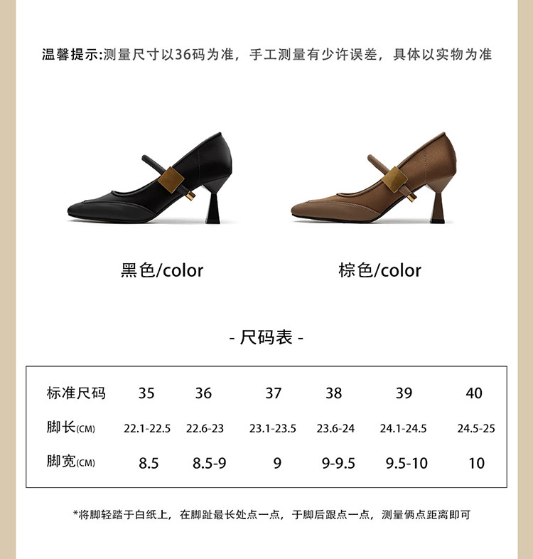 商品名称:【法式气质】25透气玛丽珍鞋女金属扣一字带方头细跟浅口高跟鞋 989399