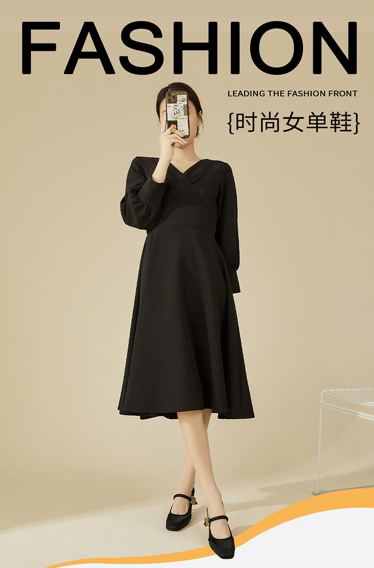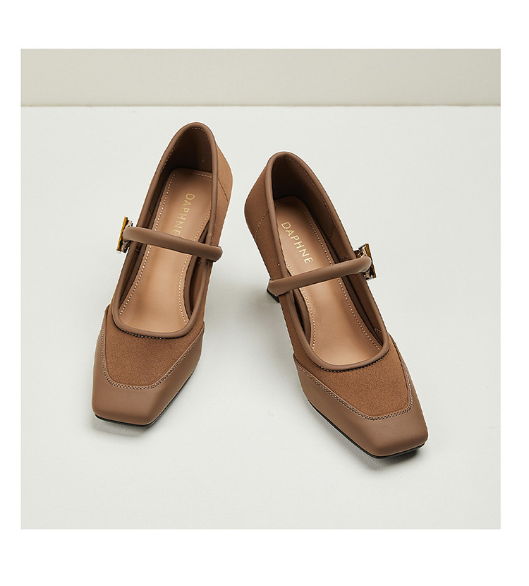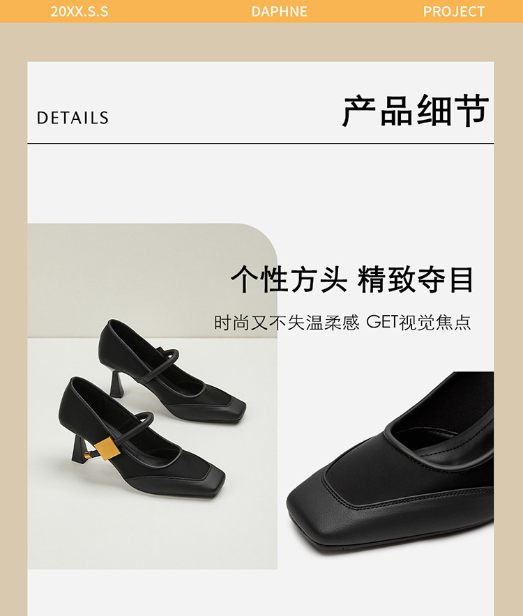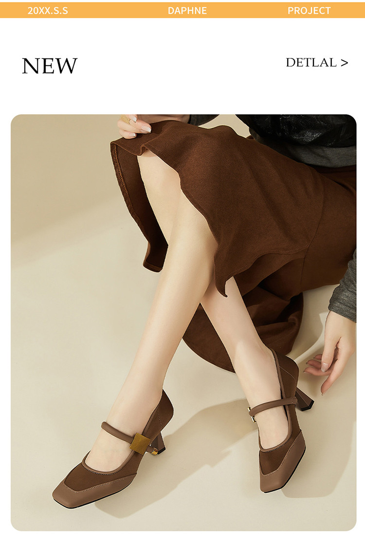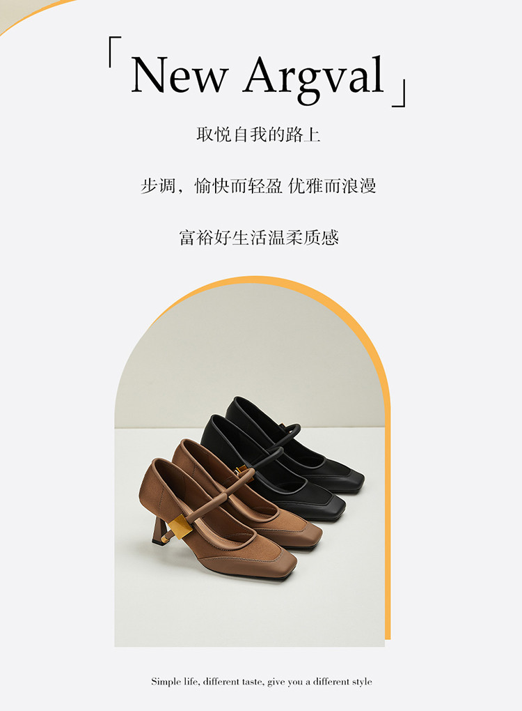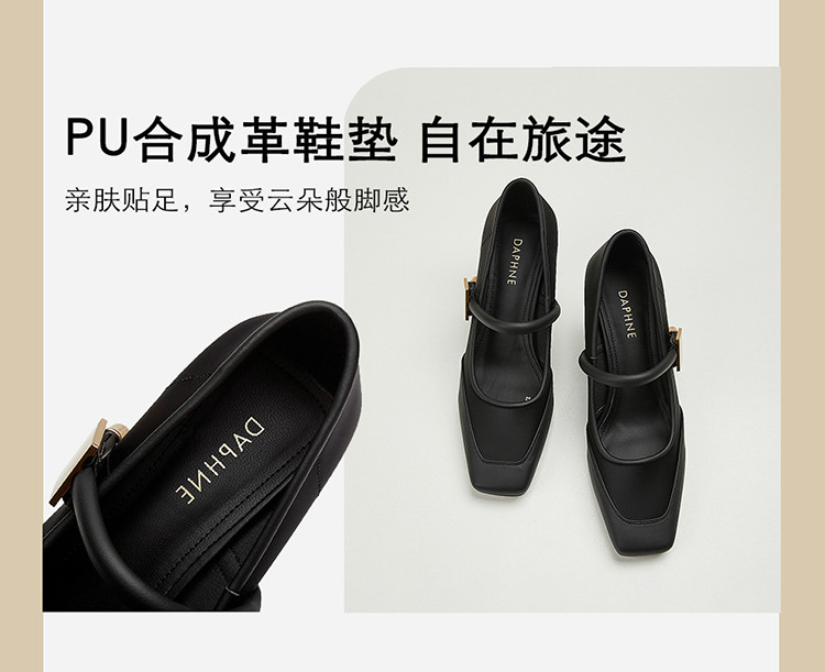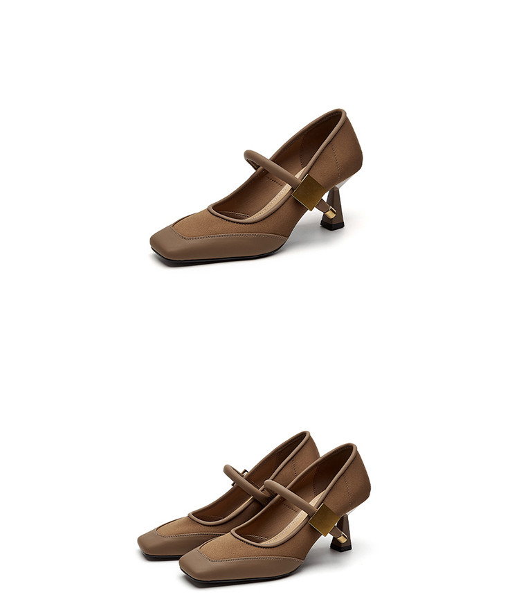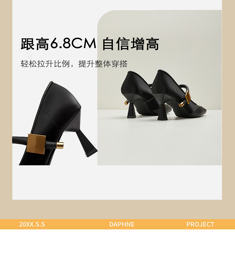商品名称:【法式气质】25透气玛丽珍鞋女金属扣一字带方头细跟浅口高跟鞋 989399
