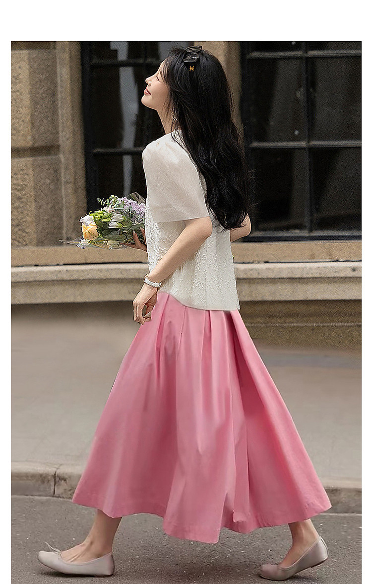 【高能量穿搭】夏多巴胺甜美设计感褶裥优雅A字大摆女式半身裙 086593