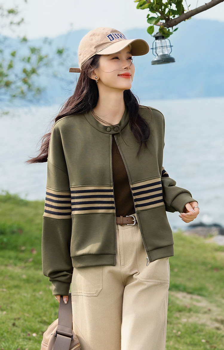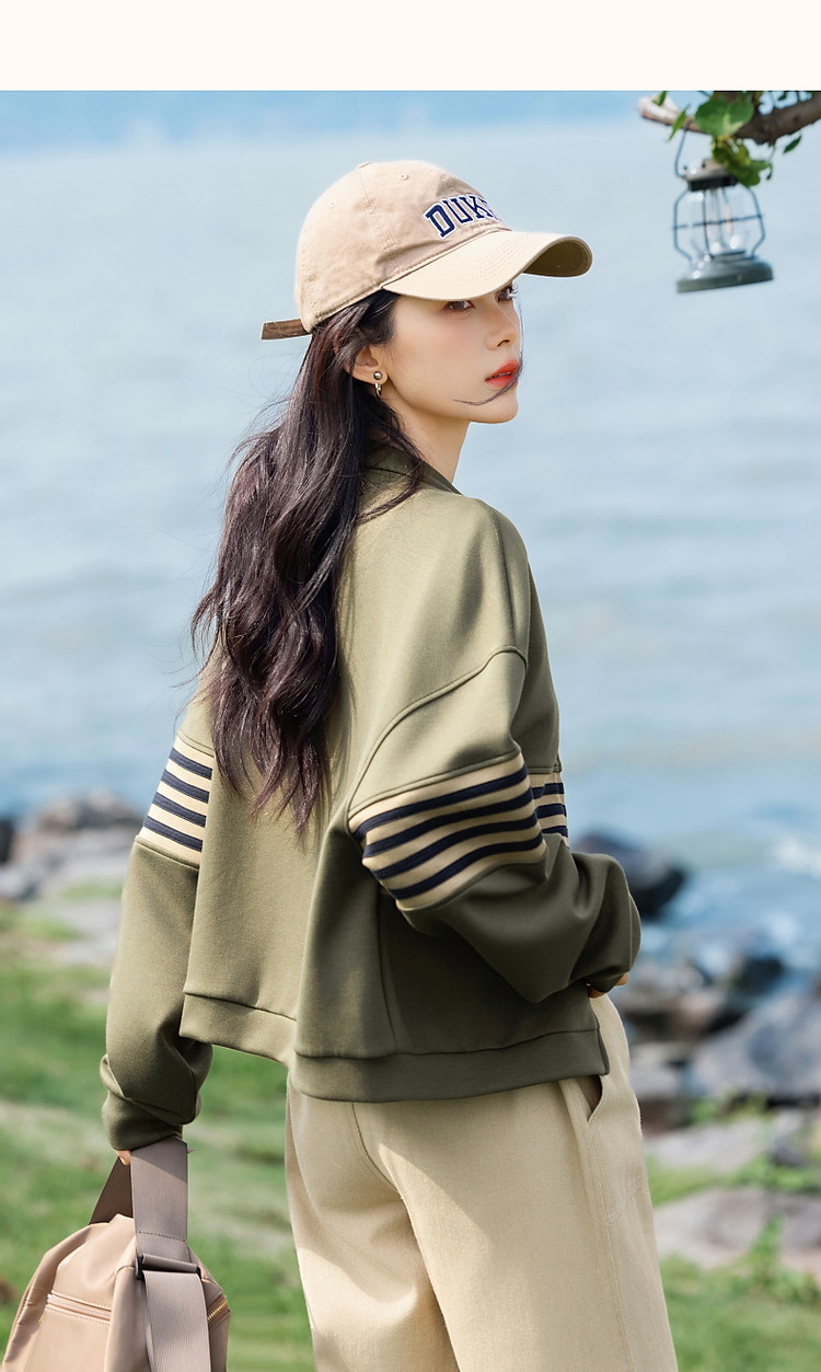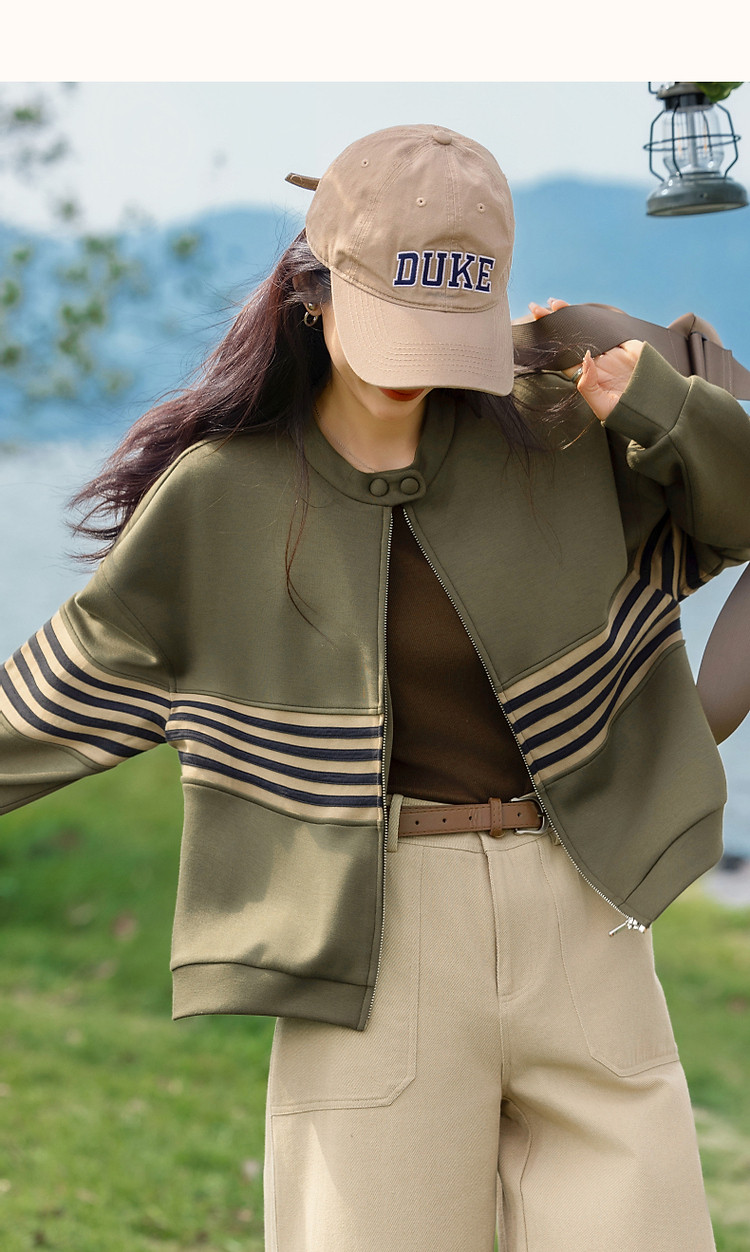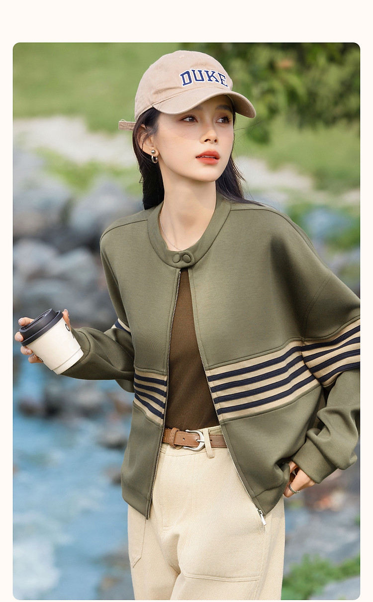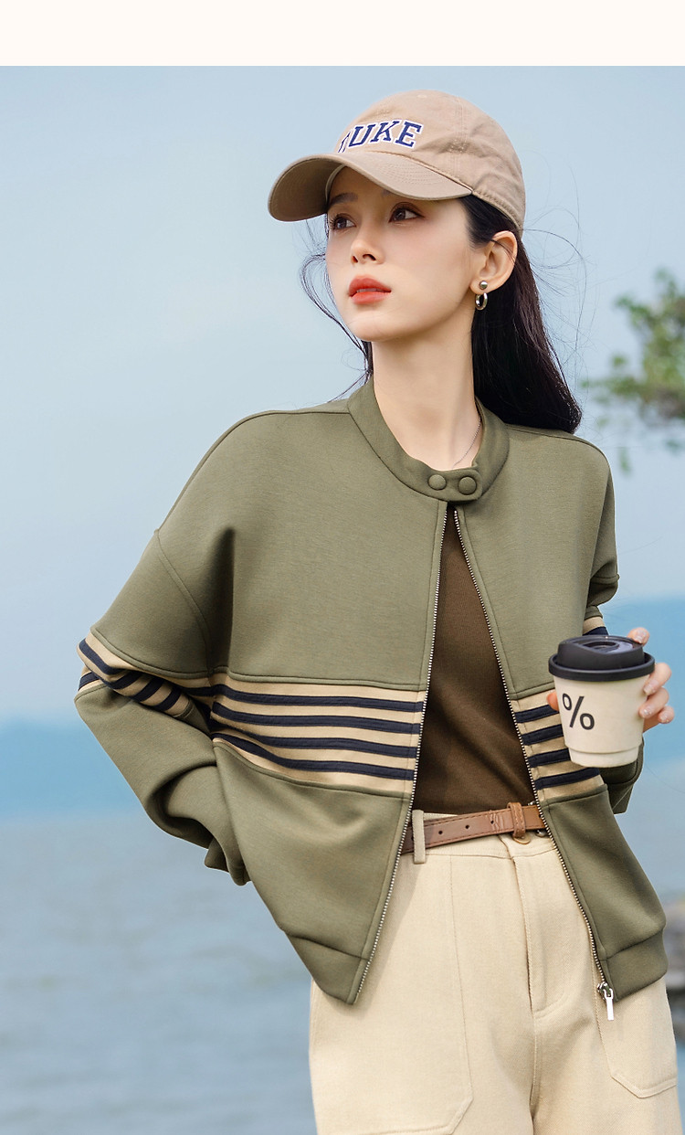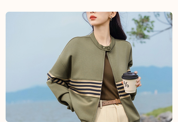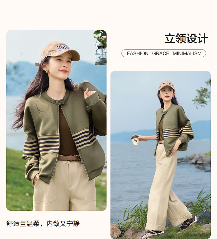 商品名称:【不挑身材】秋运动风立领320G空气层舒适藏肉针织外套女短款 071489
