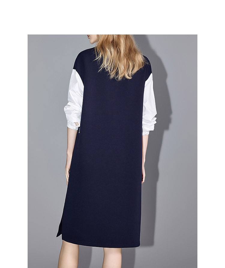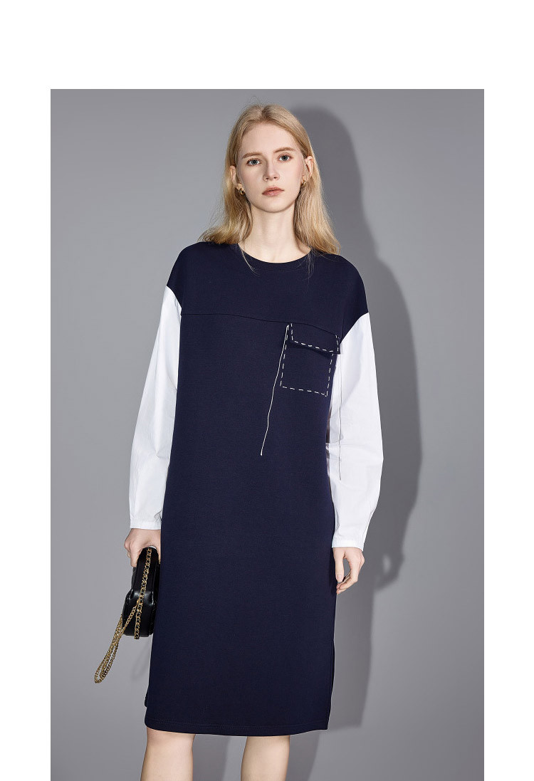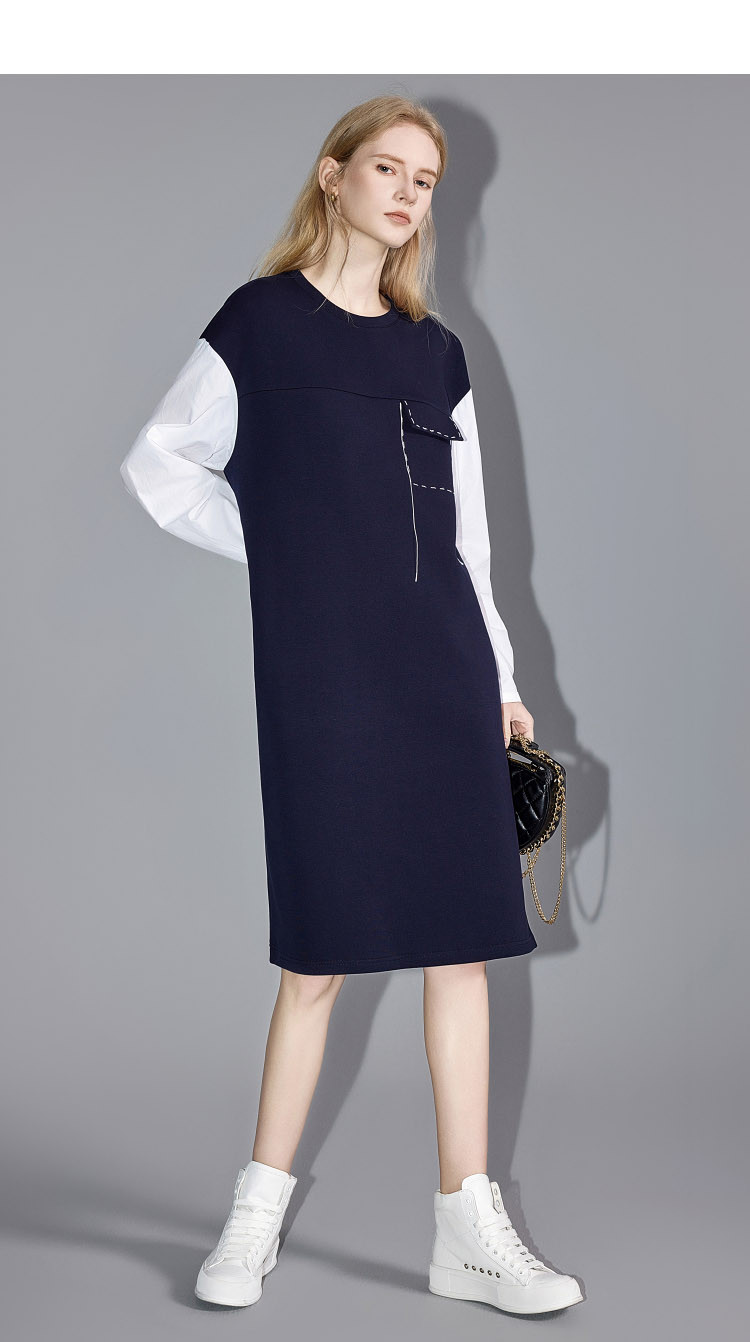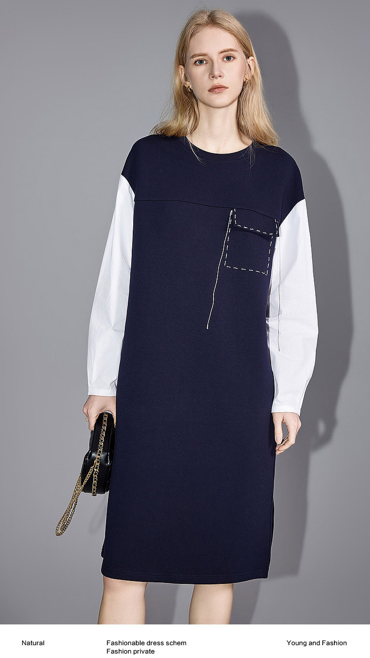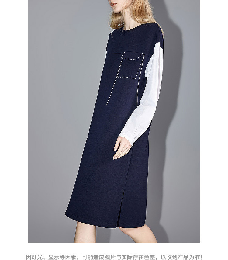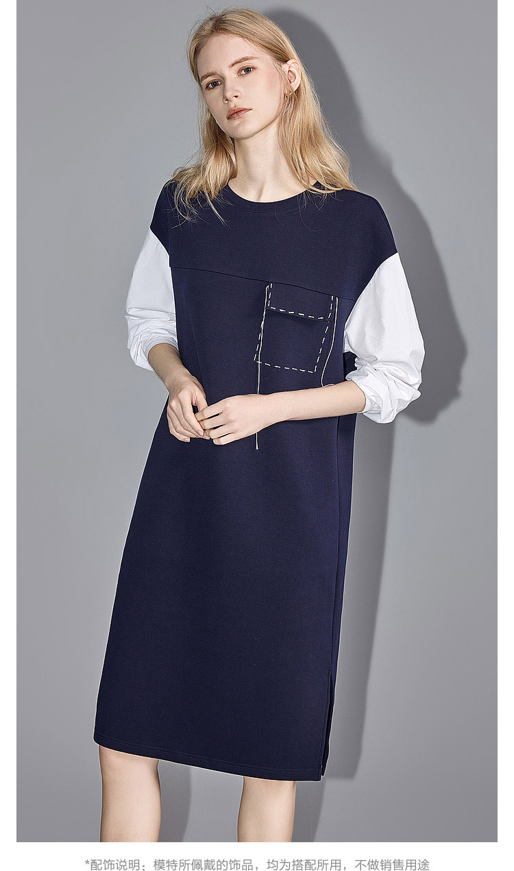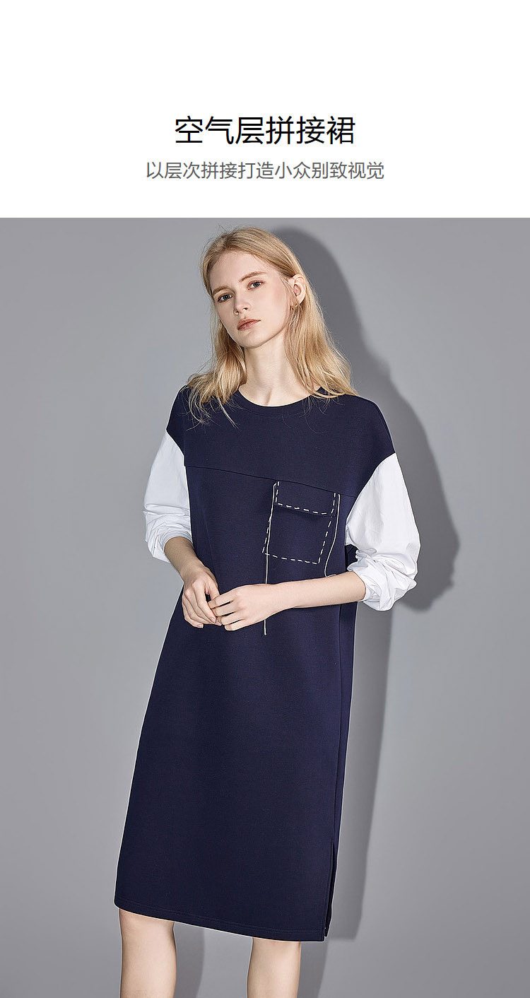 商品名称:【巧克力空气层a字裙】秋圆领直筒拼接连衣裙女中长款 820289