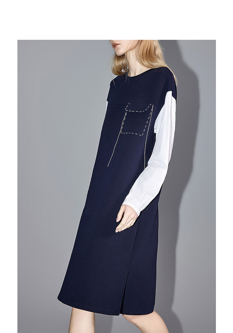 【巧克力空气层a字裙】秋圆领直筒拼接连衣裙女中长款 820289