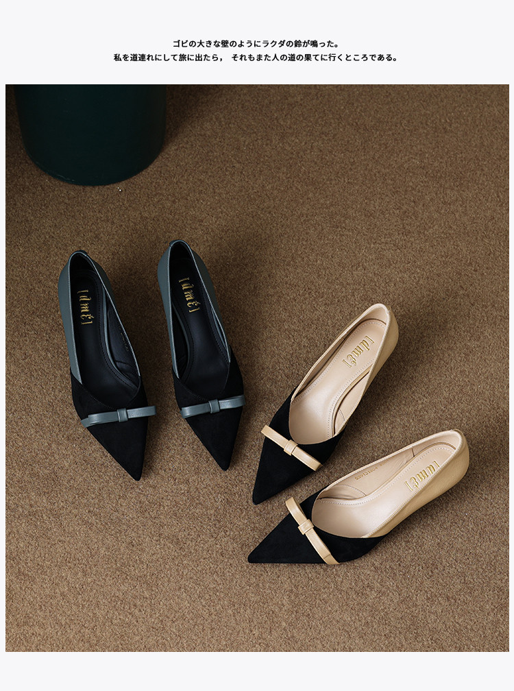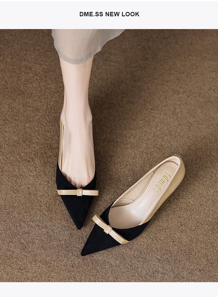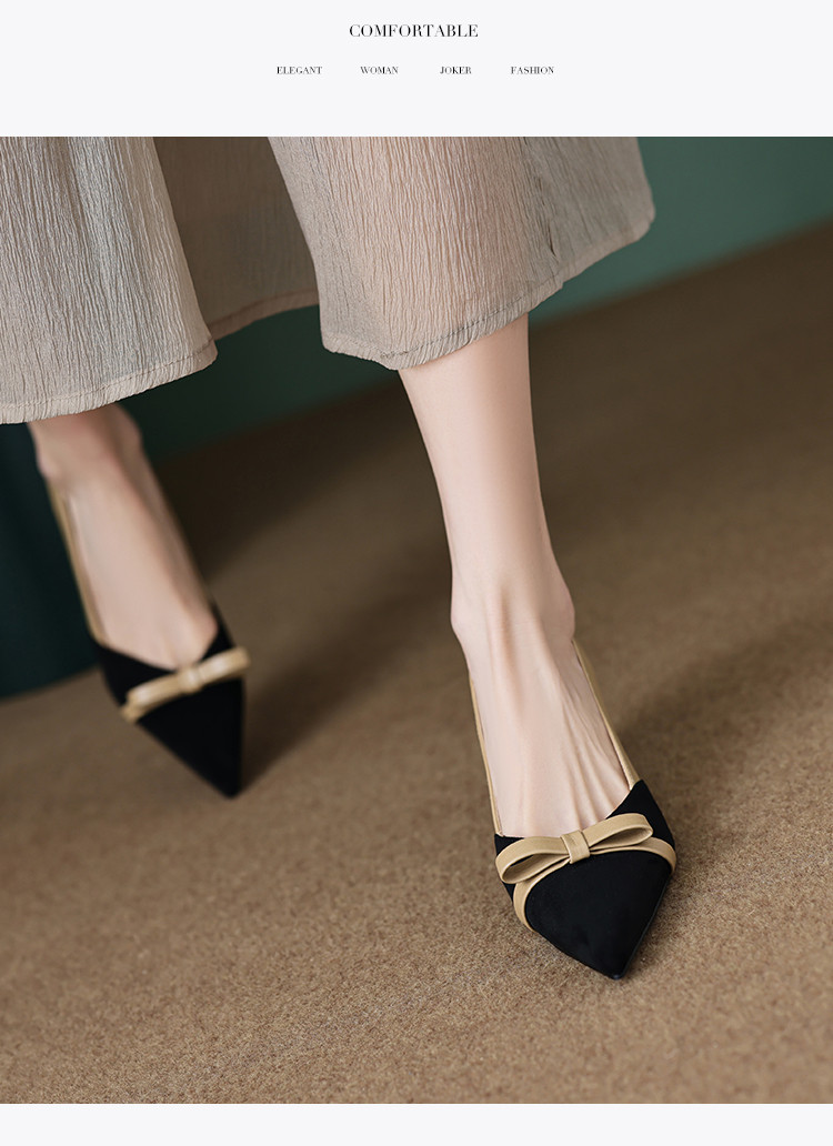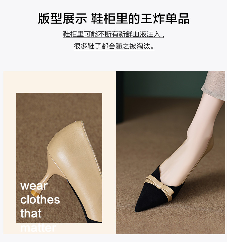 2024年秋季简约百搭高级感气质女人绒面拼接精致蝴蝶结细跟女 176257