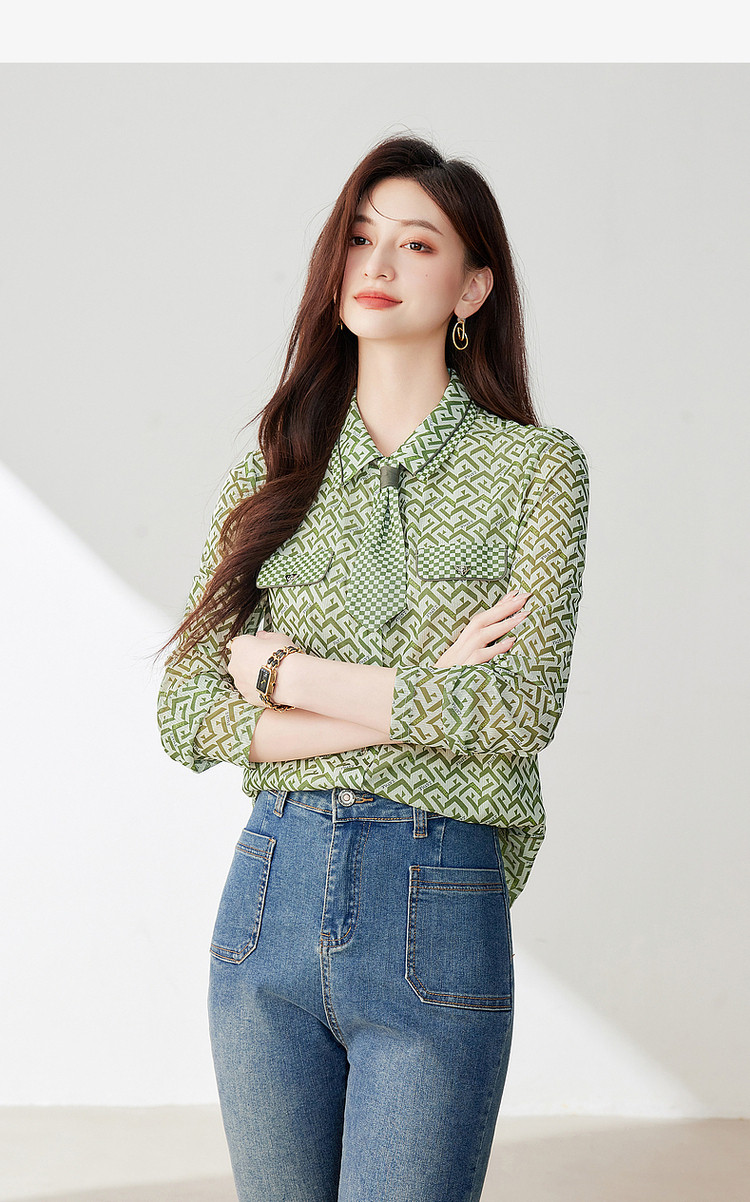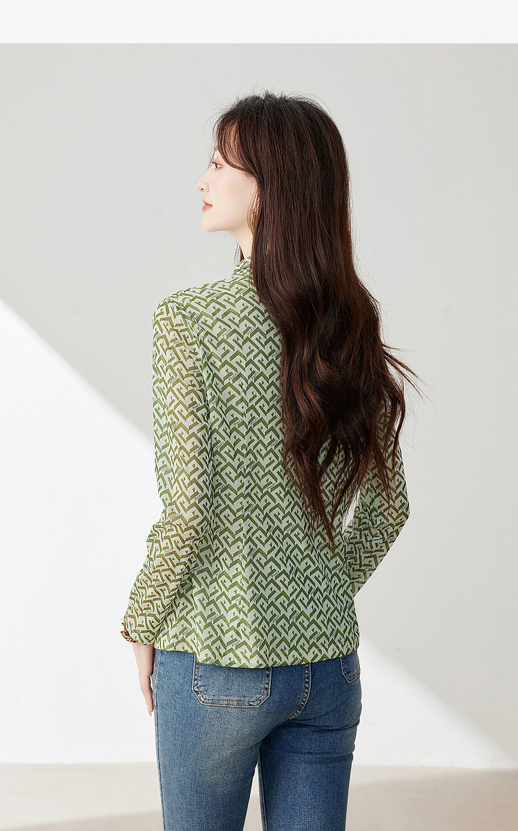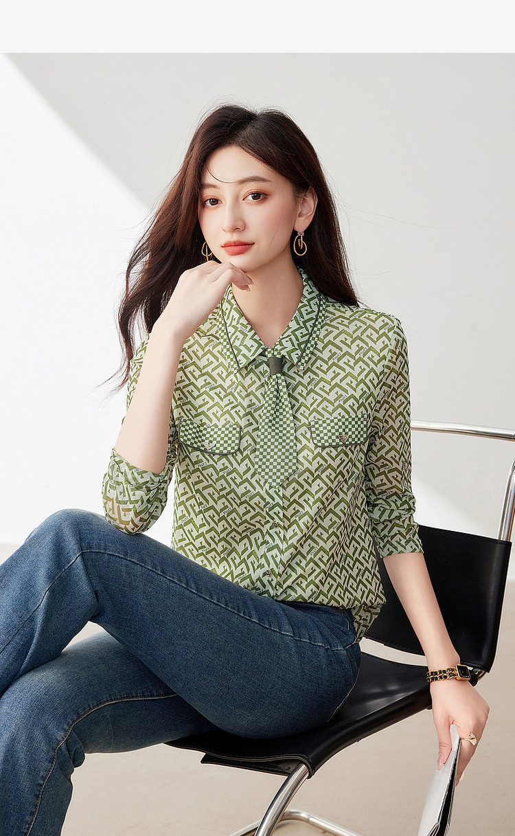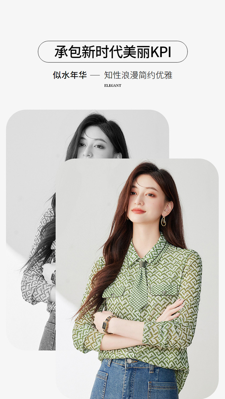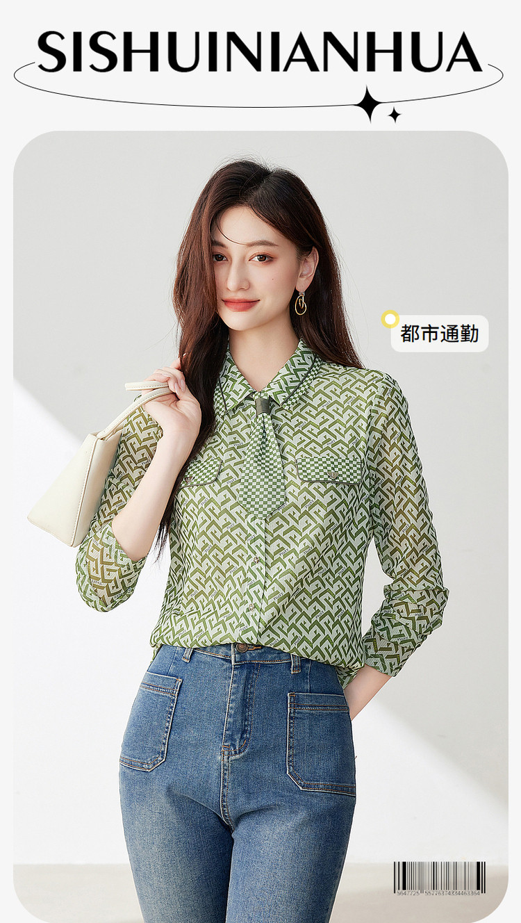 轻熟风印花衬衫春减龄好看洋气的小衫上衣 036632