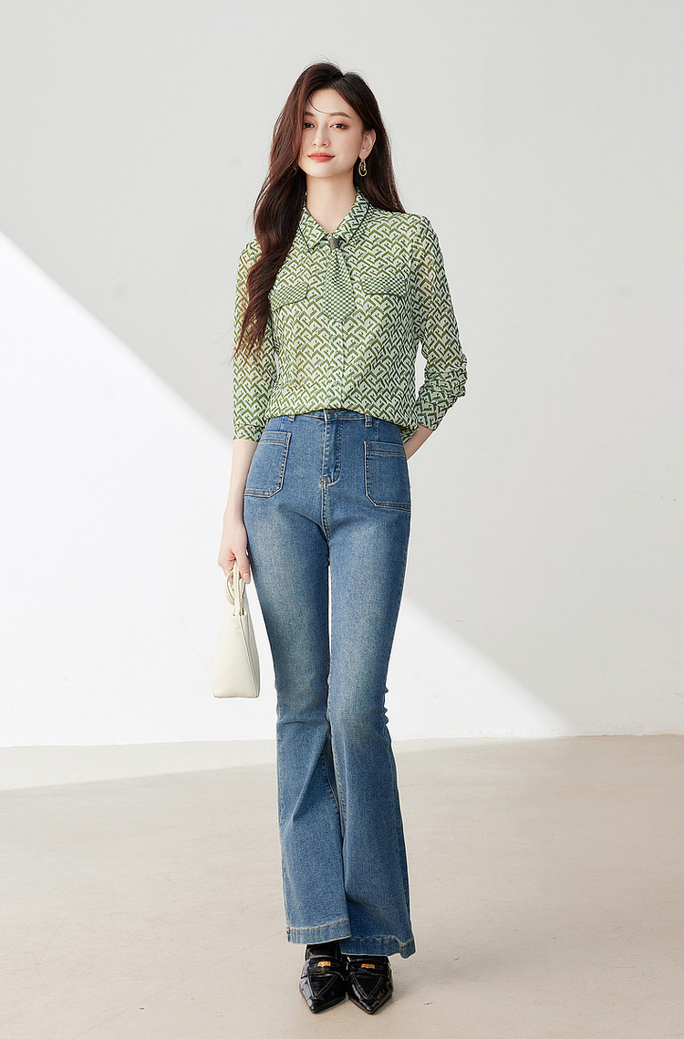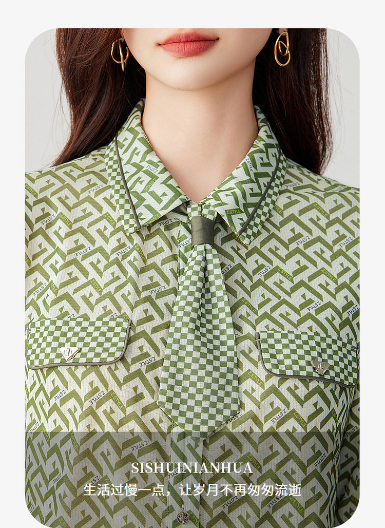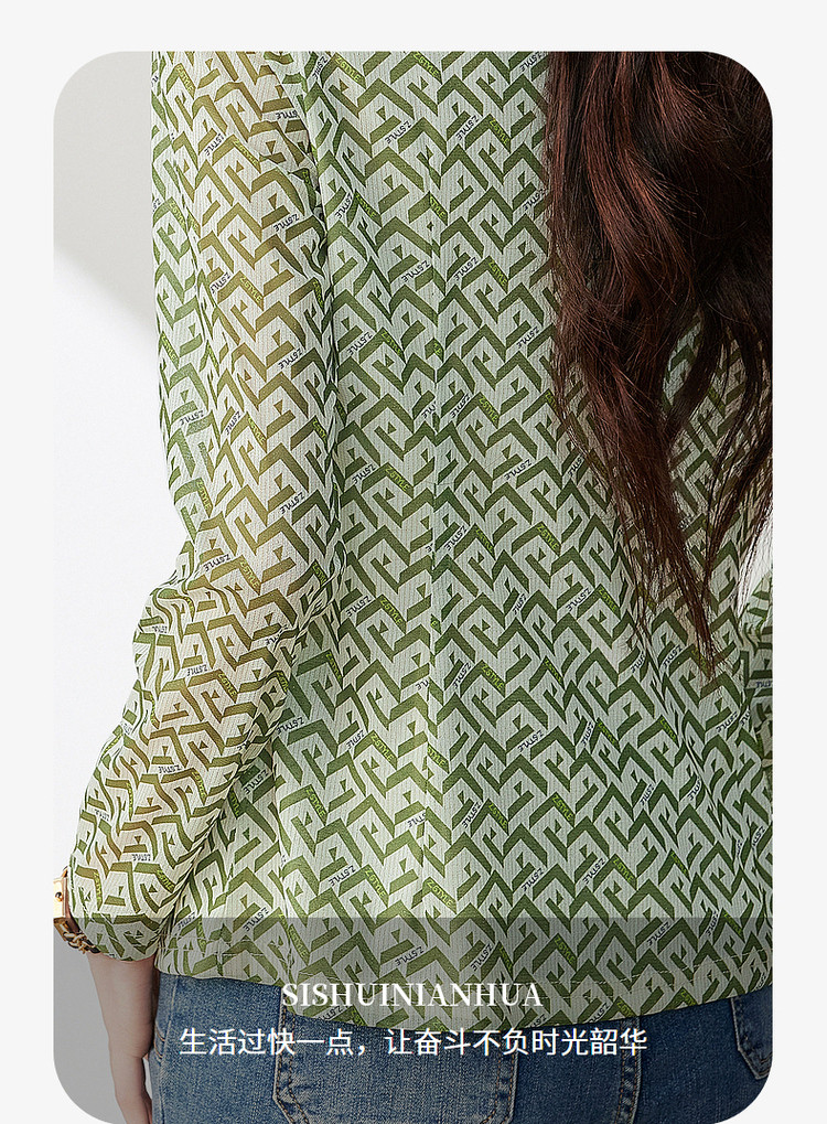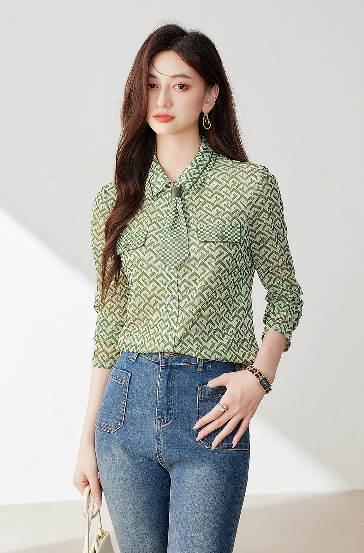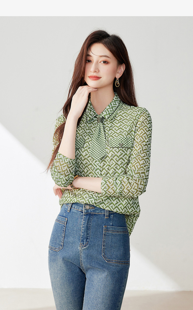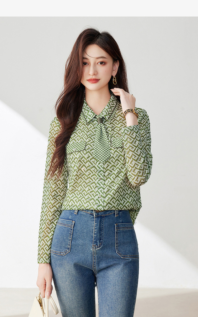 轻熟风印花衬衫春减龄好看洋气的小衫上衣 036632