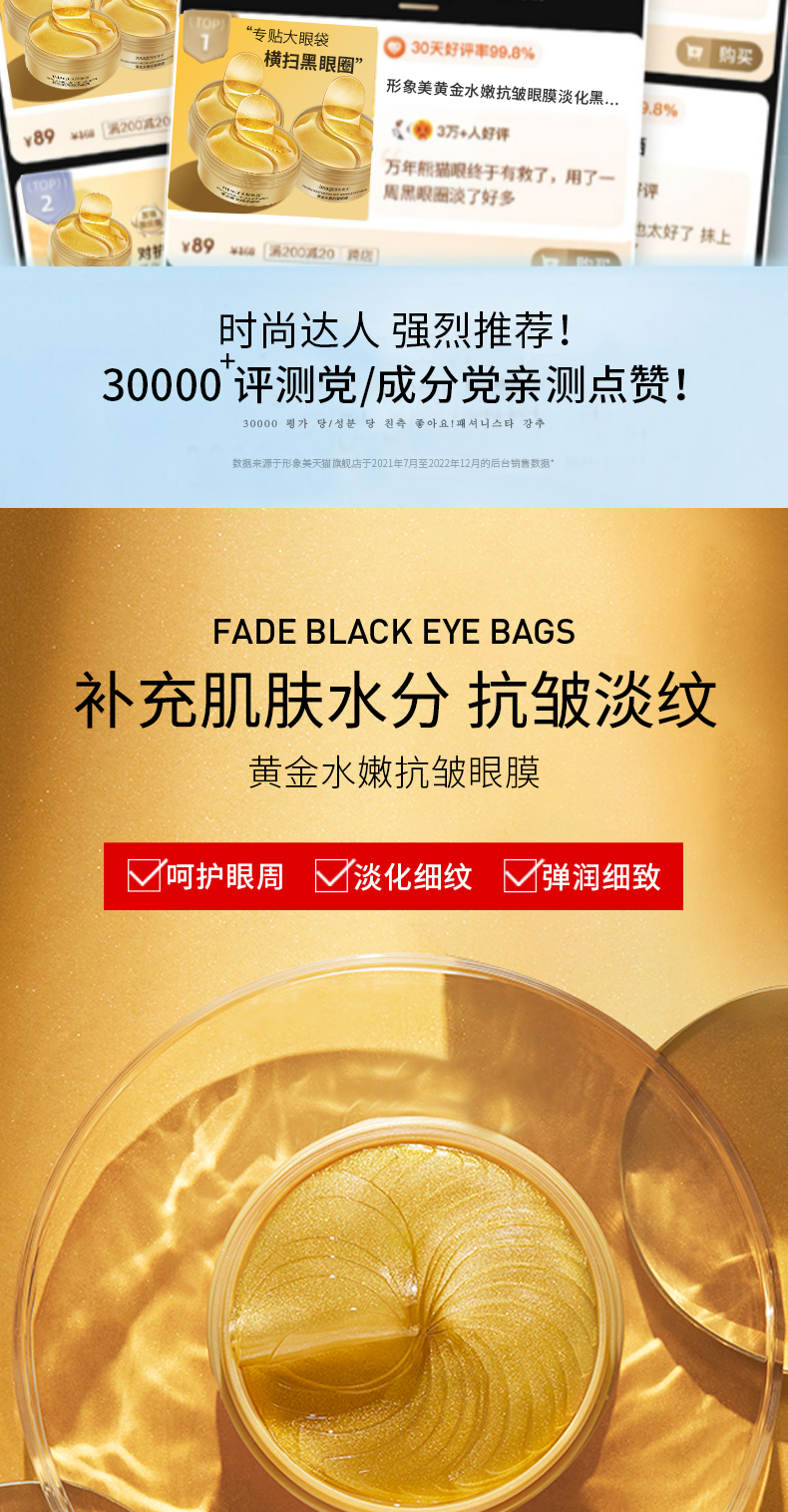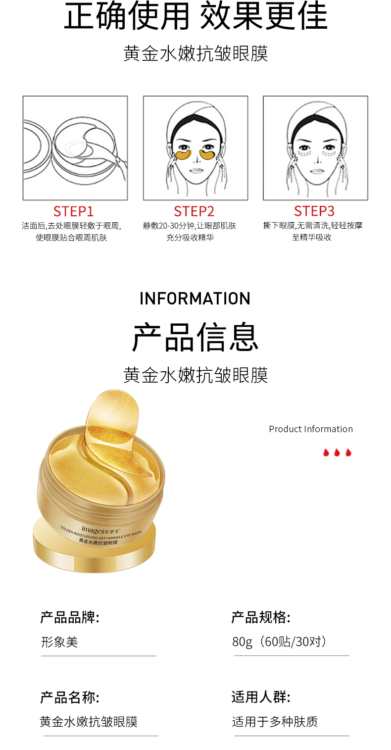 商品名称:形象美黄金眼膜 60贴/30对/80g*2瓶 眼膜TOP1