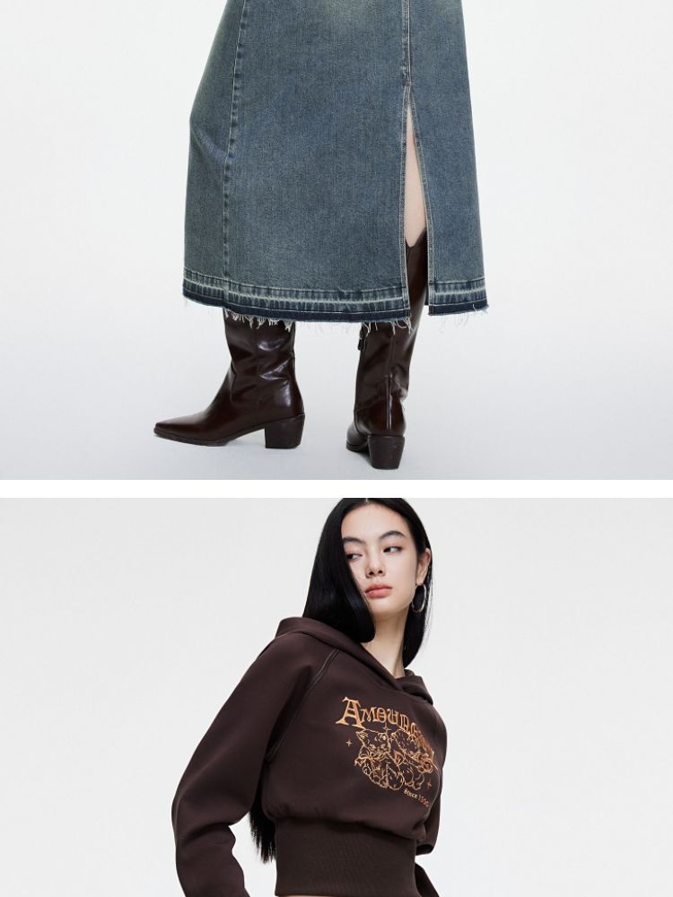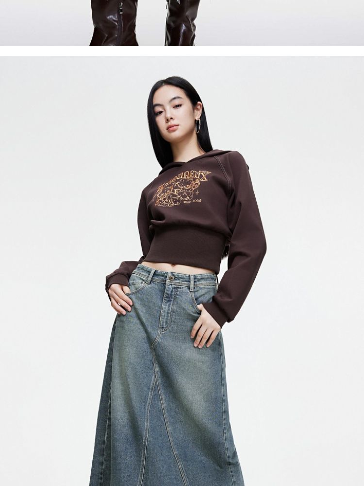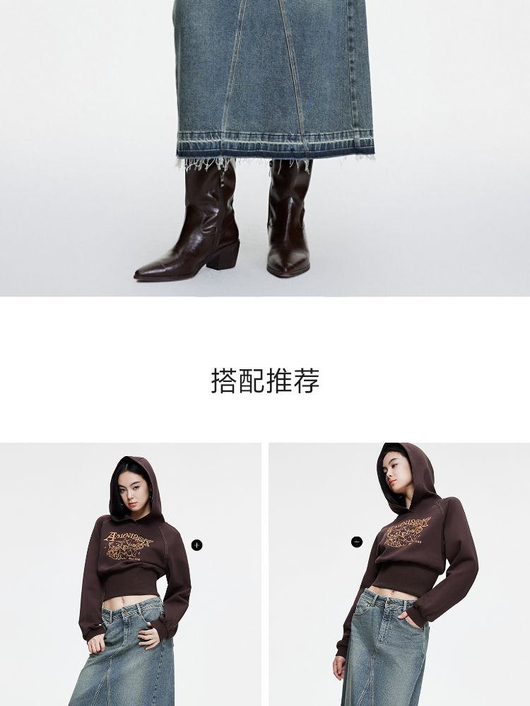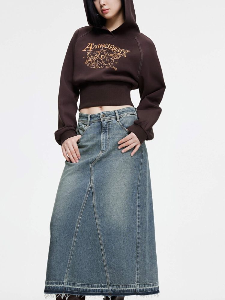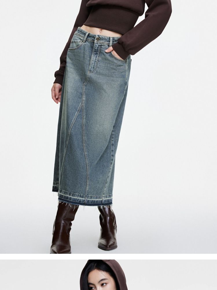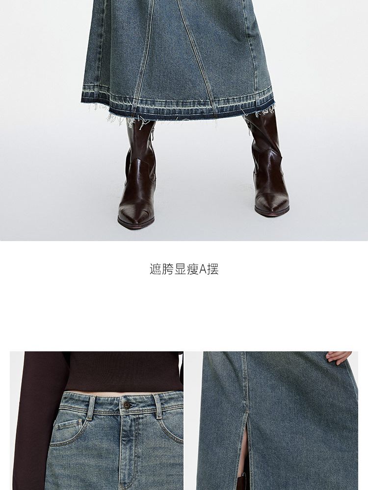 【拼接高腰】夏季时尚通勤风毛边牛仔半身裙女 991130