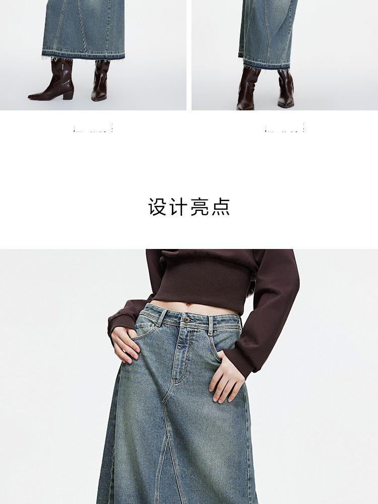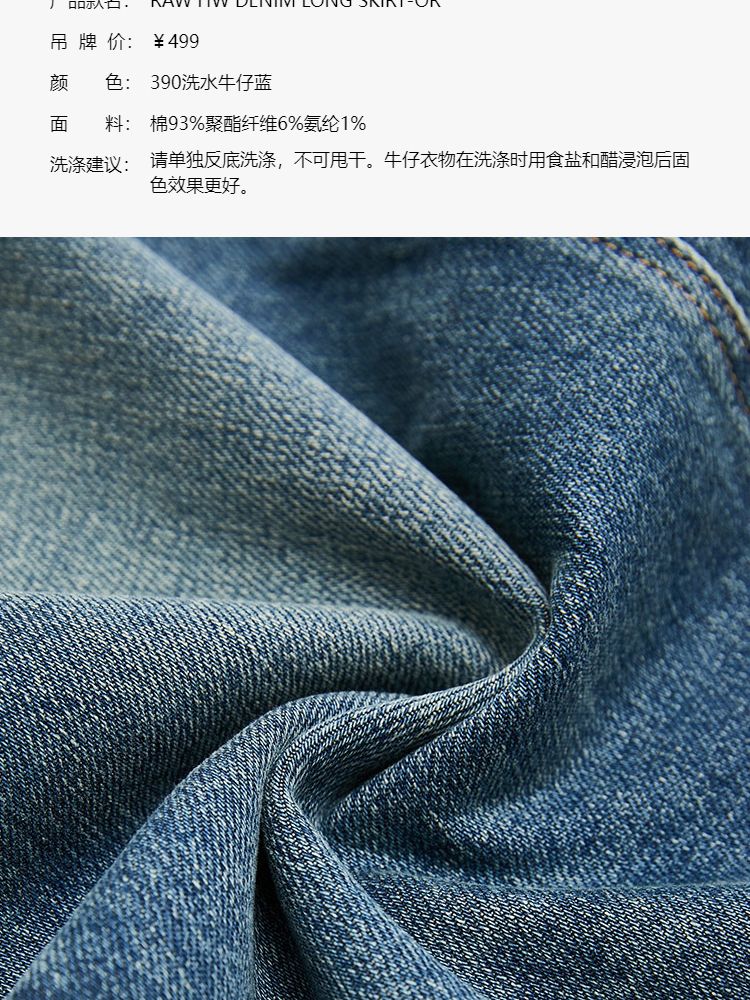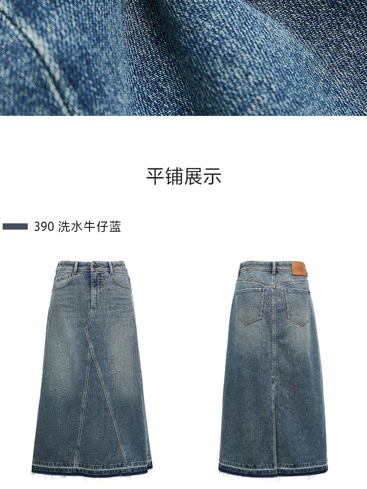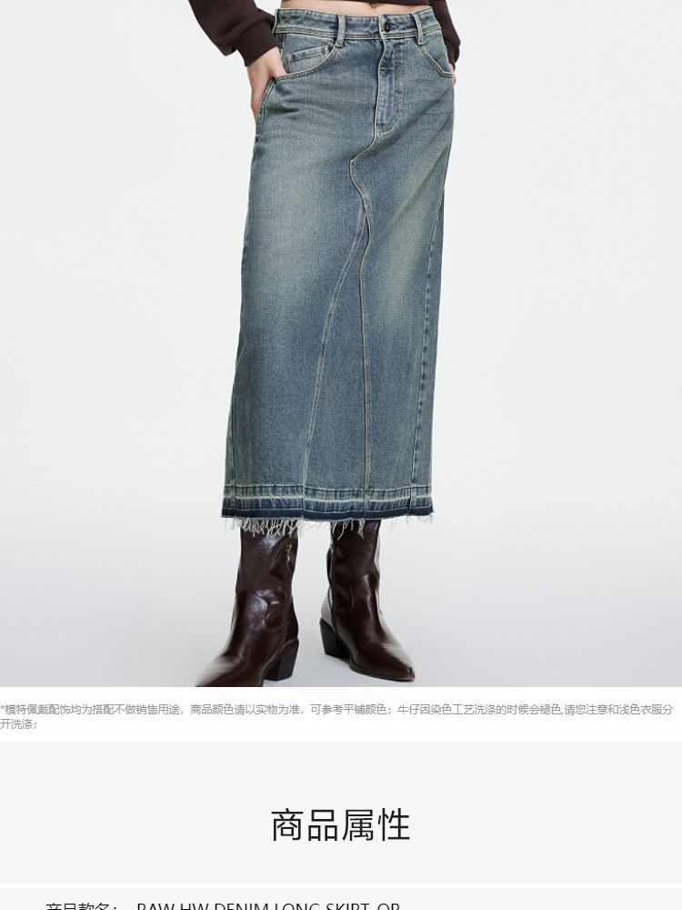 商品名称:【拼接高腰】夏季时尚通勤风毛边牛仔半身裙女 991130
