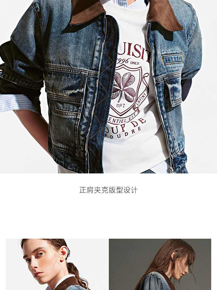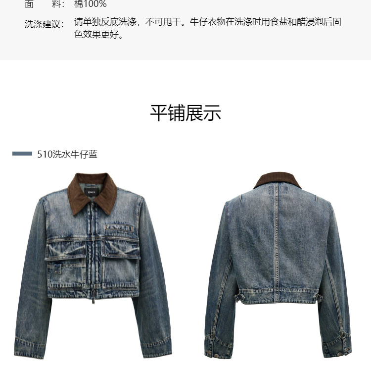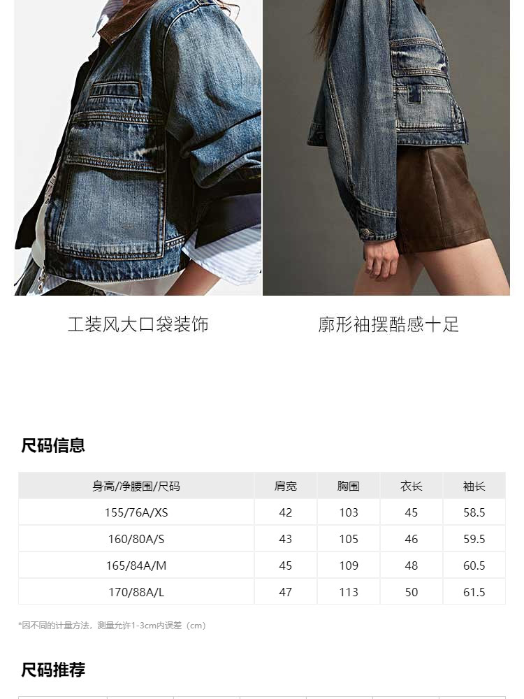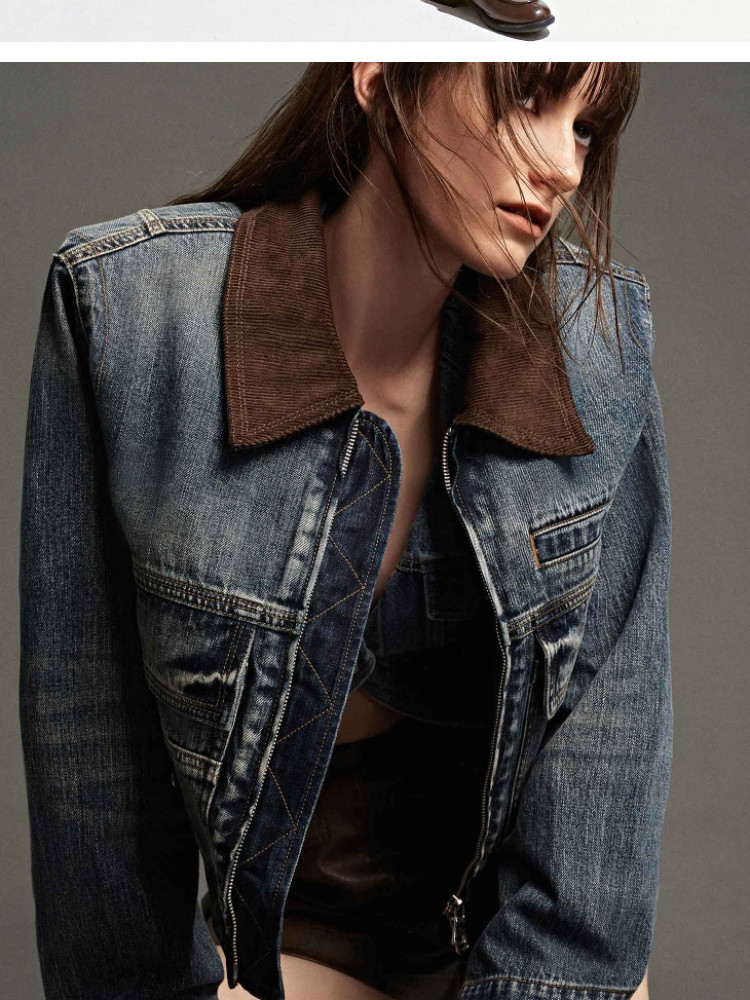 商品名称:【翻领短款】春季时尚潮流机车款翻领短款牛仔外套女 583514