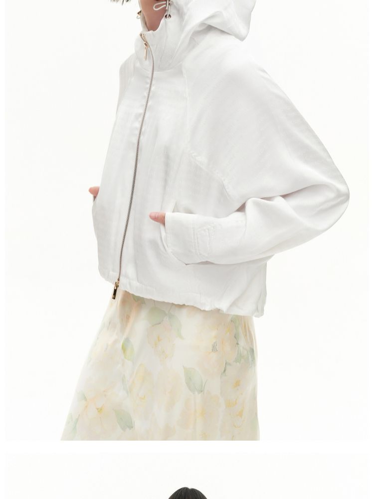 商品名称:【简约休闲】春季宽松插肩袖短款连帽外套女 125018