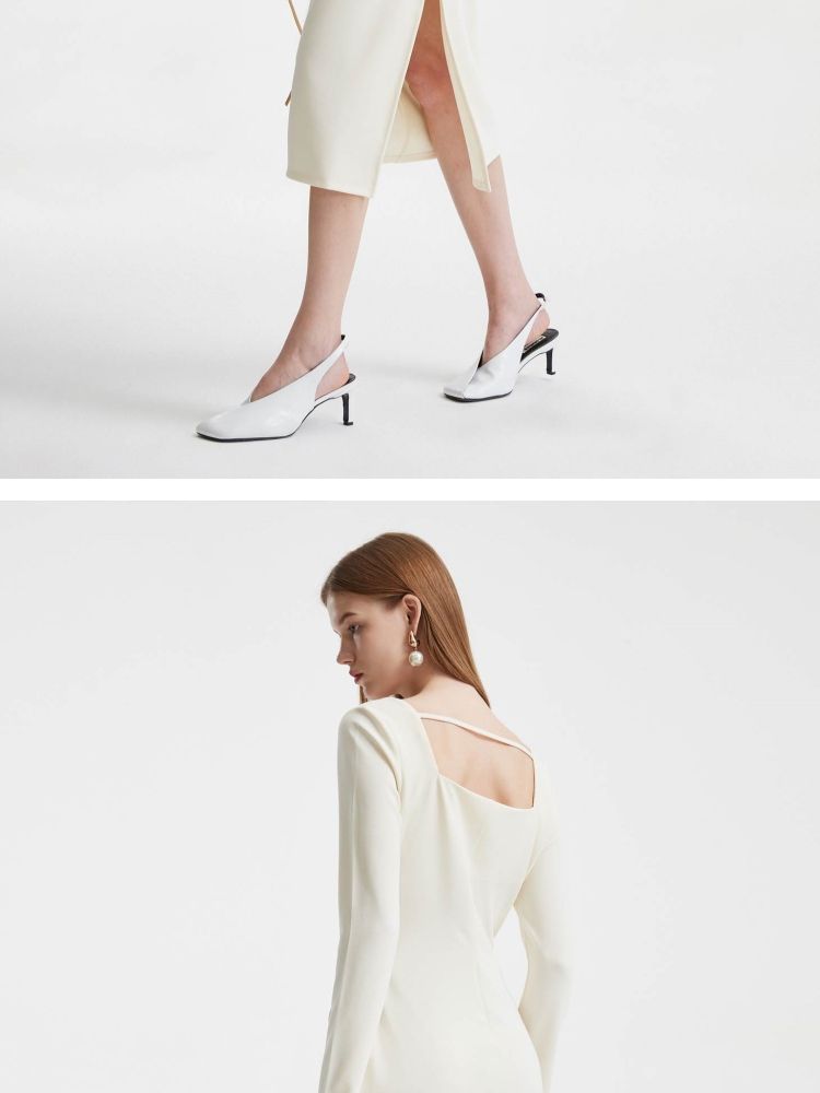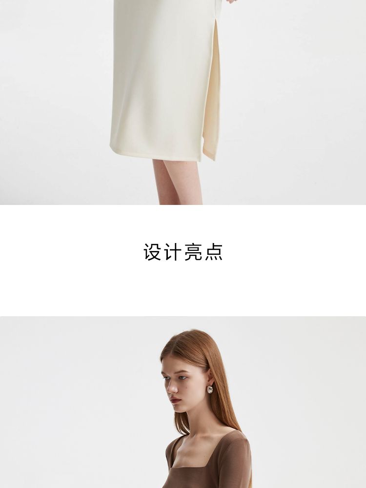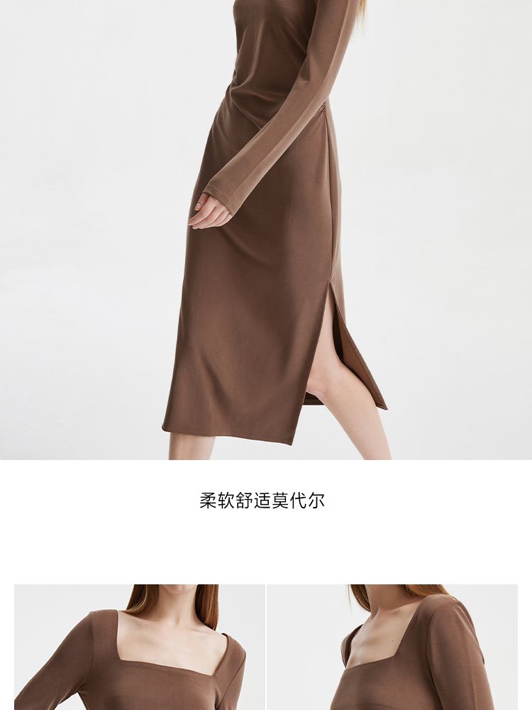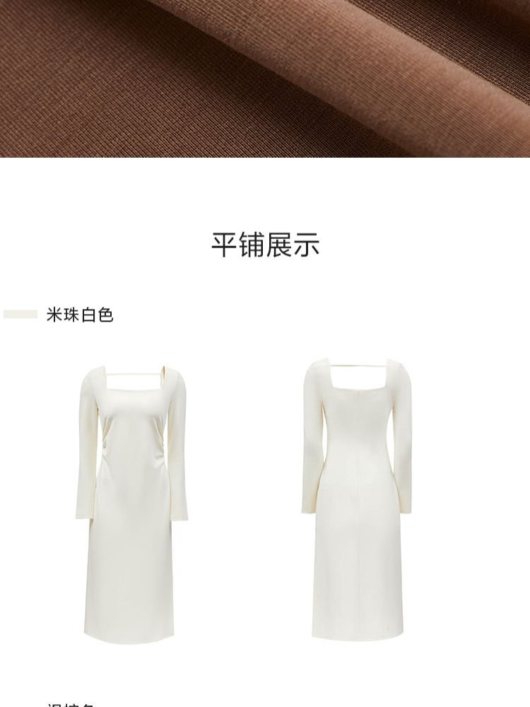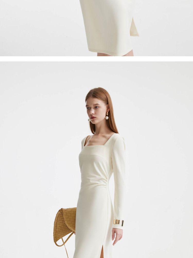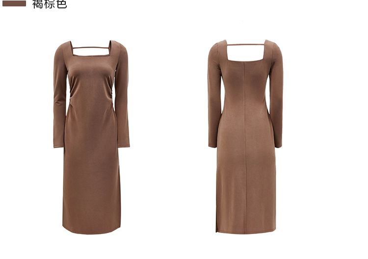 商品名称:【腰部显瘦抽褶】夏季简约复古方领垂感开衩长裙连衣裙女 606426