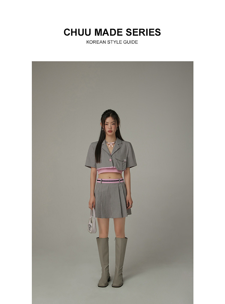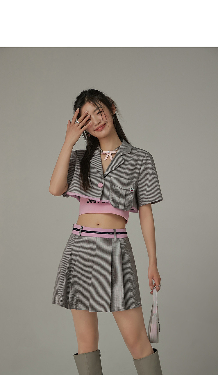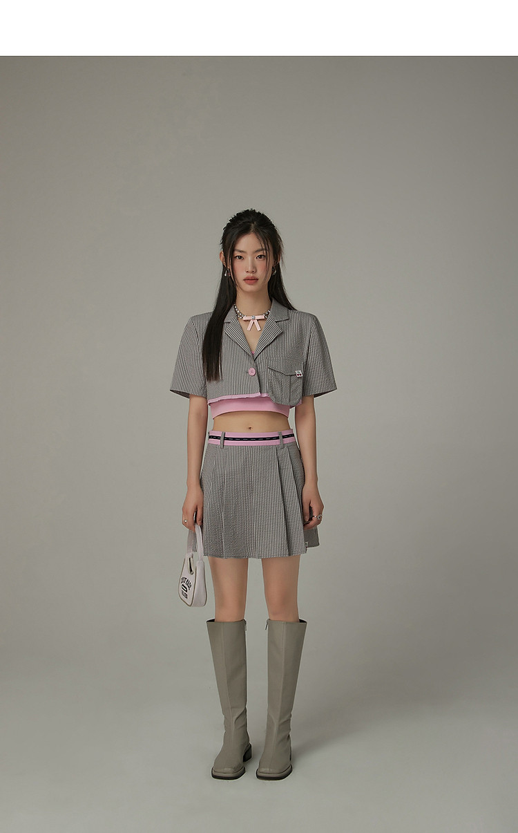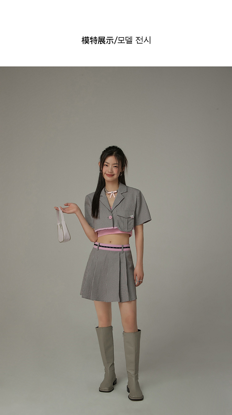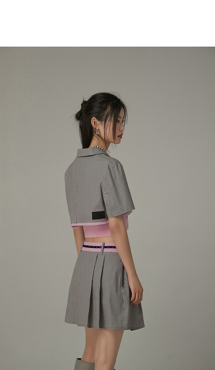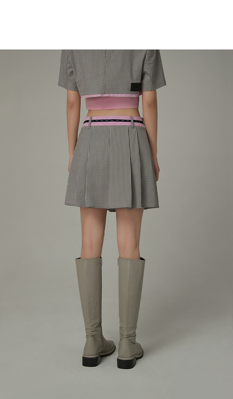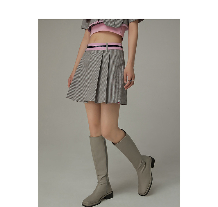 商品名称:条纹高腰半身裙女士春夏韩版拼接小樱桃a字短裙子 546899
