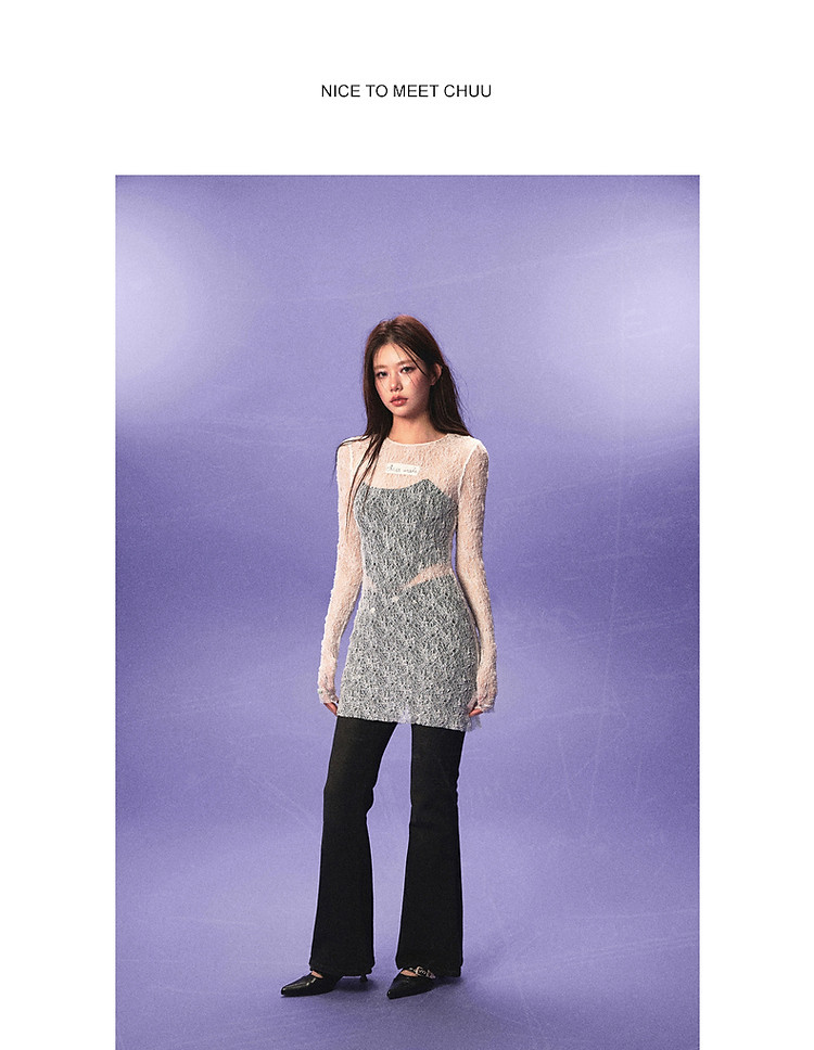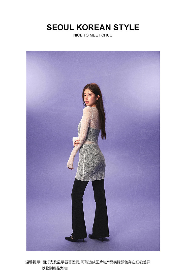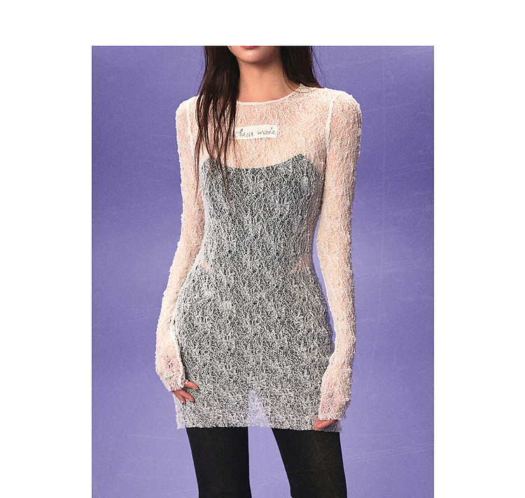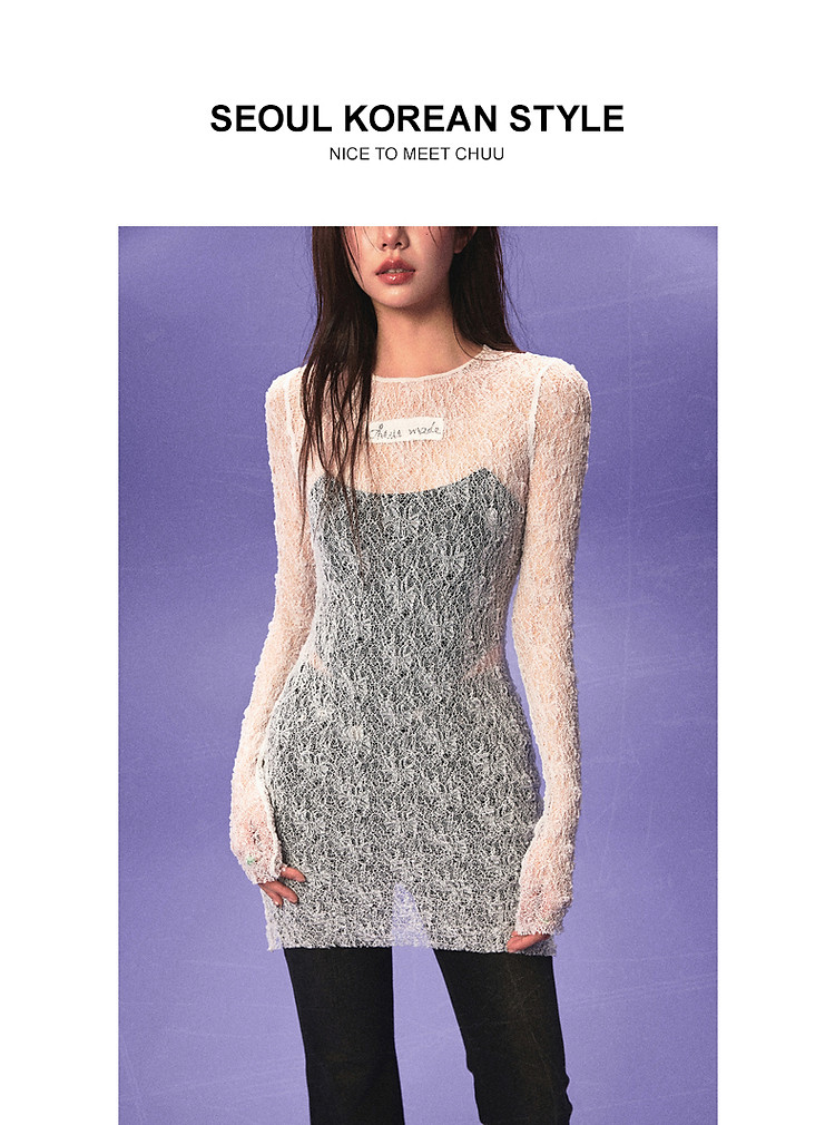 商品名称:蕾丝长袖小衫女秋季辣妹女神性感镂空轻薄长上衣裙 750099