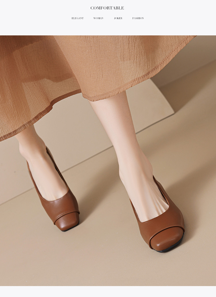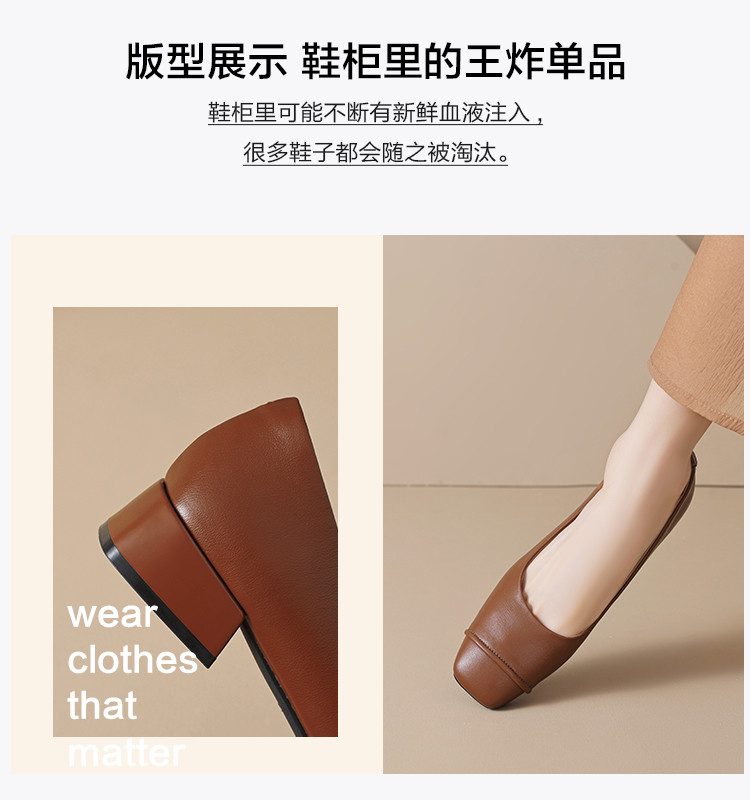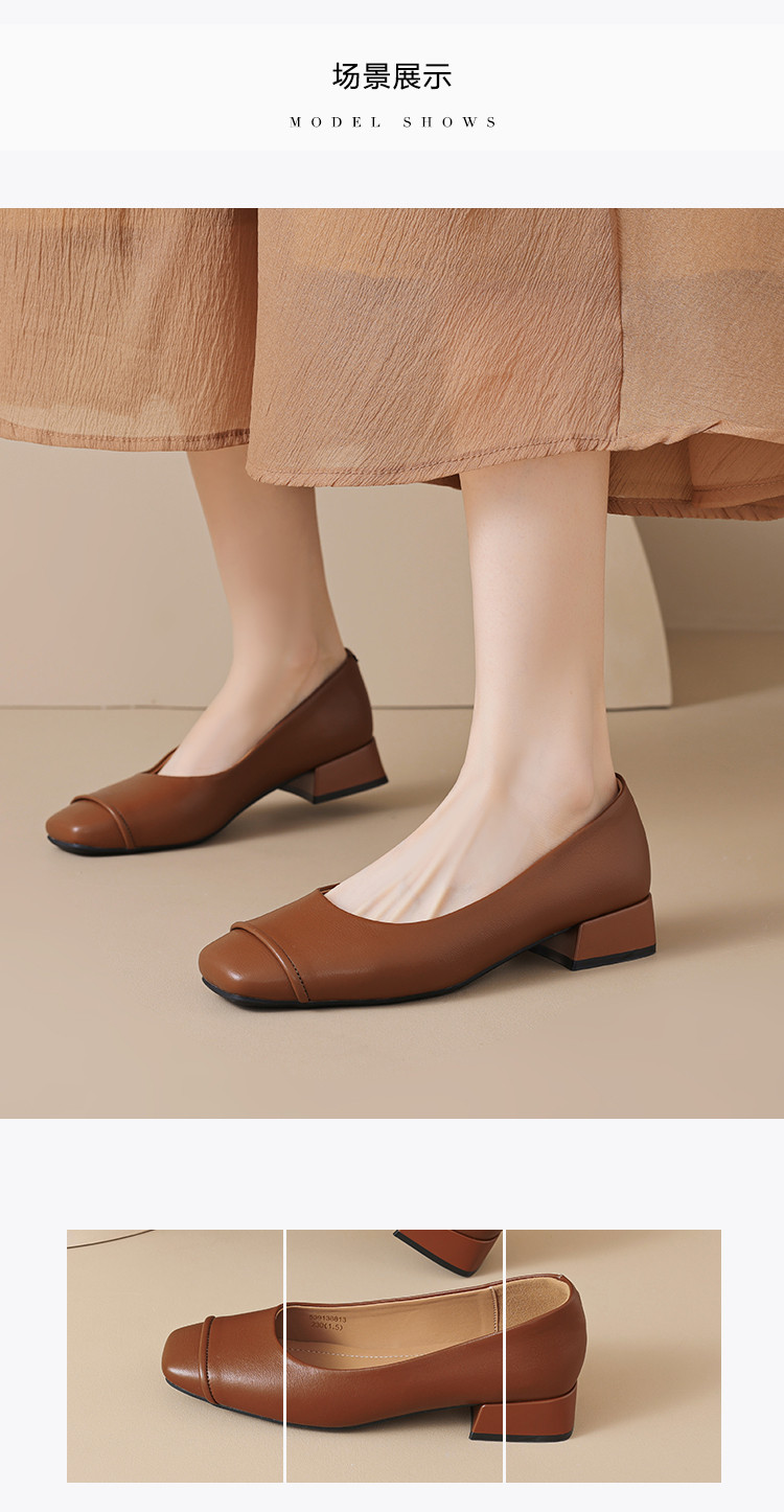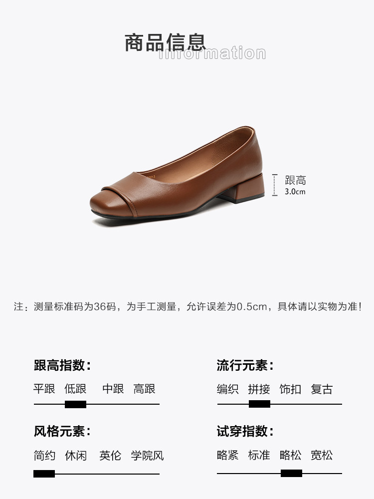 商品名称:2024秋季百搭通勤简约日常舒适方跟纯色拼接方头女单鞋通勤鞋 358081
