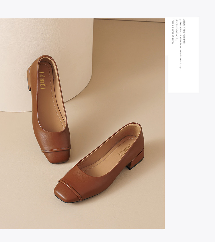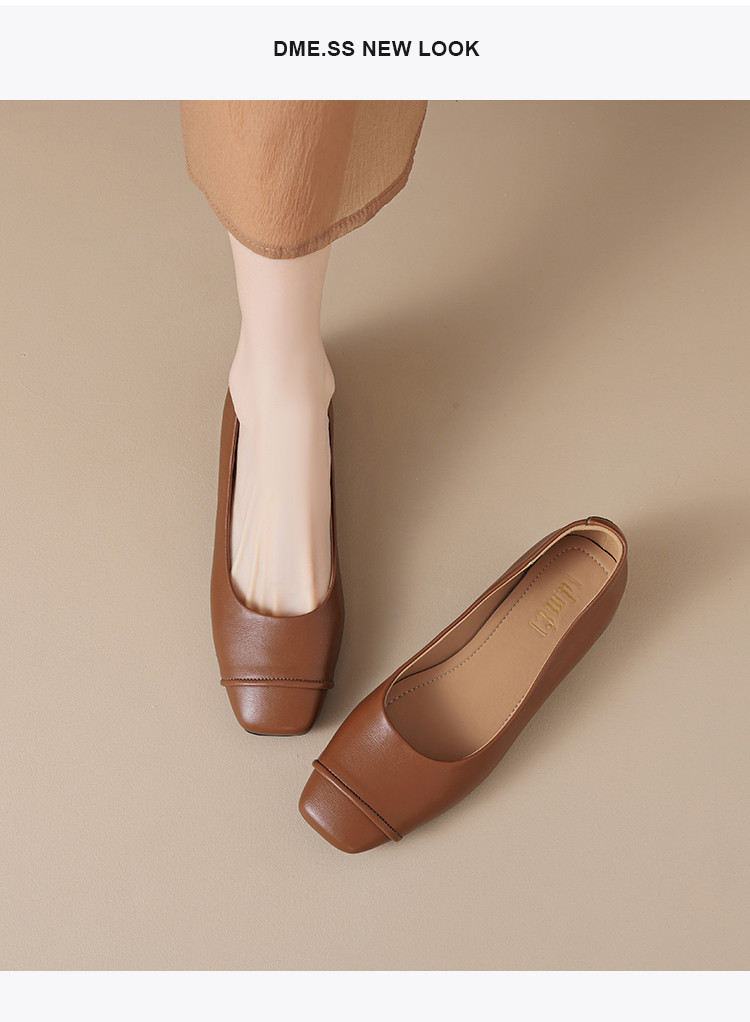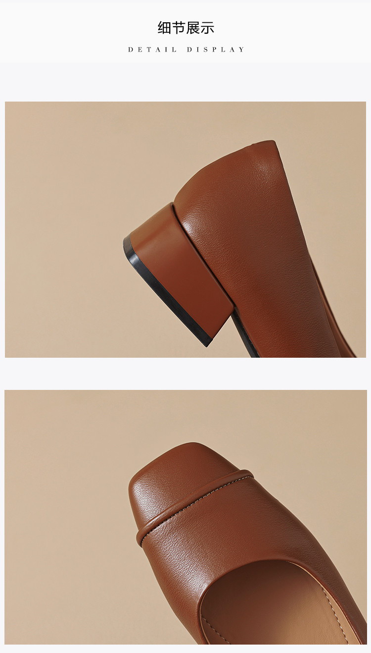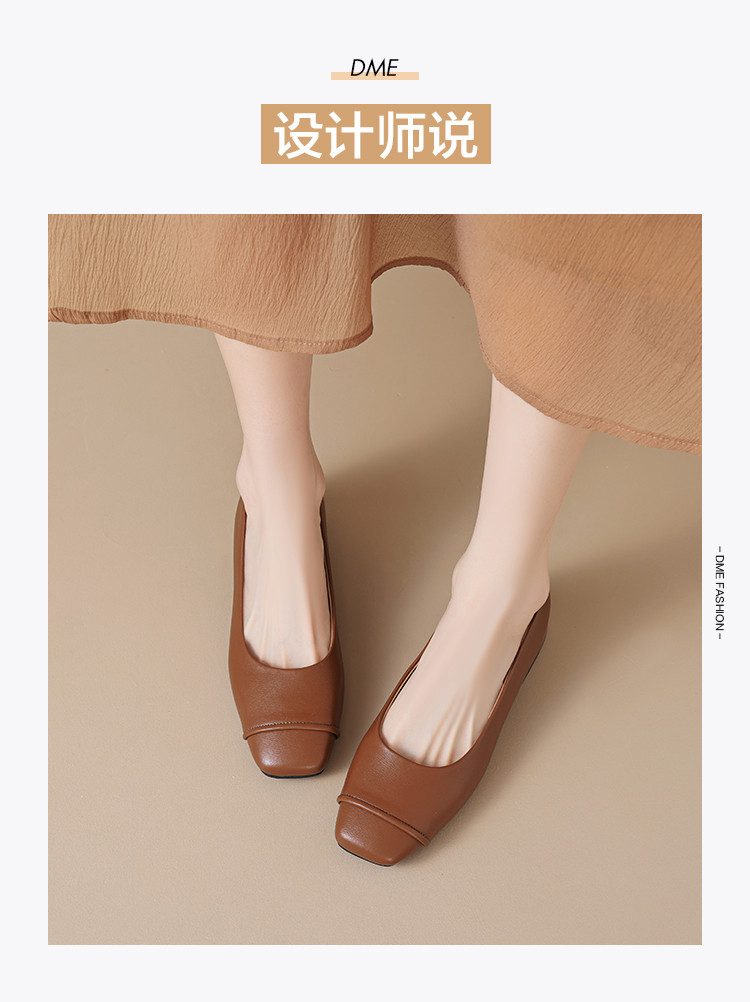 2024秋季百搭通勤简约日常舒适方跟纯色拼接方头女单鞋通勤鞋 358081