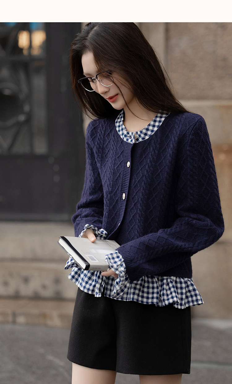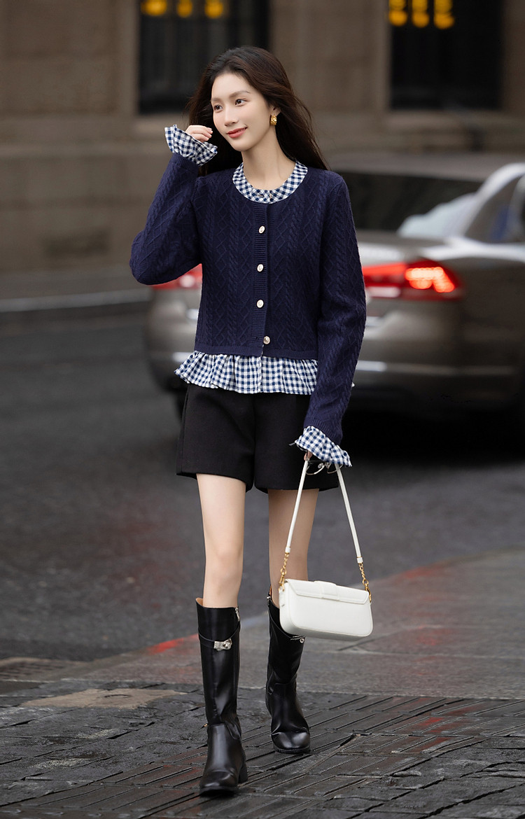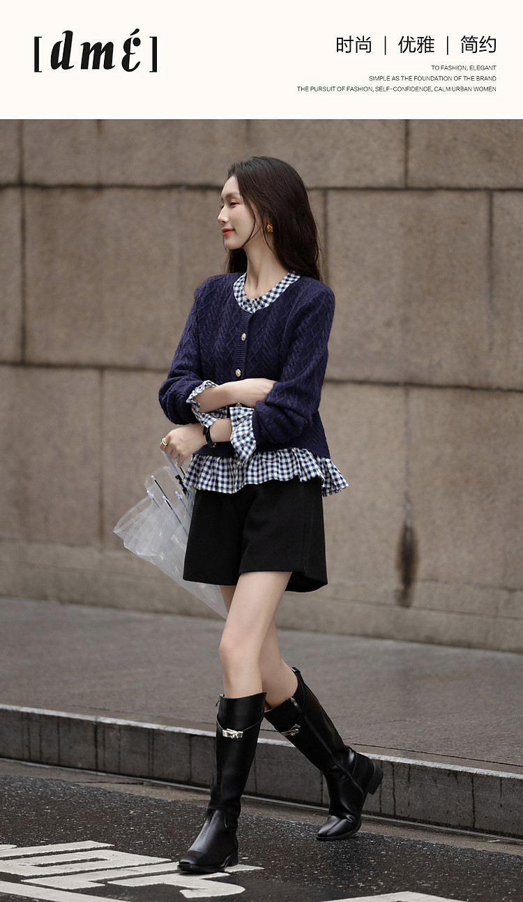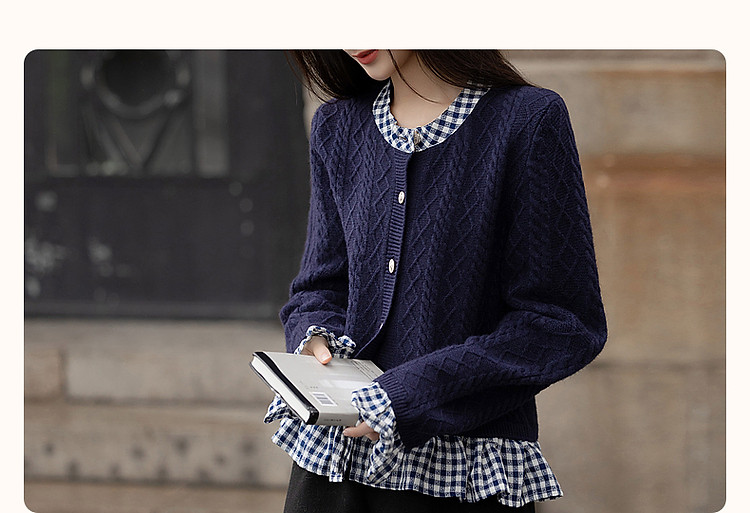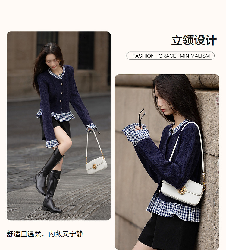 【小城故事】秋轻龄感假两件舒柔纤绒纱线衫立领荷叶边针织衫 299585