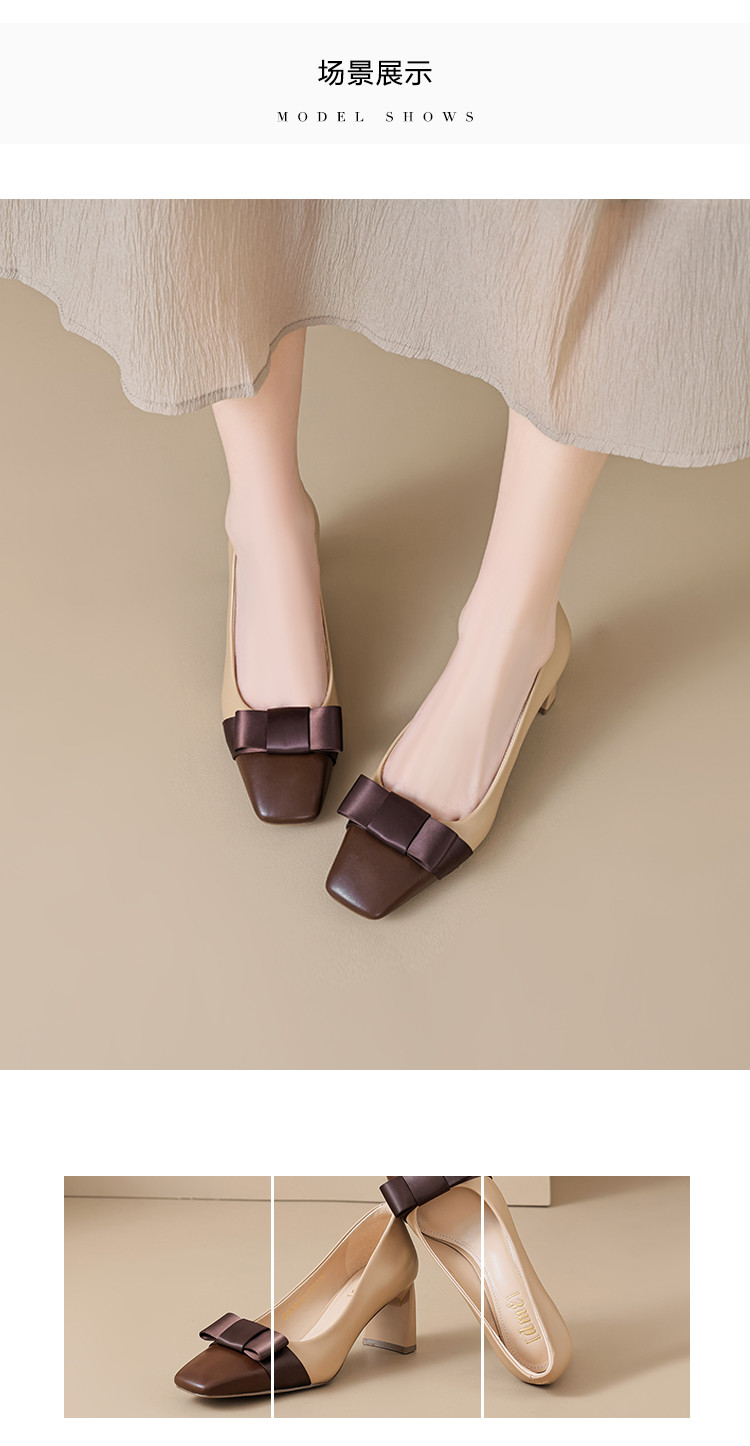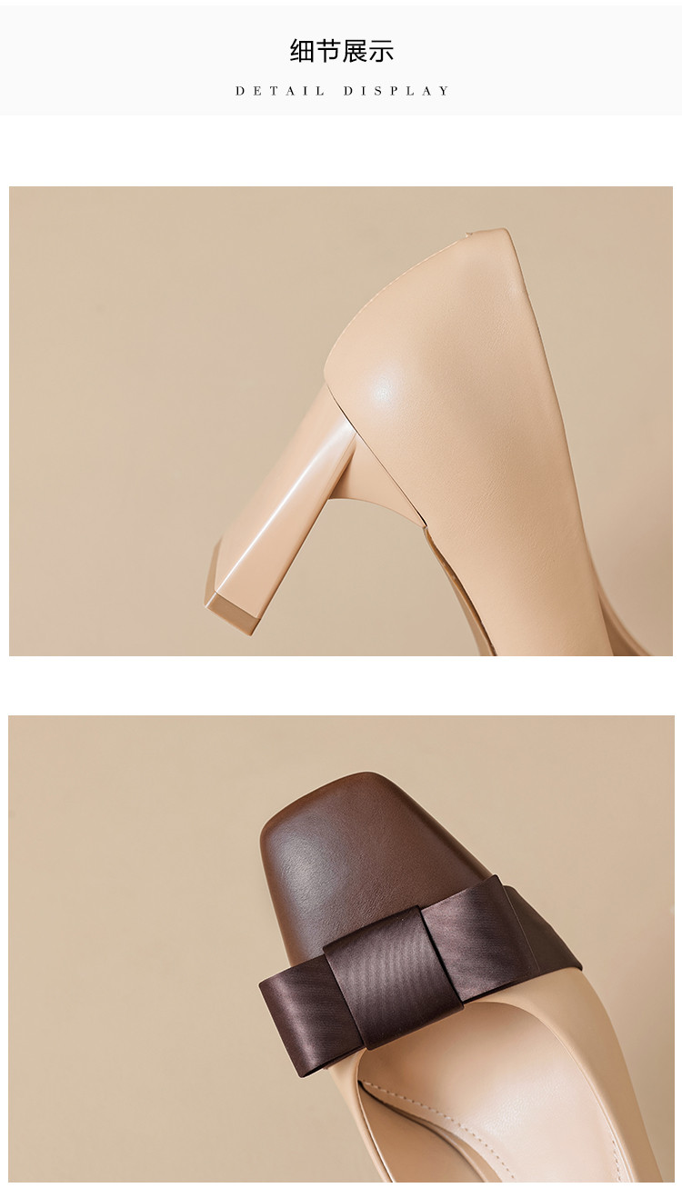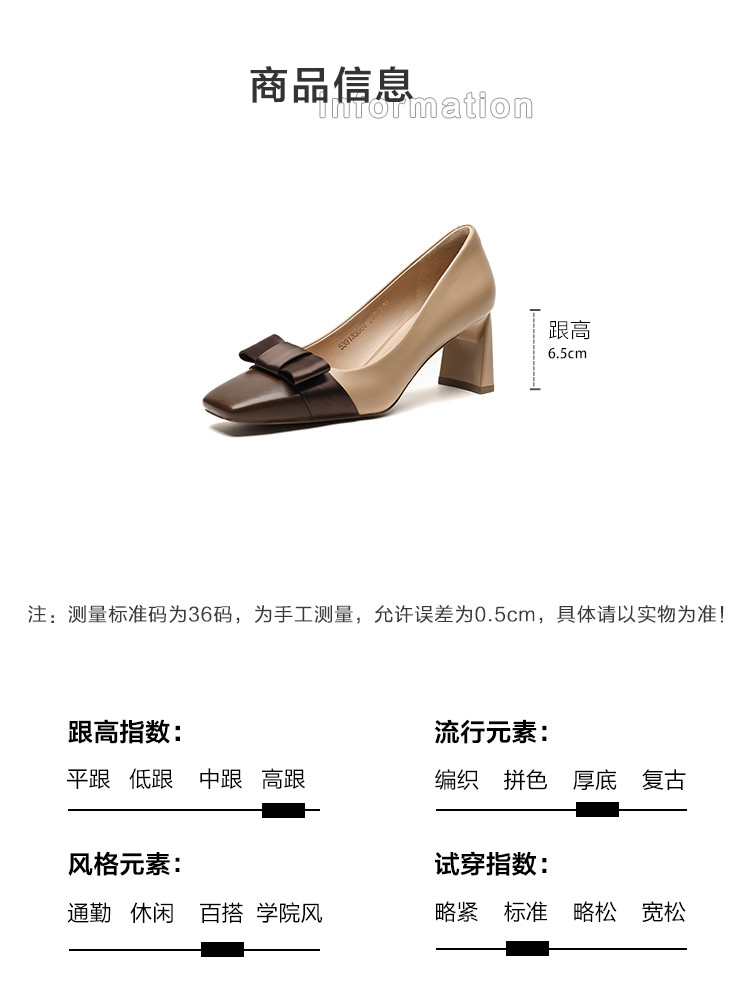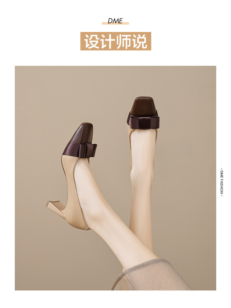 商品名称:2024秋季时尚简约气质百搭撞色拼接优雅蝴蝶结高跟女单鞋 317121