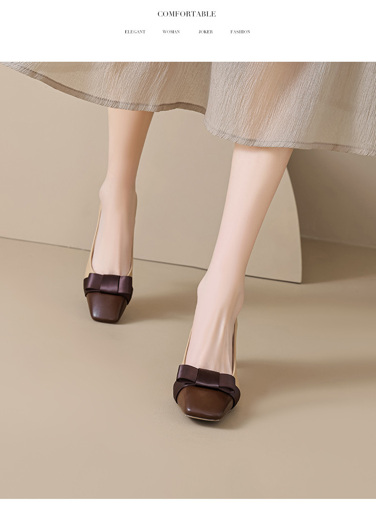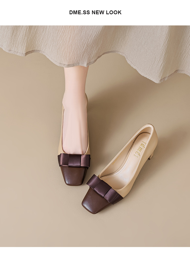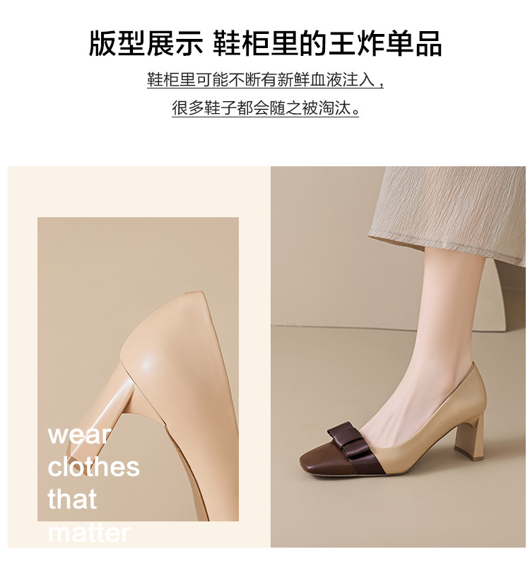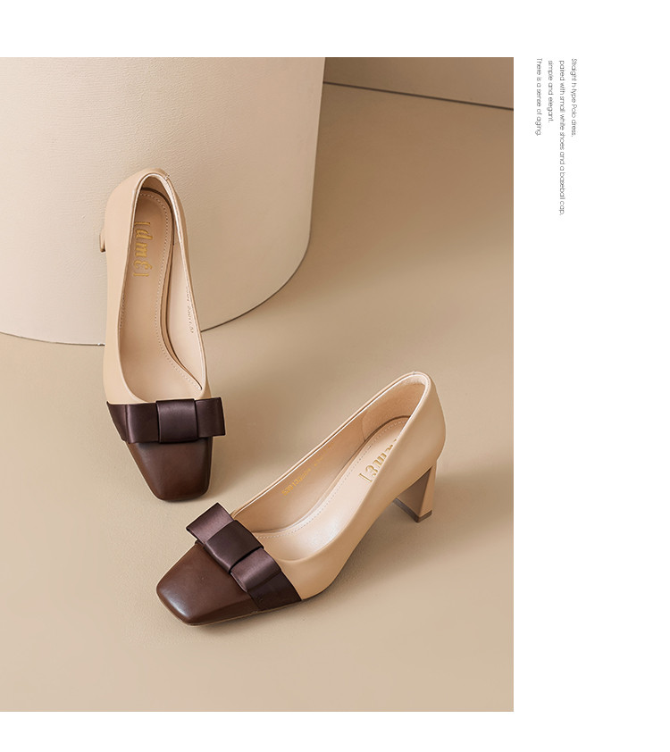 商品名称:2024秋季时尚简约气质百搭撞色拼接优雅蝴蝶结高跟女单鞋 317121