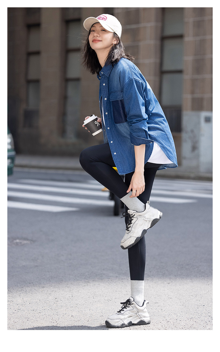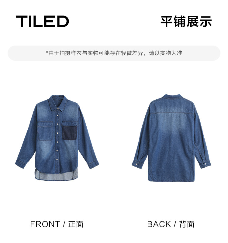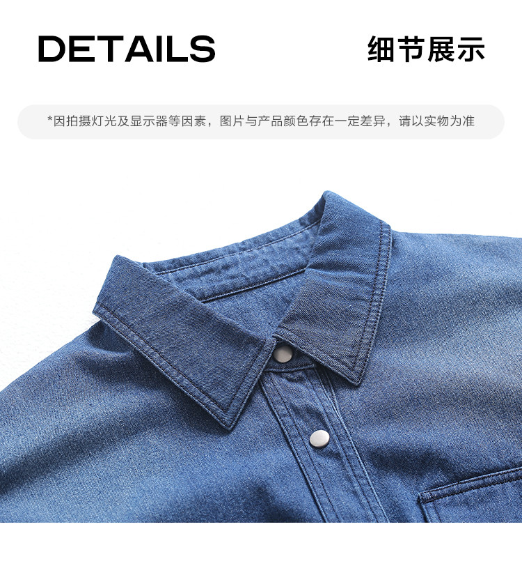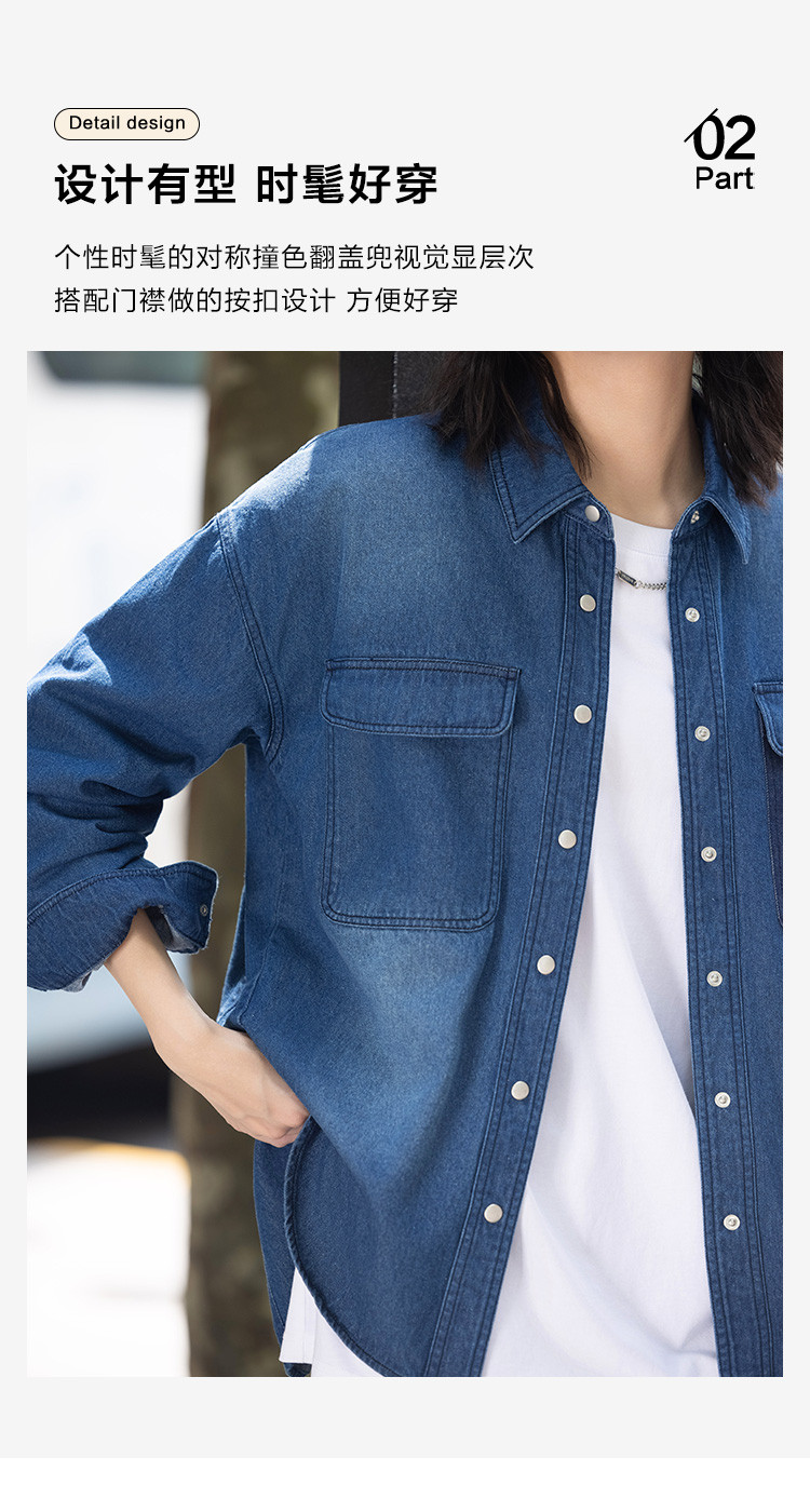 商品名称:【翻领牛仔衬衫】秋个性翻盖兜廓形宽松洋气时髦衬衫女 607746
