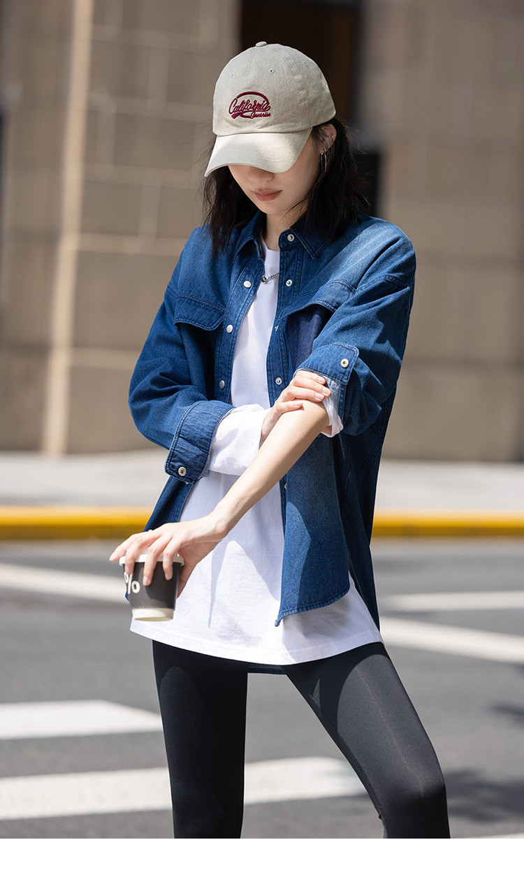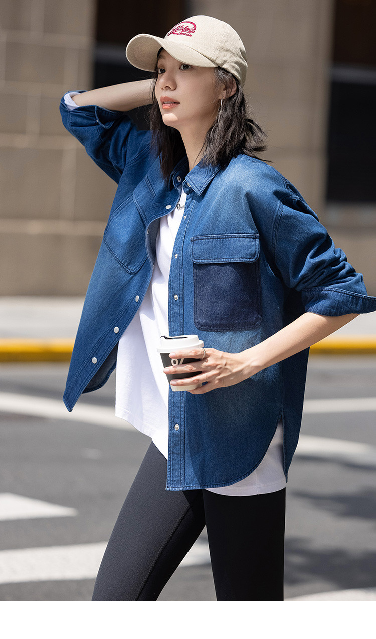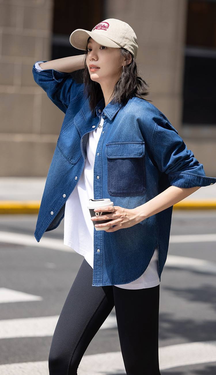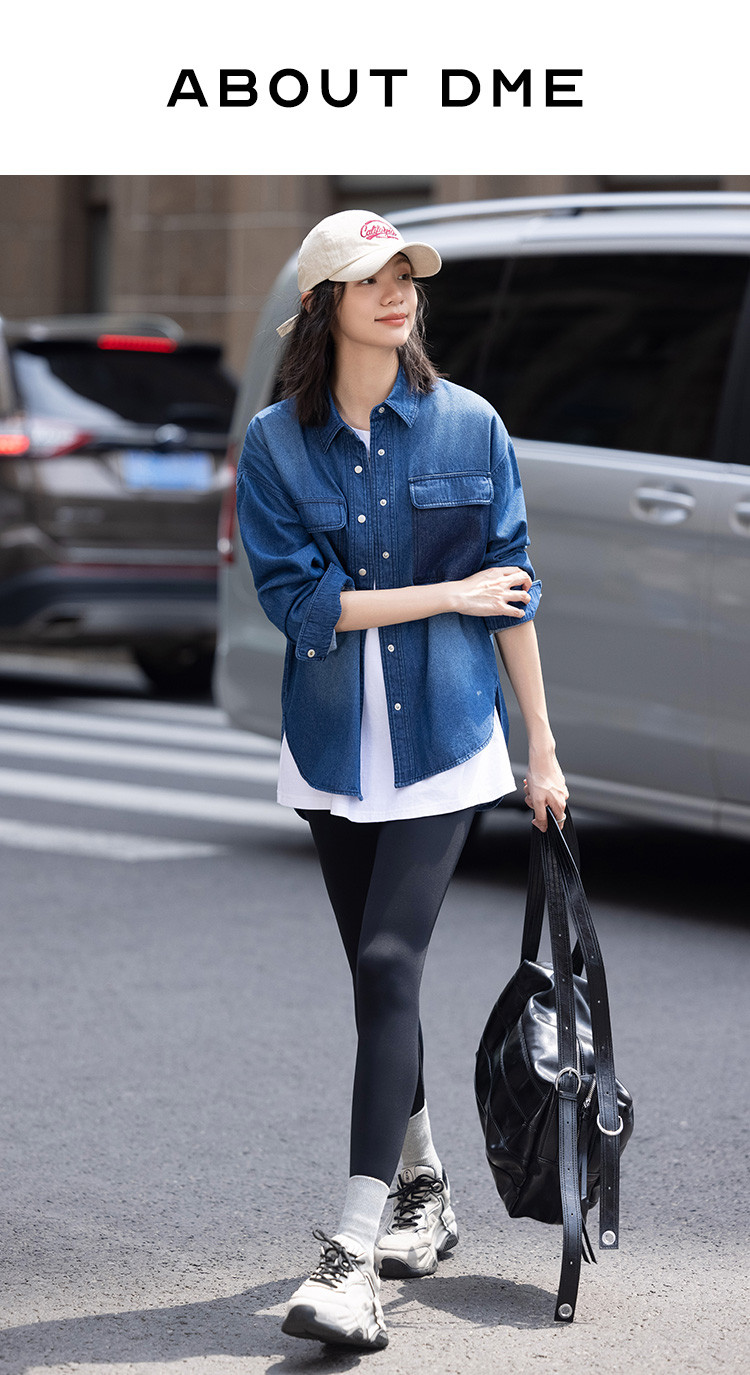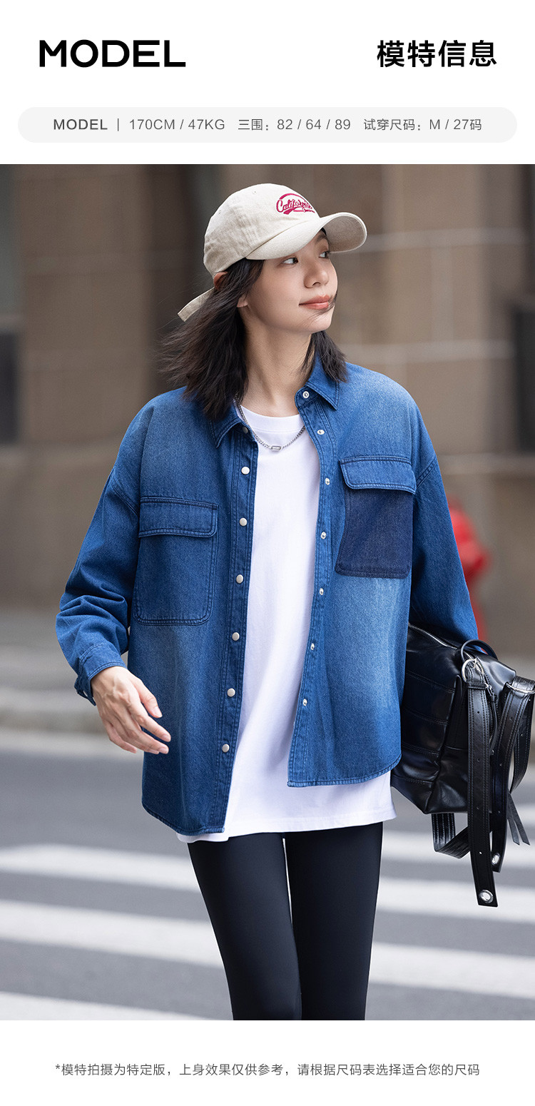 【翻领牛仔衬衫】秋个性翻盖兜廓形宽松洋气时髦衬衫女 607746