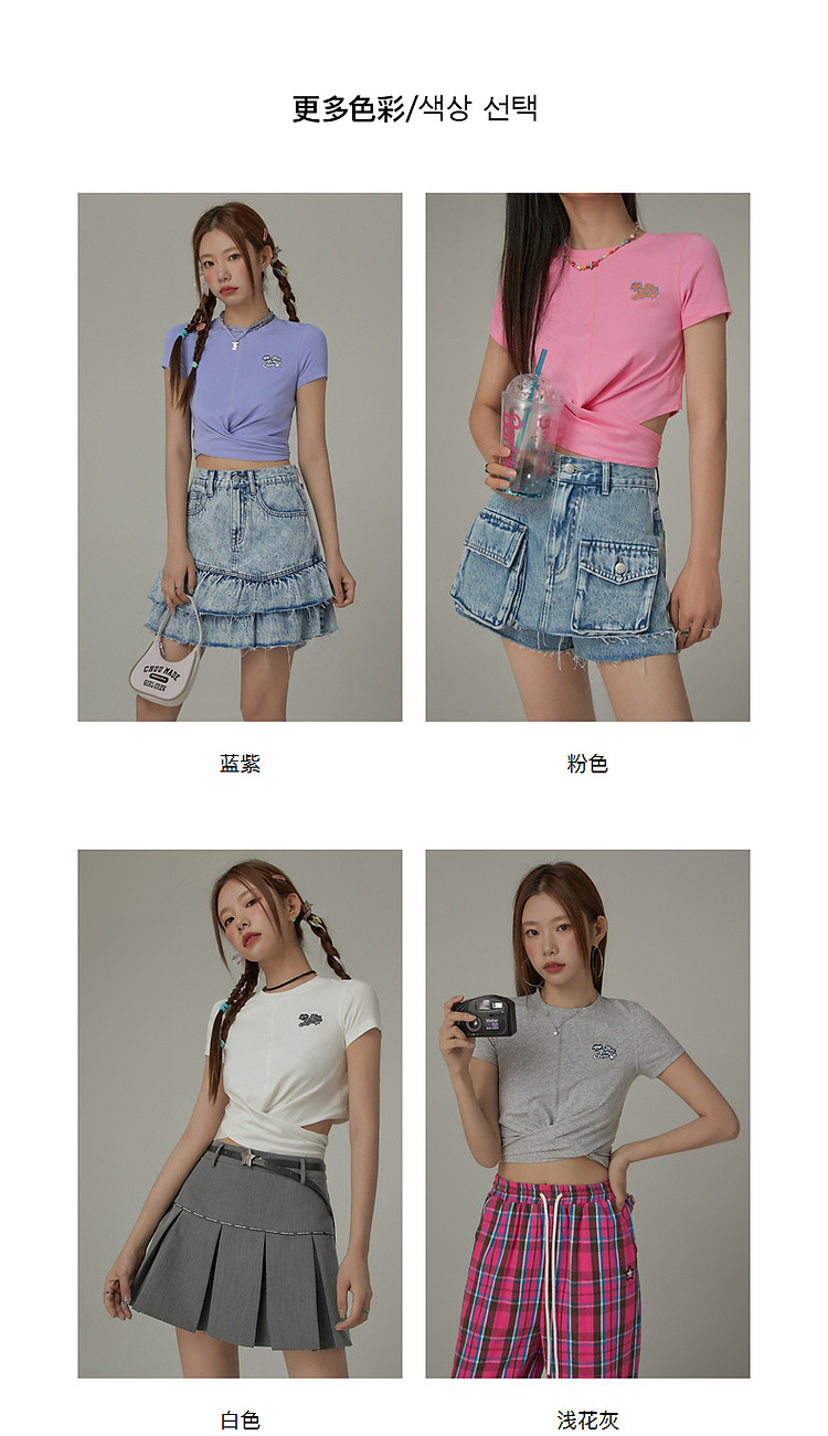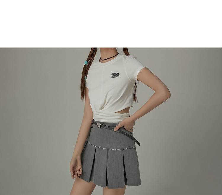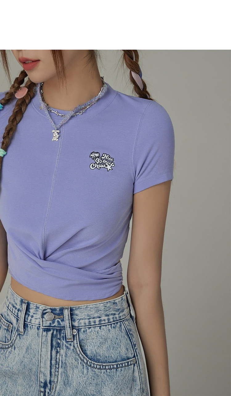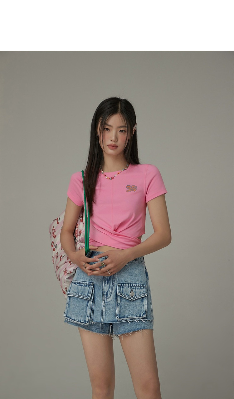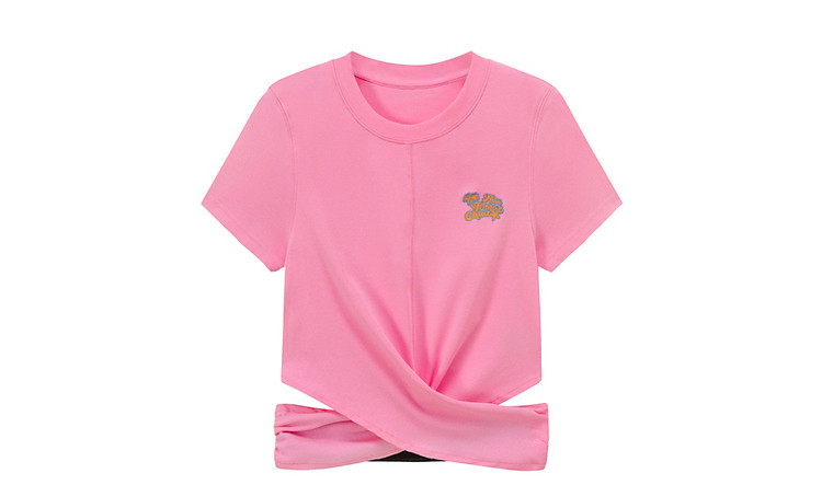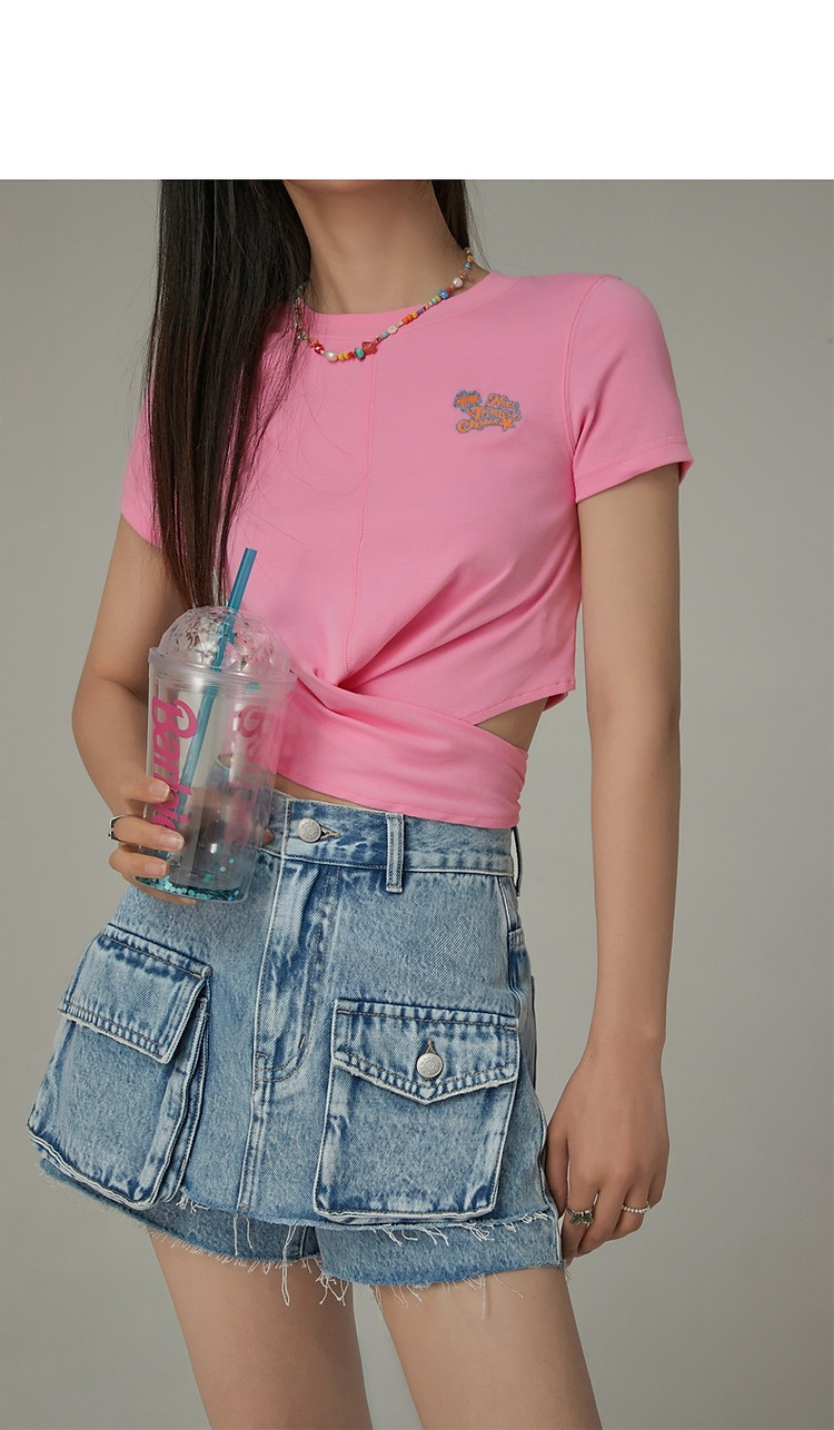 商品名称:刺绣镂空T恤女春夏设计感交叉修身短袖上衣 193171