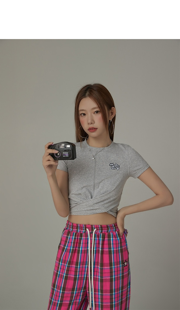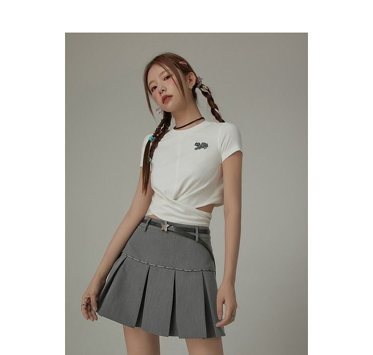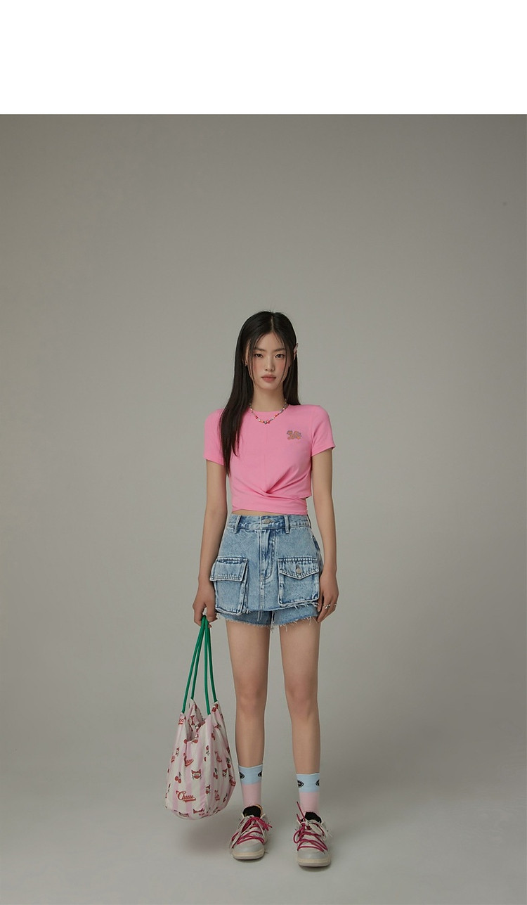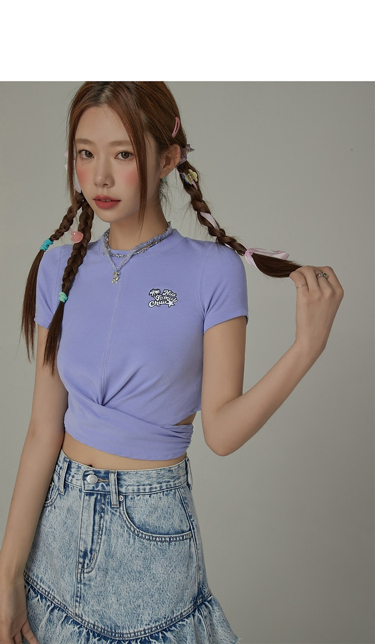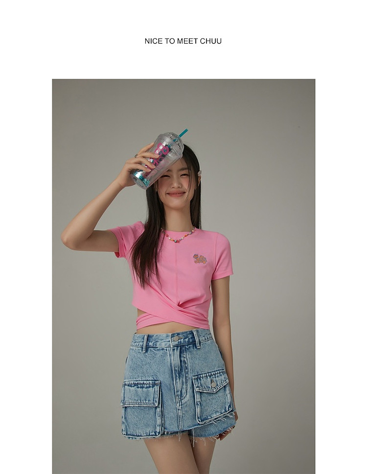 商品名称:刺绣镂空T恤女春夏设计感交叉修身短袖上衣 193171