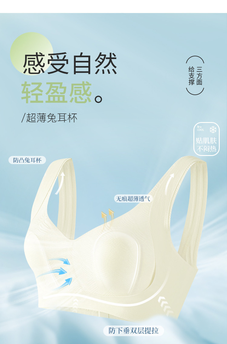 商品名称:【双重提拉兔耳杯】呼吸杯无痕裸感美背内衣女聚拢无钢圈文胸罩女 530187