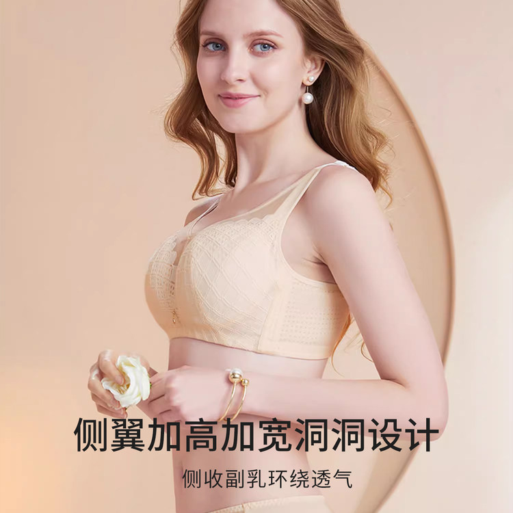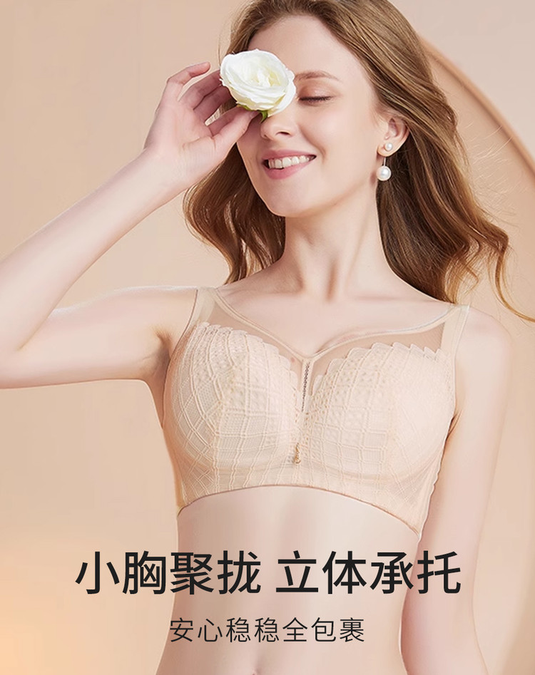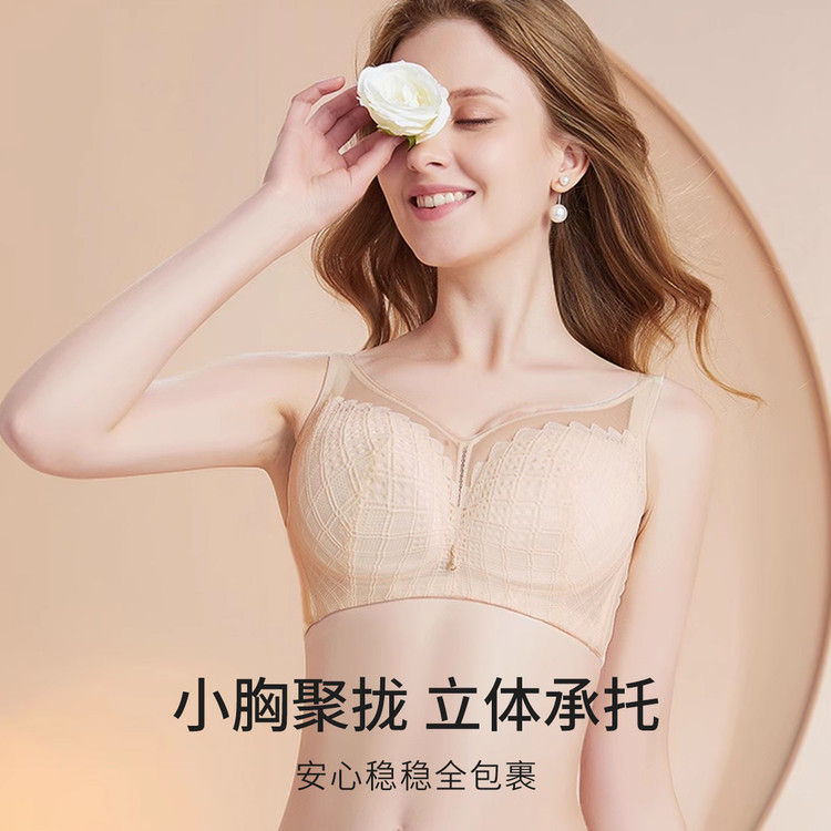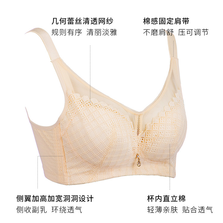 古今内衣女透气孔舒适无钢圈拼棉杯几何文胸罩内衣 032523