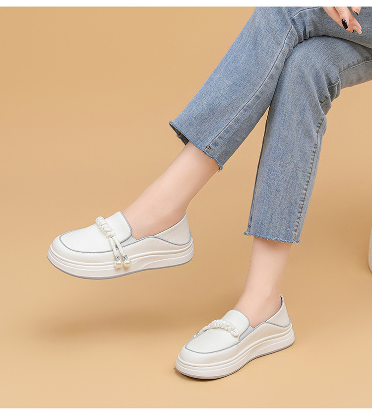 商品名称:女鞋春夏款薄款透气豆豆鞋小白鞋舒适百搭轻便休闲鞋厚底时尚板鞋 491991