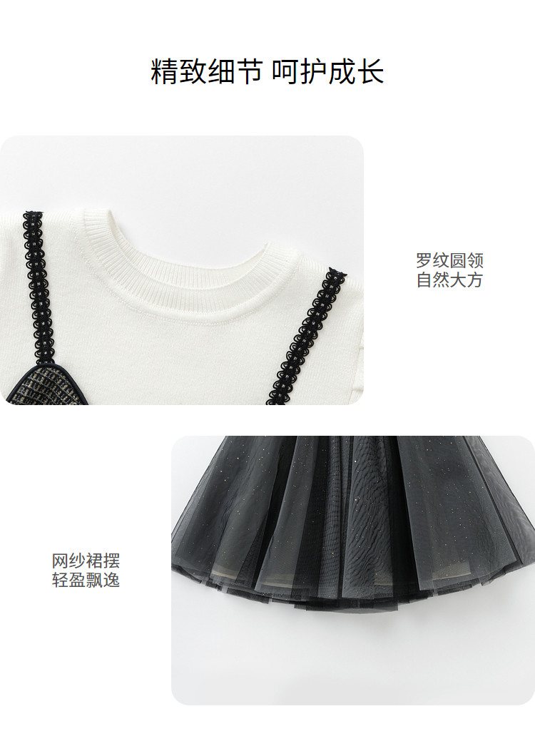 高回弹挺括两件套儿童套装中大童女童假两件校园运动风春秋装国风 252549