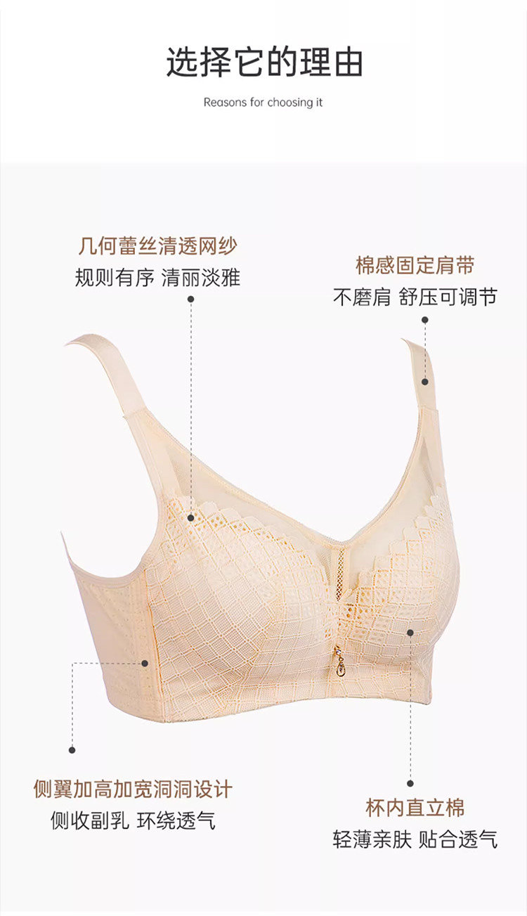 商品名称:古今内衣女透气孔舒适无钢圈拼棉杯几何文胸罩内衣 061195