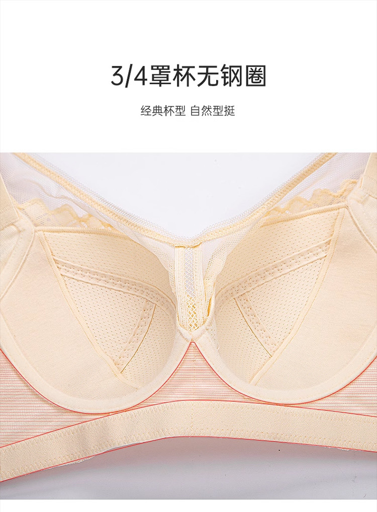 古今内衣女透气孔舒适无钢圈拼棉杯几何文胸罩内衣 061195