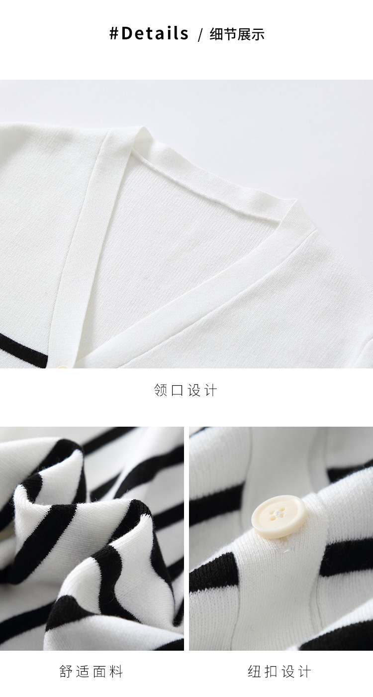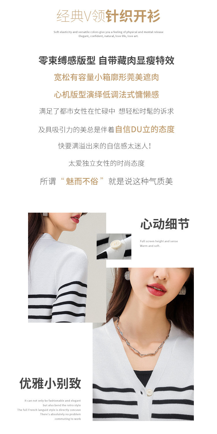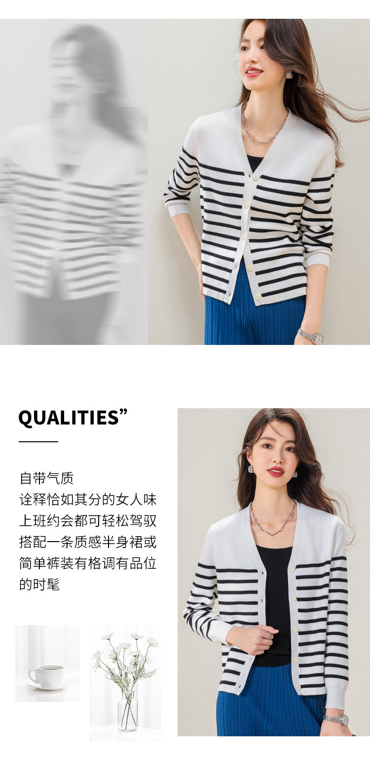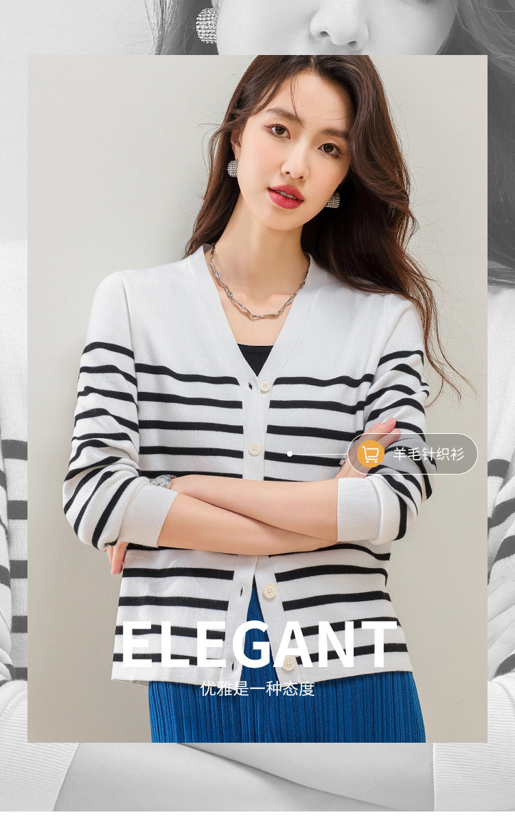 商品名称:V领含羊毛针织打底开衫女条纹女式毛衣外套 720147