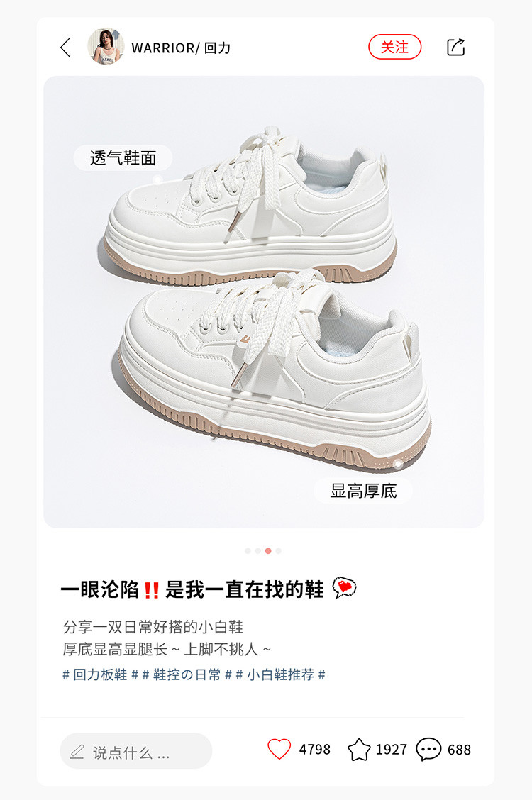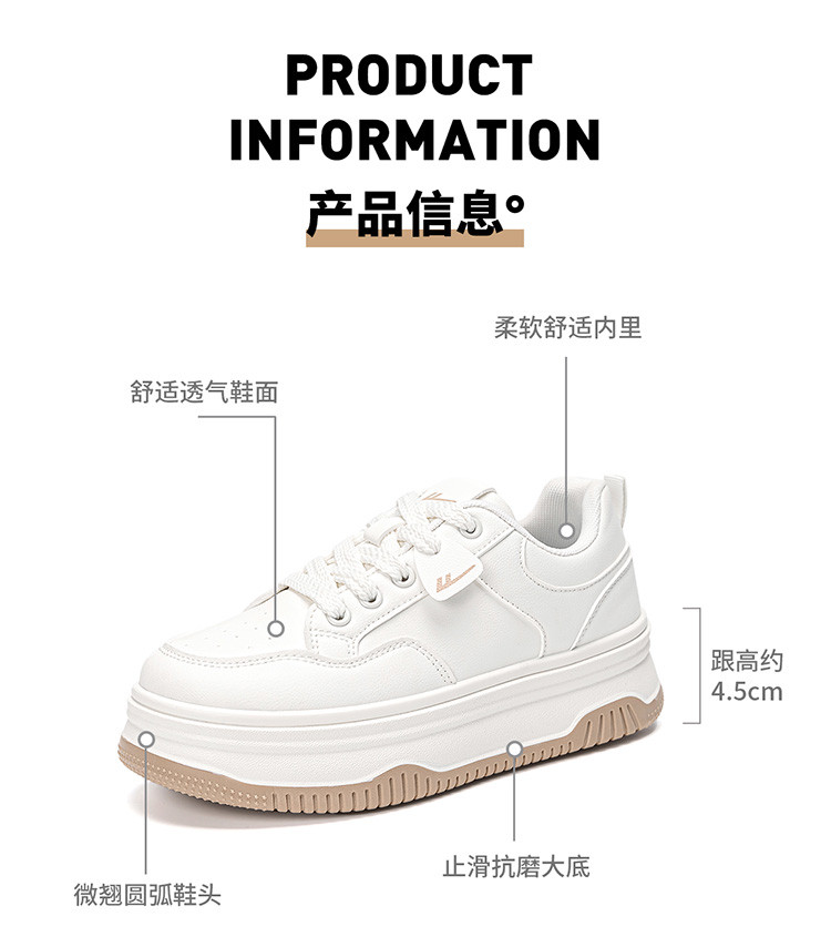 商品名称:【时尚好物】厚底小白鞋女2024透气鞋子学生百搭增高运动板鞋 994845