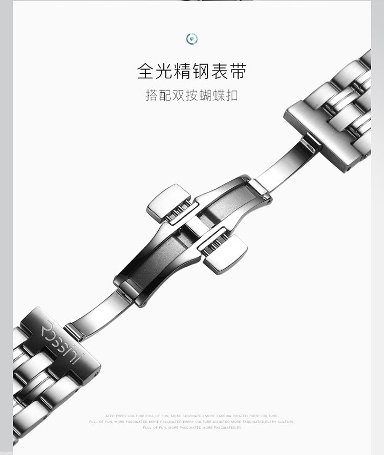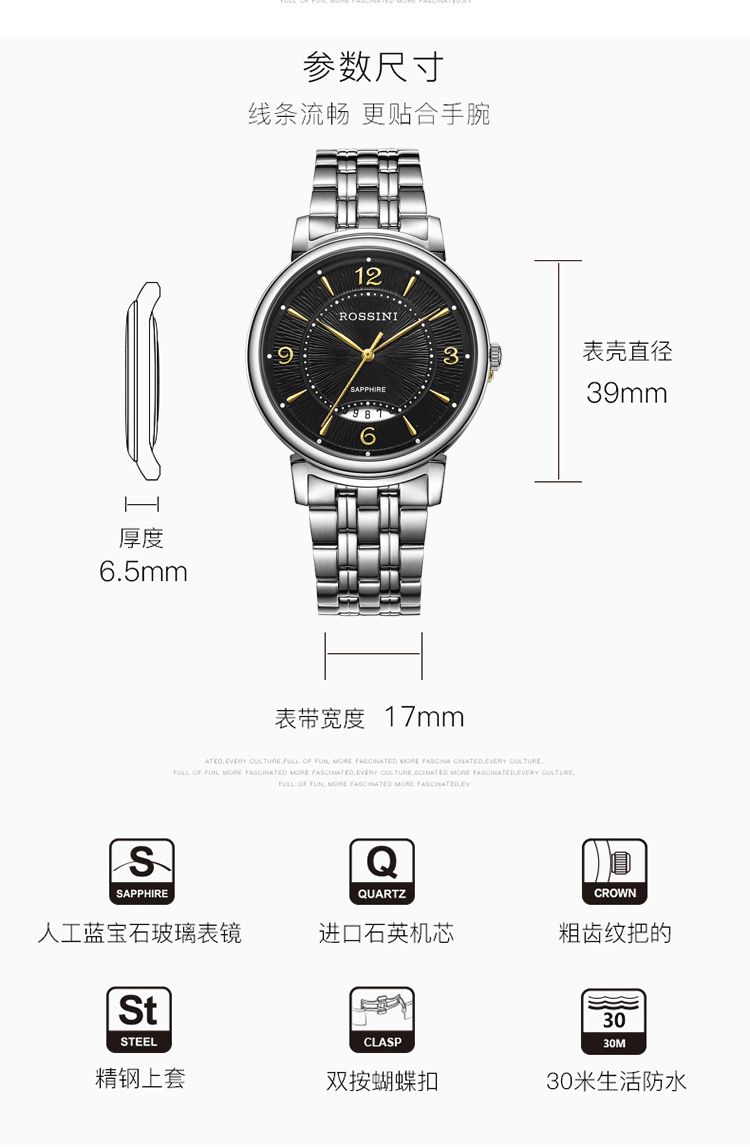 商品名称:罗西尼(ROSSINI)手表 石英表男表商务时尚休闲防水日历男士女士腕表情侣表 黑盘钢带石英男表5803W04B