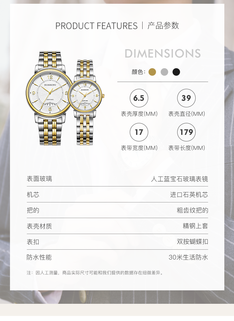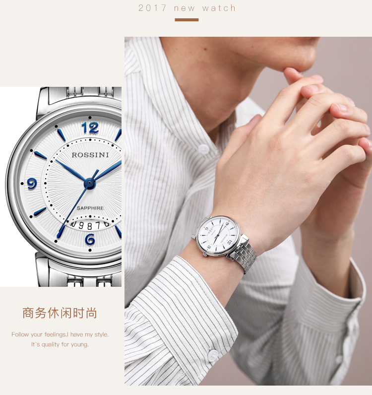 商品名称:罗西尼(ROSSINI)手表 石英表男表商务时尚休闲防水男士腕表 白盘钢带石英男表5803W01A