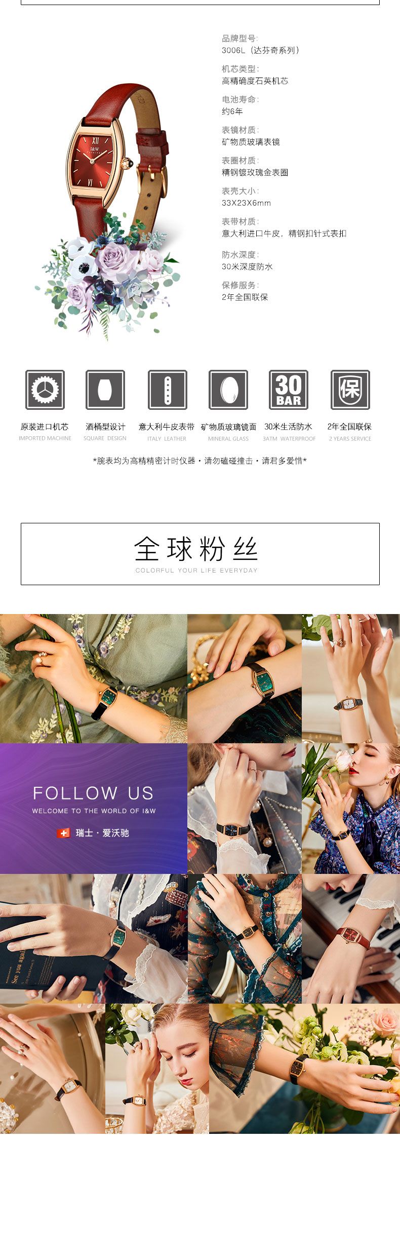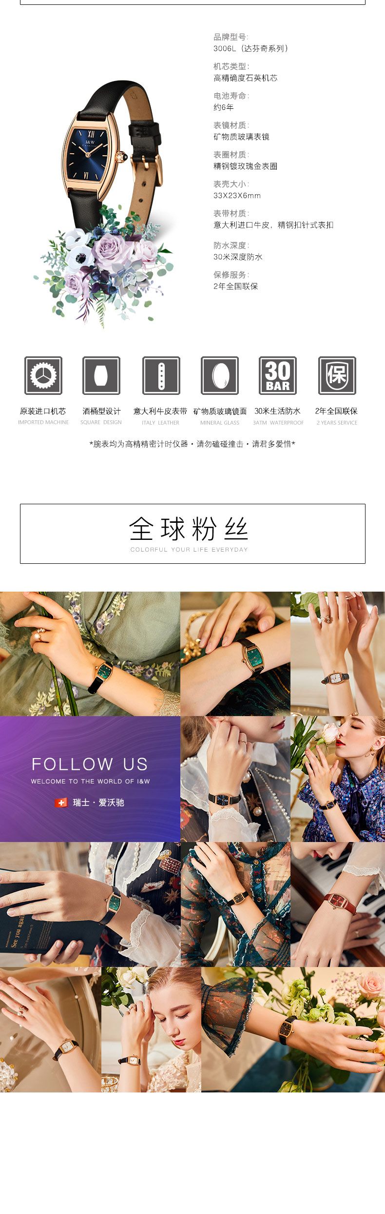 商品名称:IW手表女简约复古文艺石英表小绿表女表品牌正品防水3006L